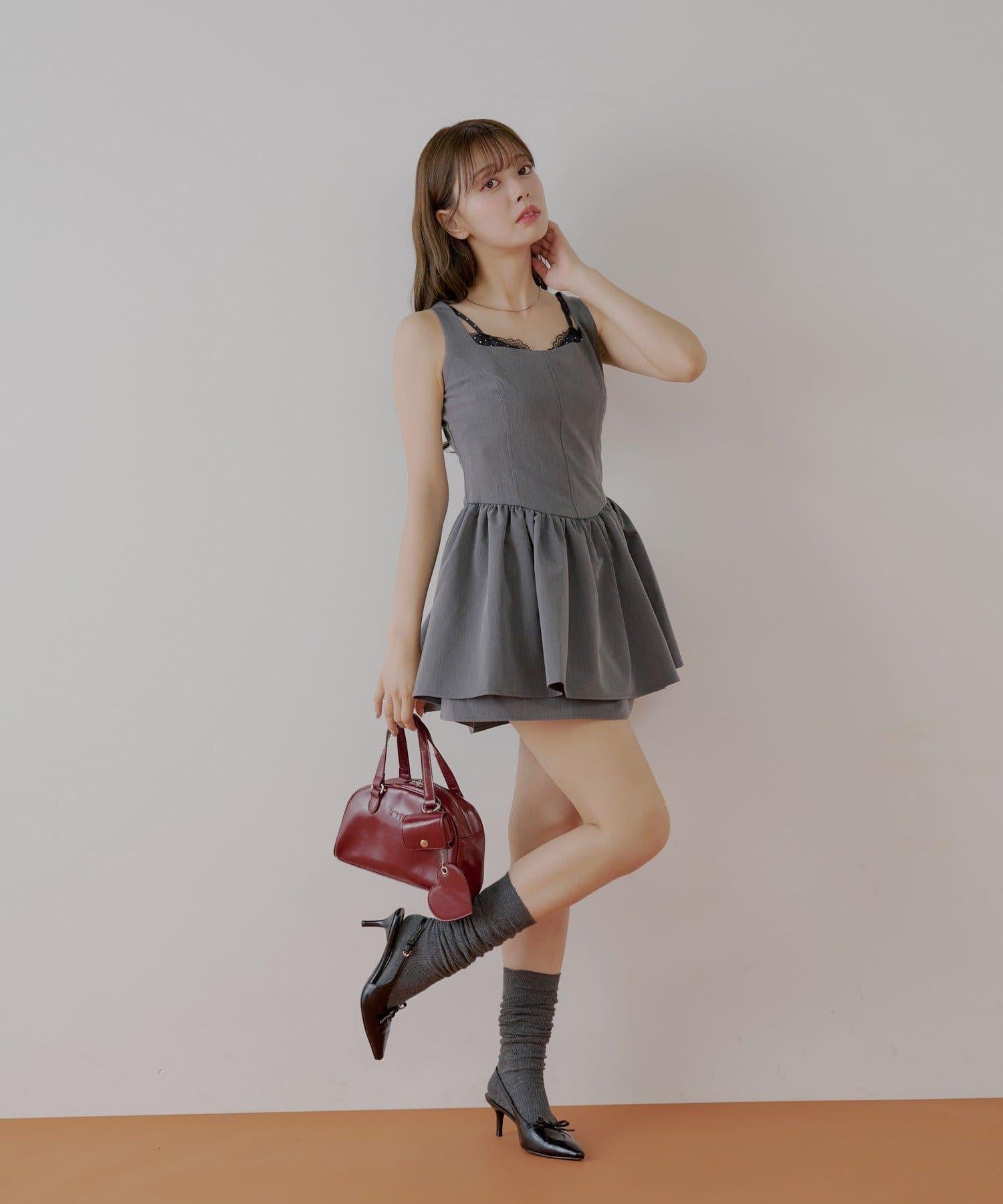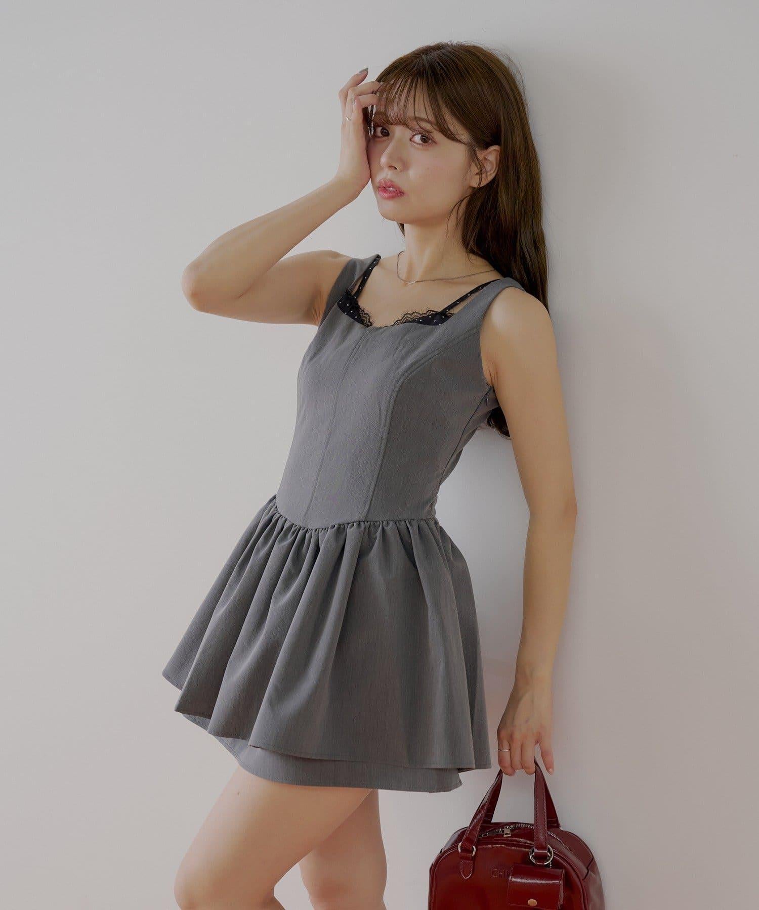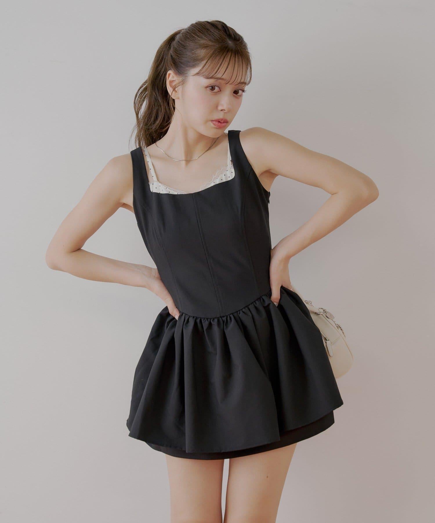 一件式連衣裙,吊帶設計的精緻蕾絲巧妙展露肌膚。