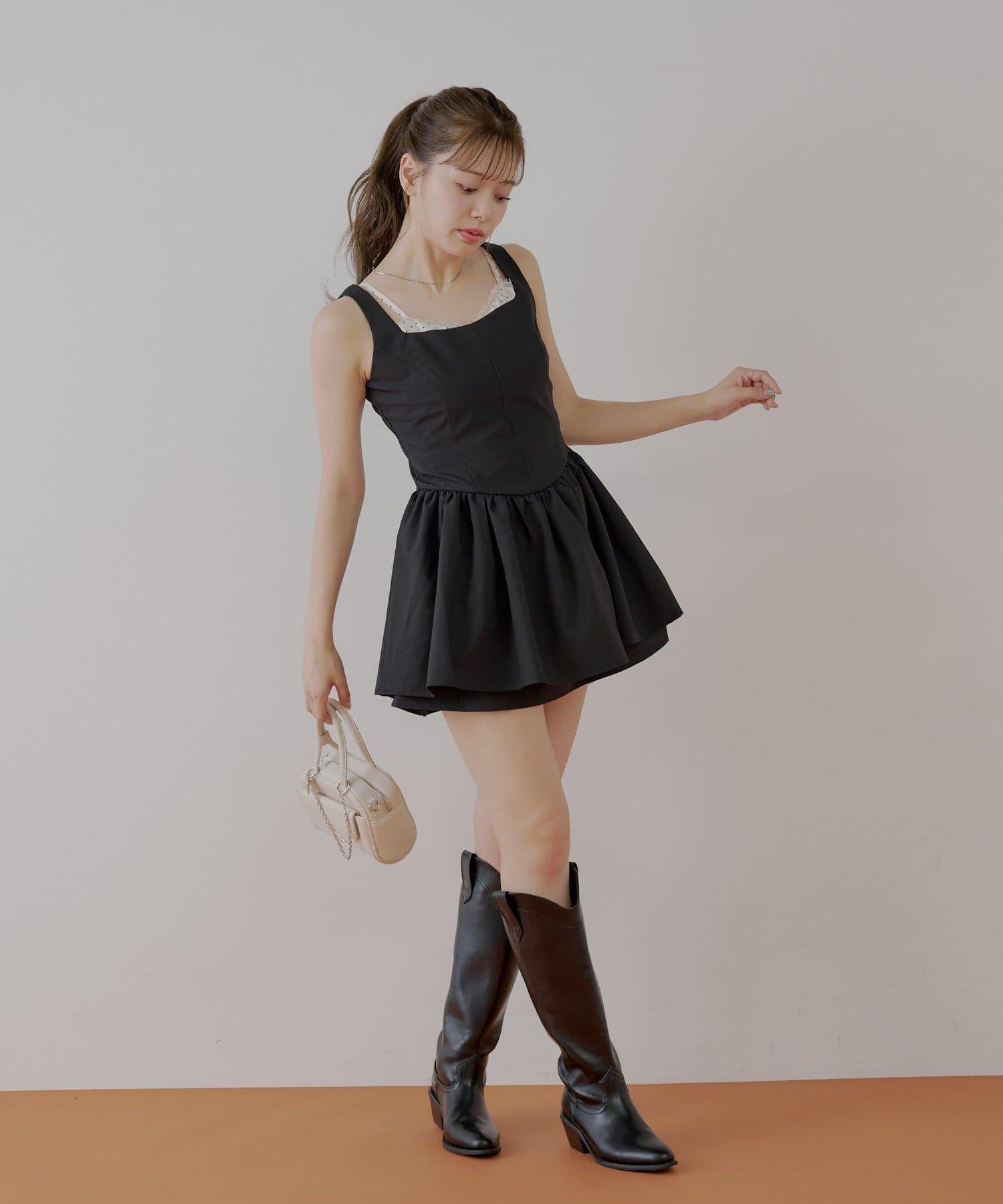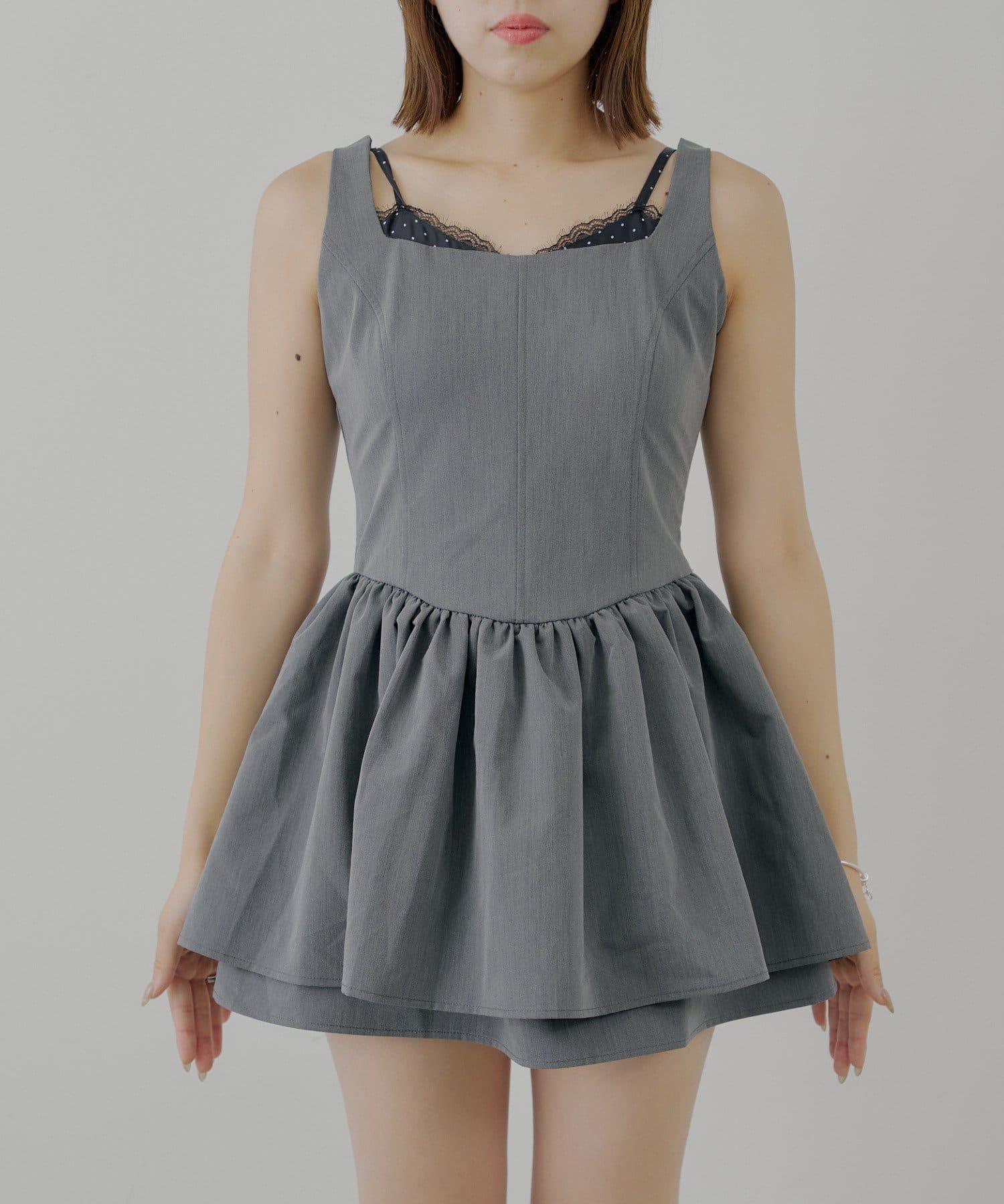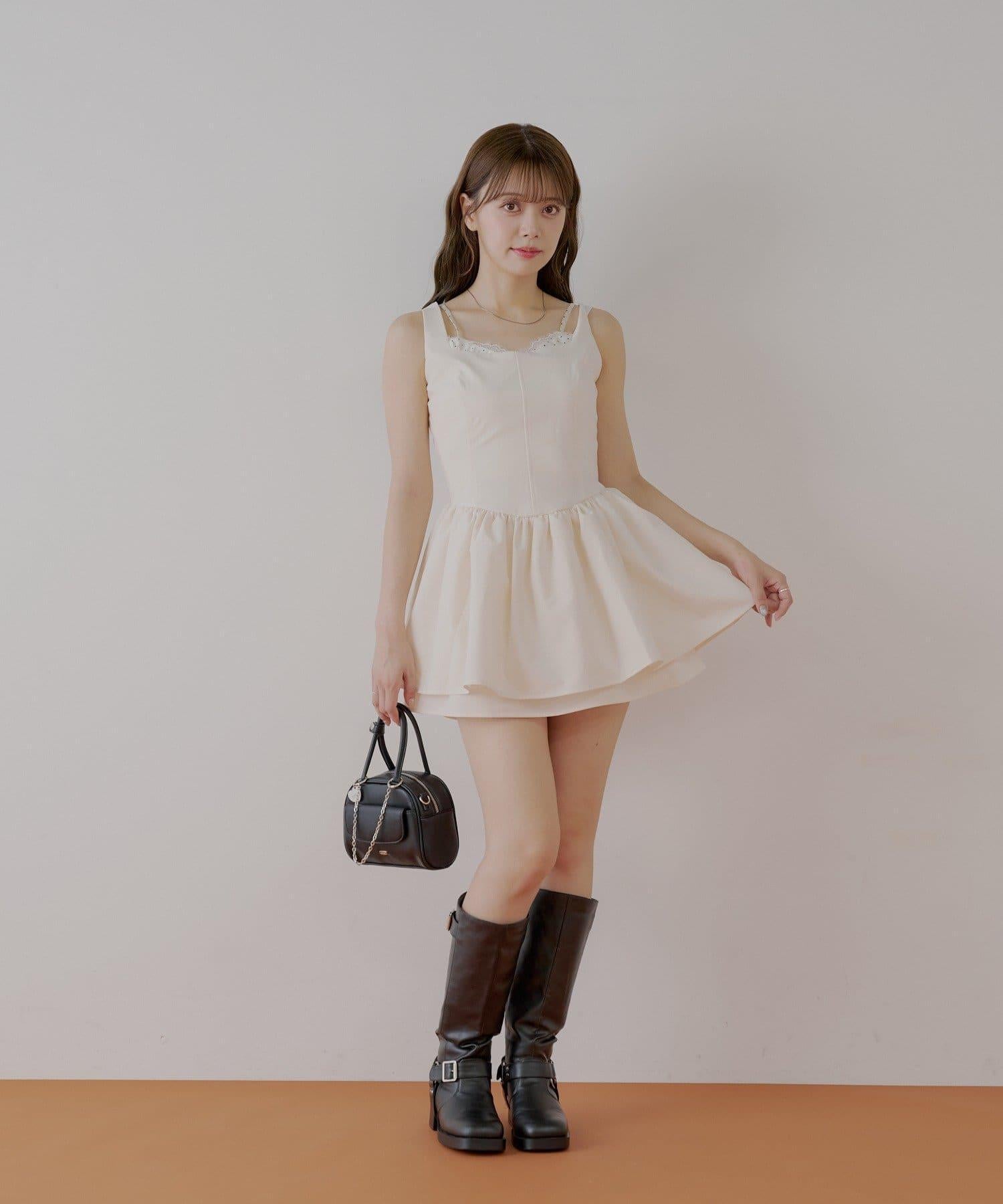 【Chico】蕾絲疊穿喇叭吊帶連衣裙