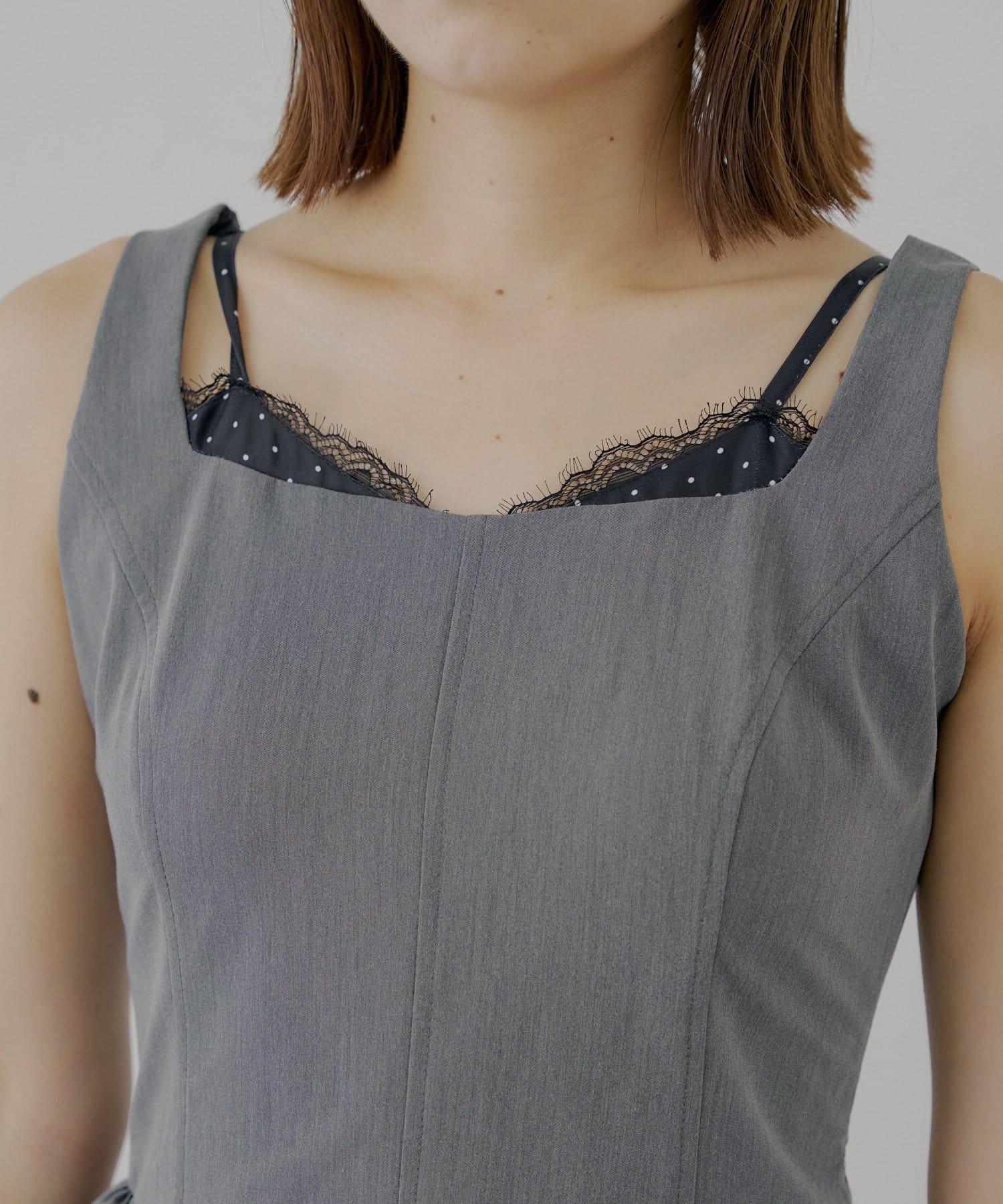 這款蕾絲層疊喇叭吊帶連衣裙的肩部線條採用精緻的蕾絲裝飾,十分搶眼。