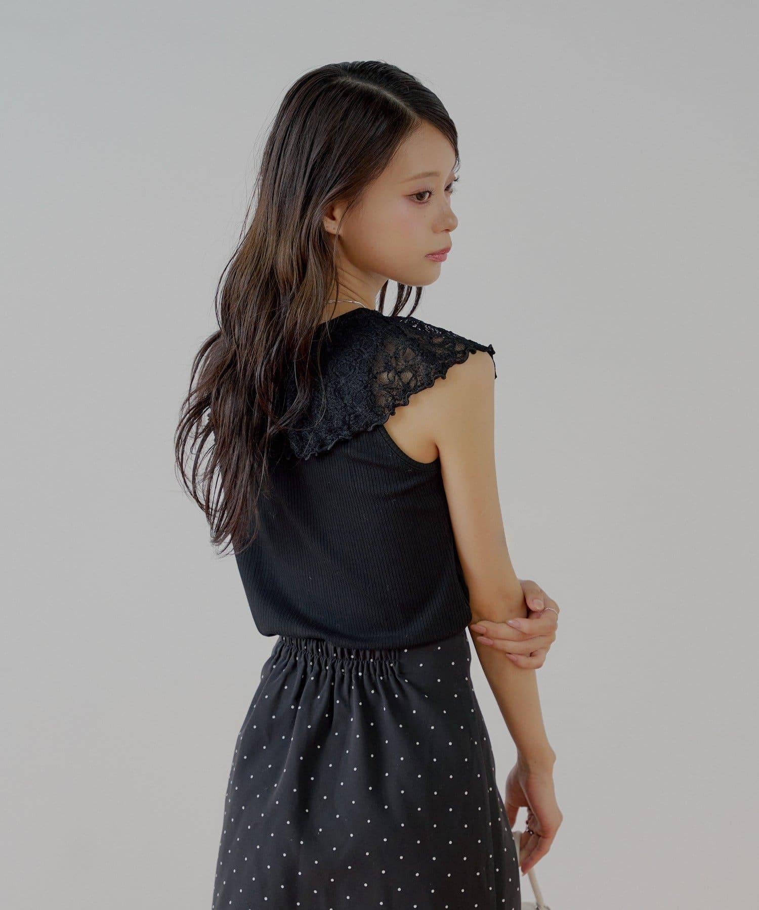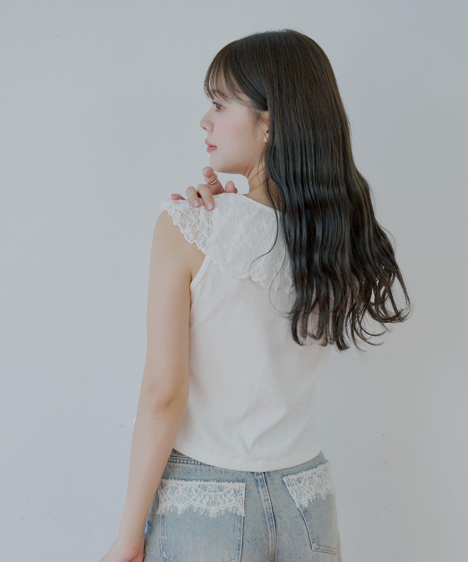 Chico 蕾絲設計 落肩無袖 羅紋T恤