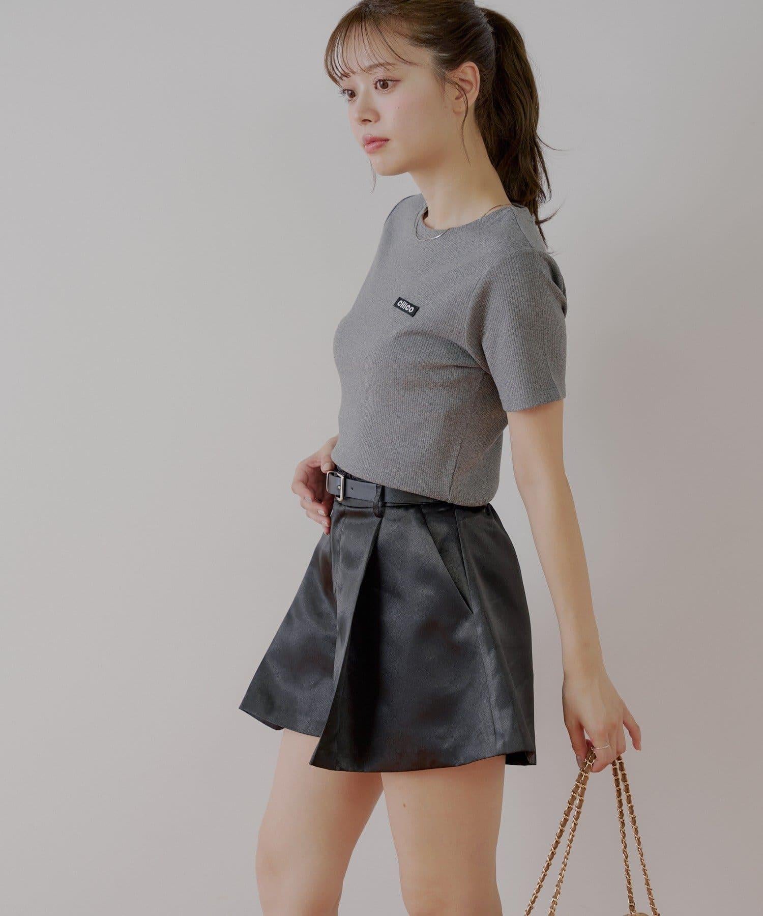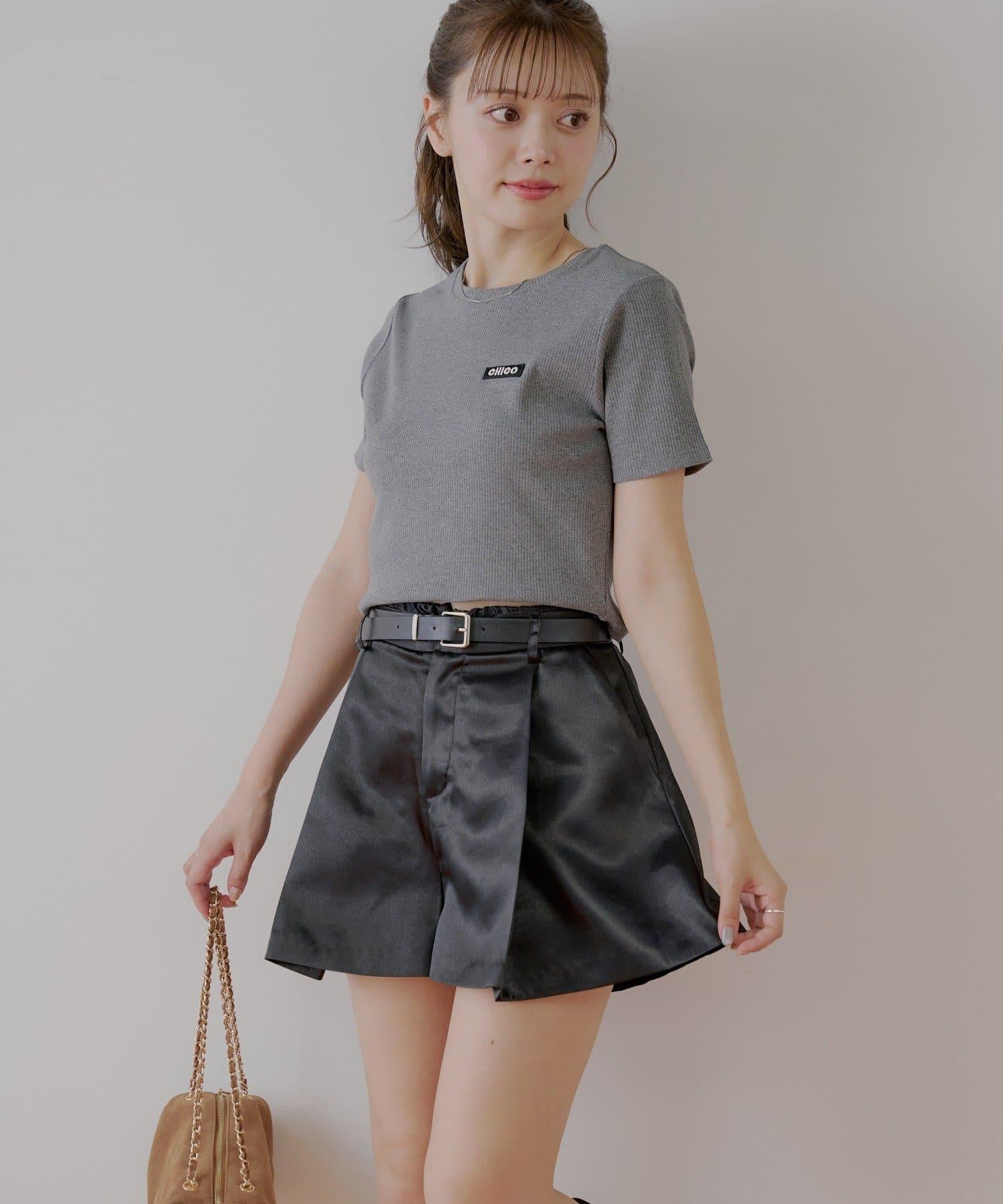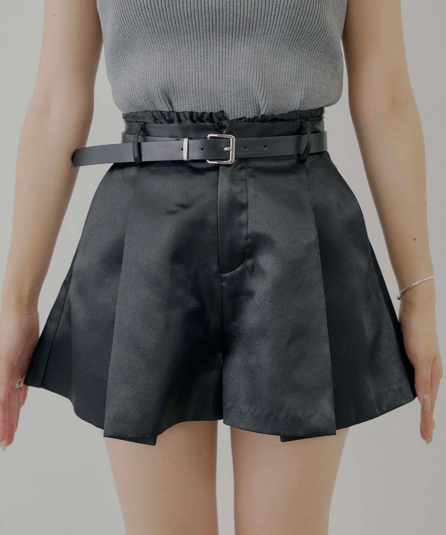 【Chico】配腰帶蓬鬆緞面短褲