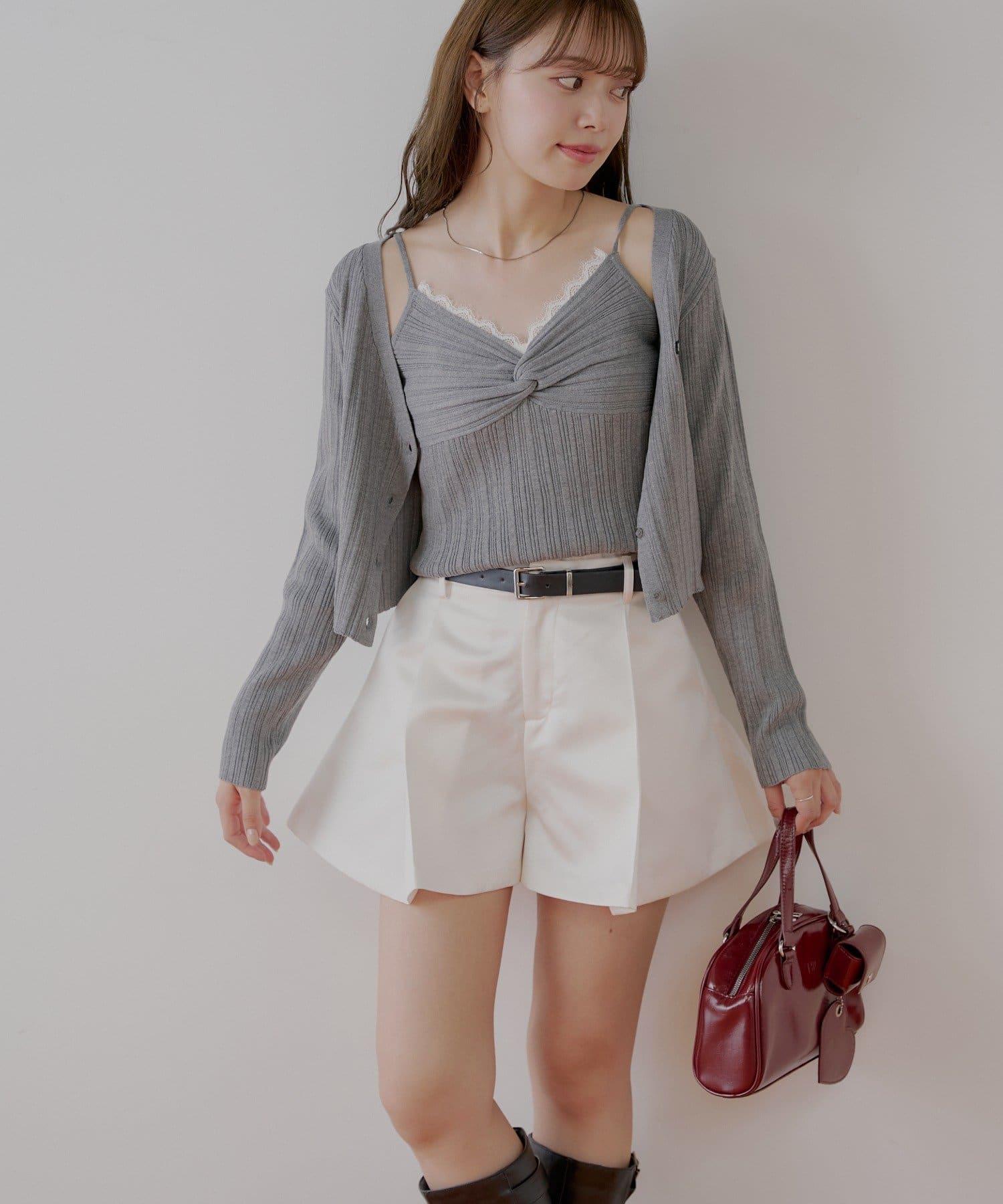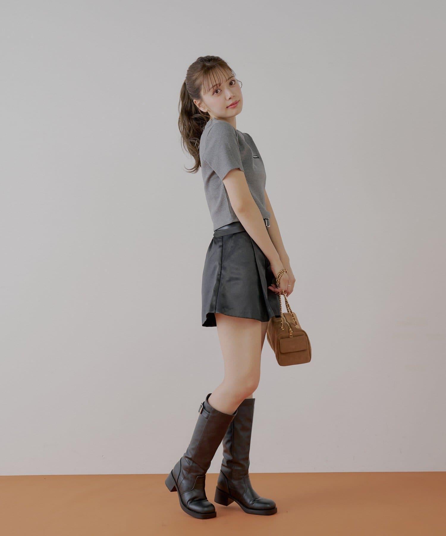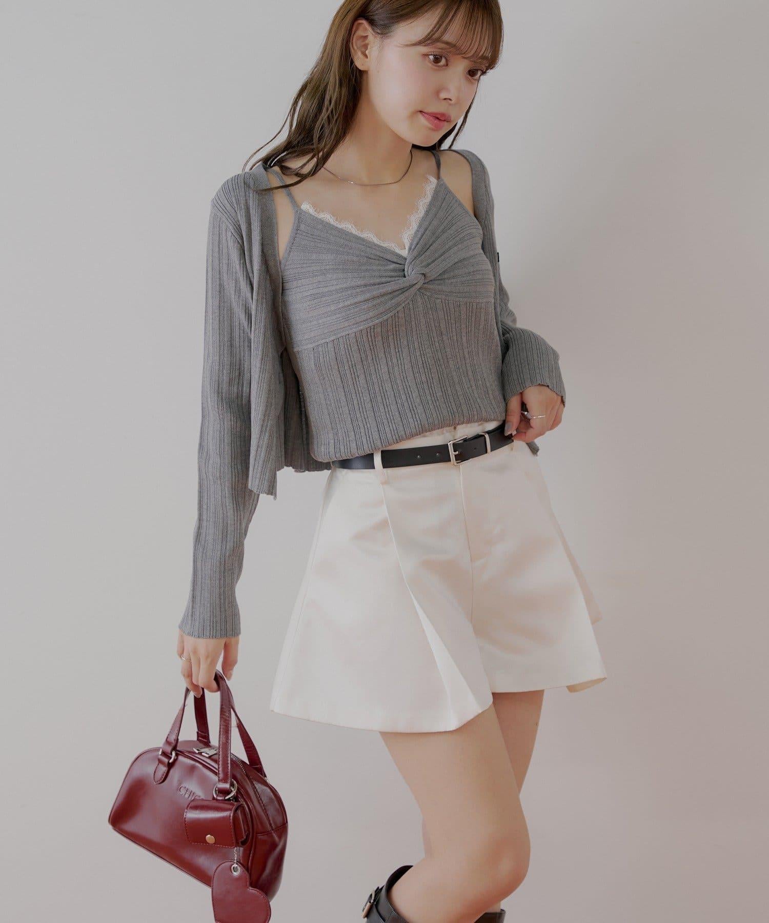【Chico】配腰帶蓬鬆緞面短褲