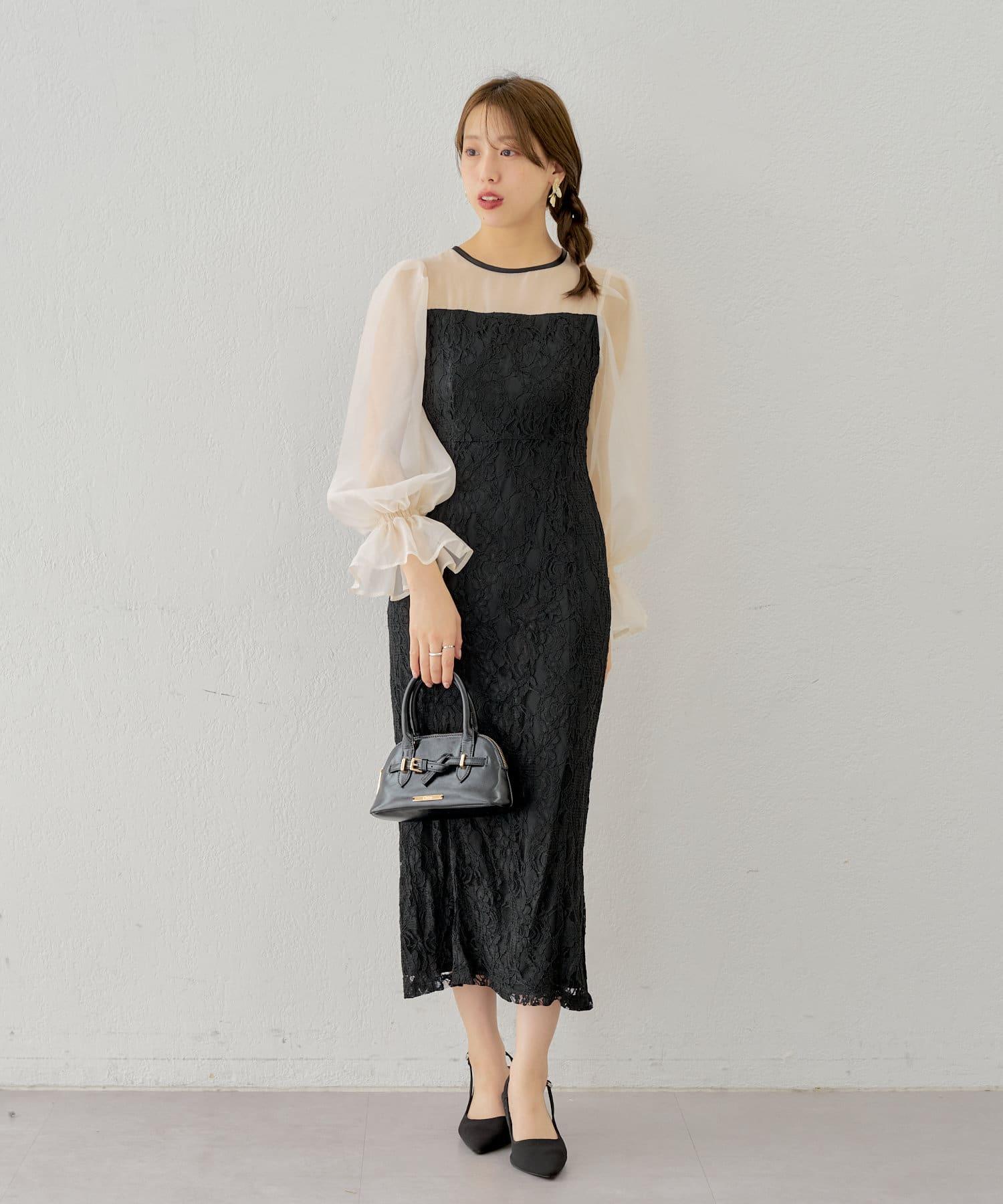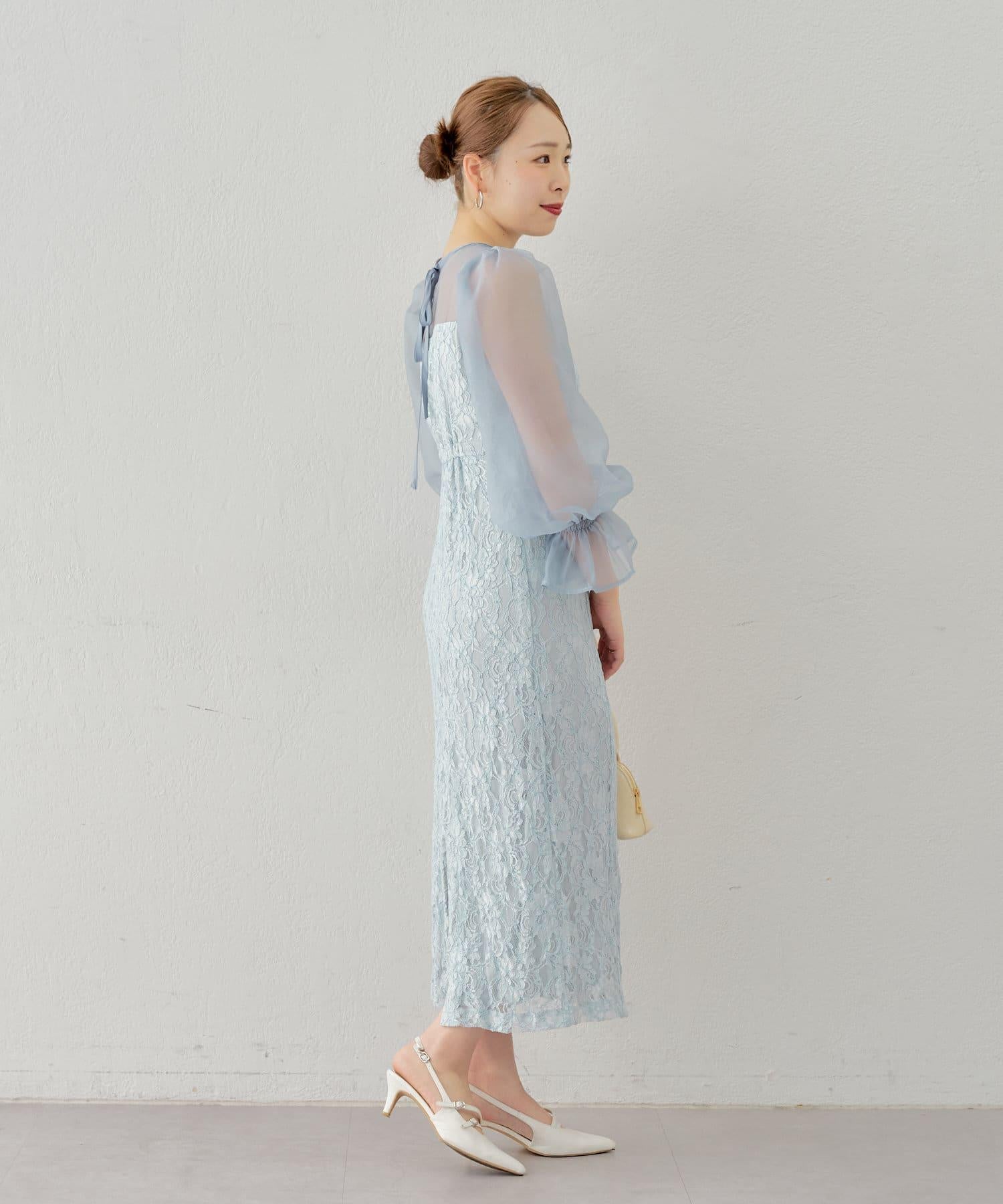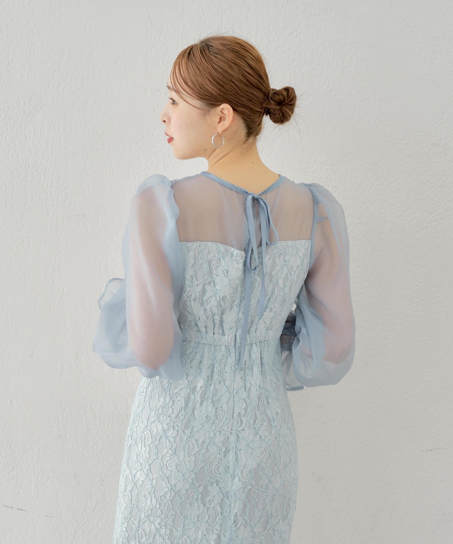連衣裙的糖果袖和背後的絲帶可愛搶眼。