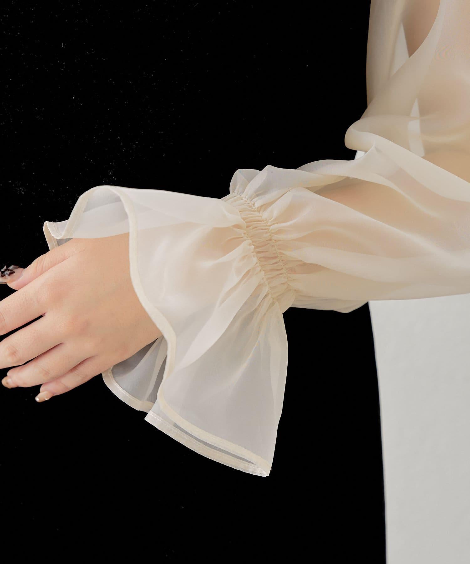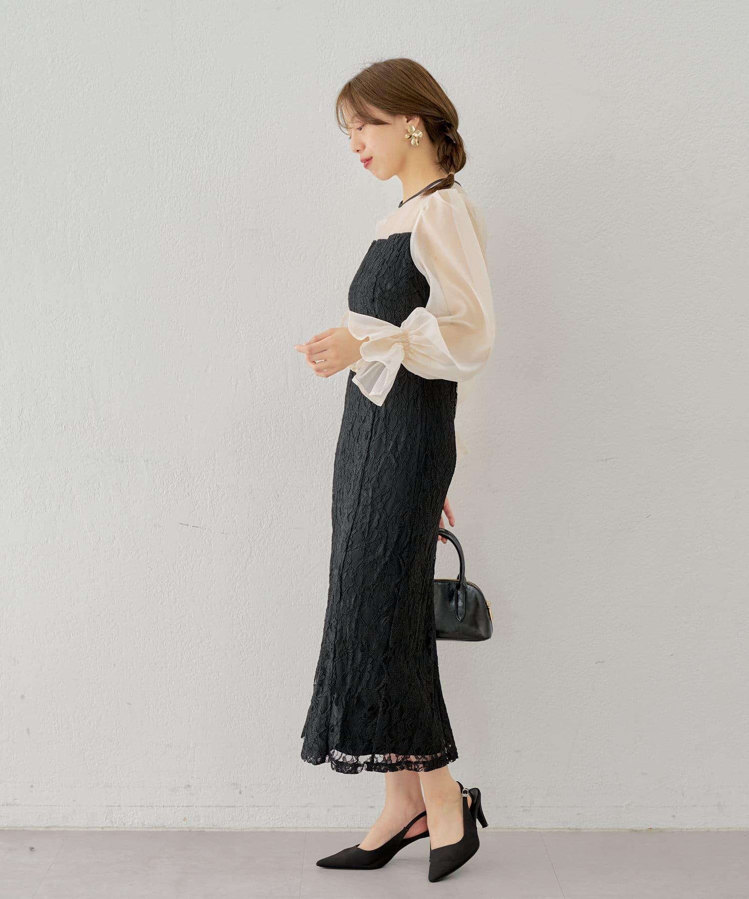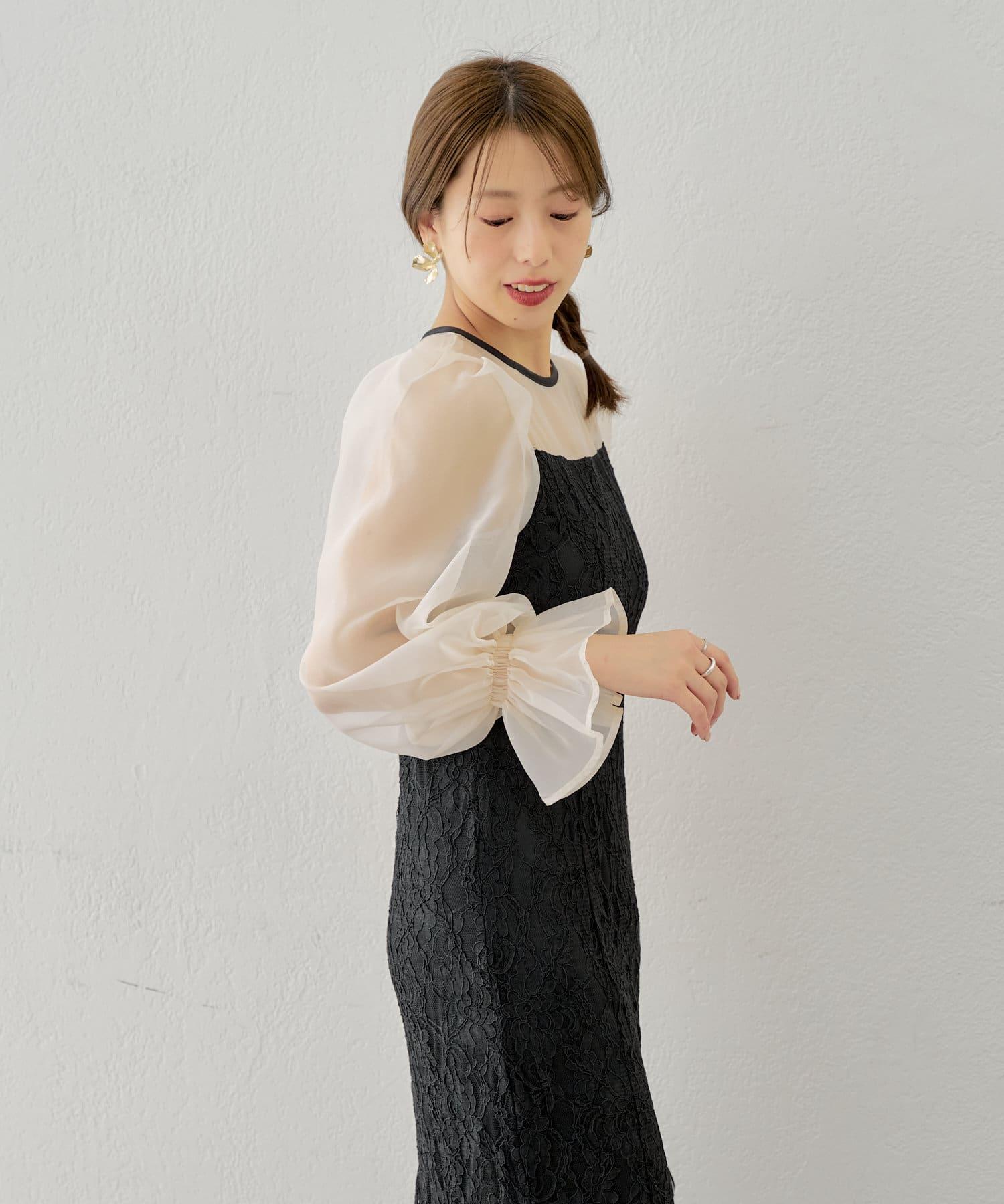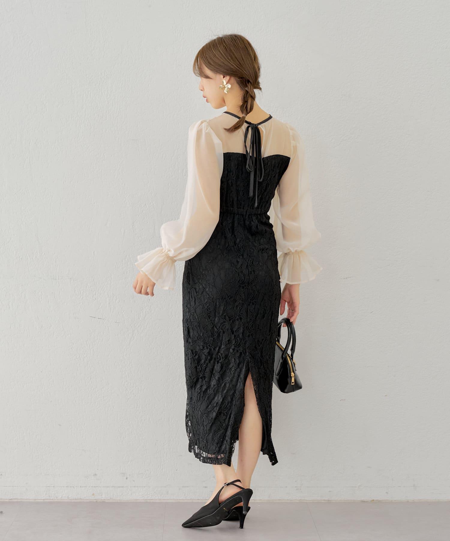 連衣裙的糖果袖和背後的絲帶可愛搶眼。