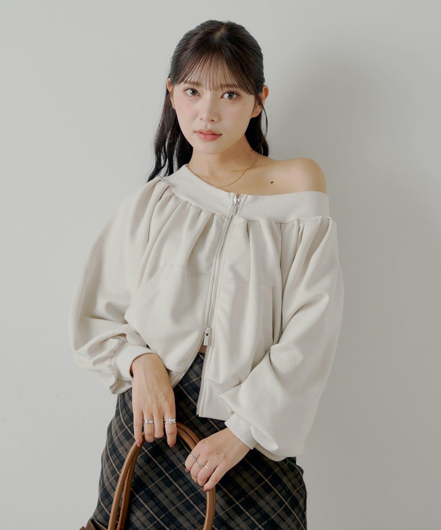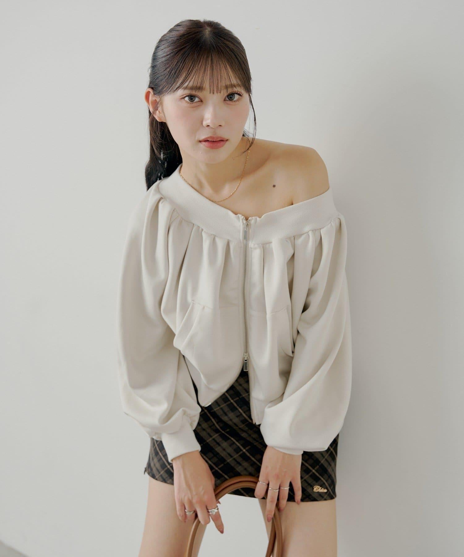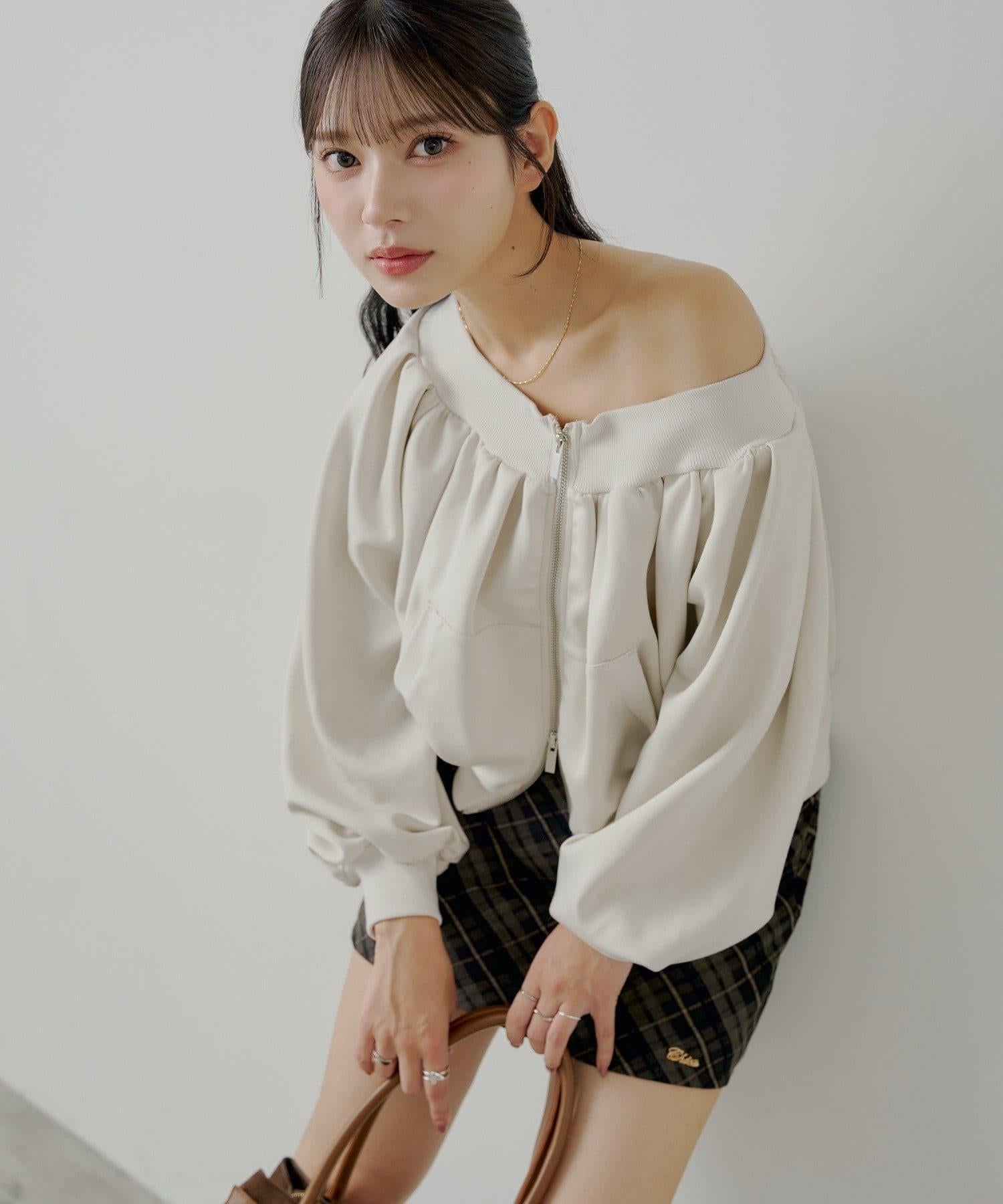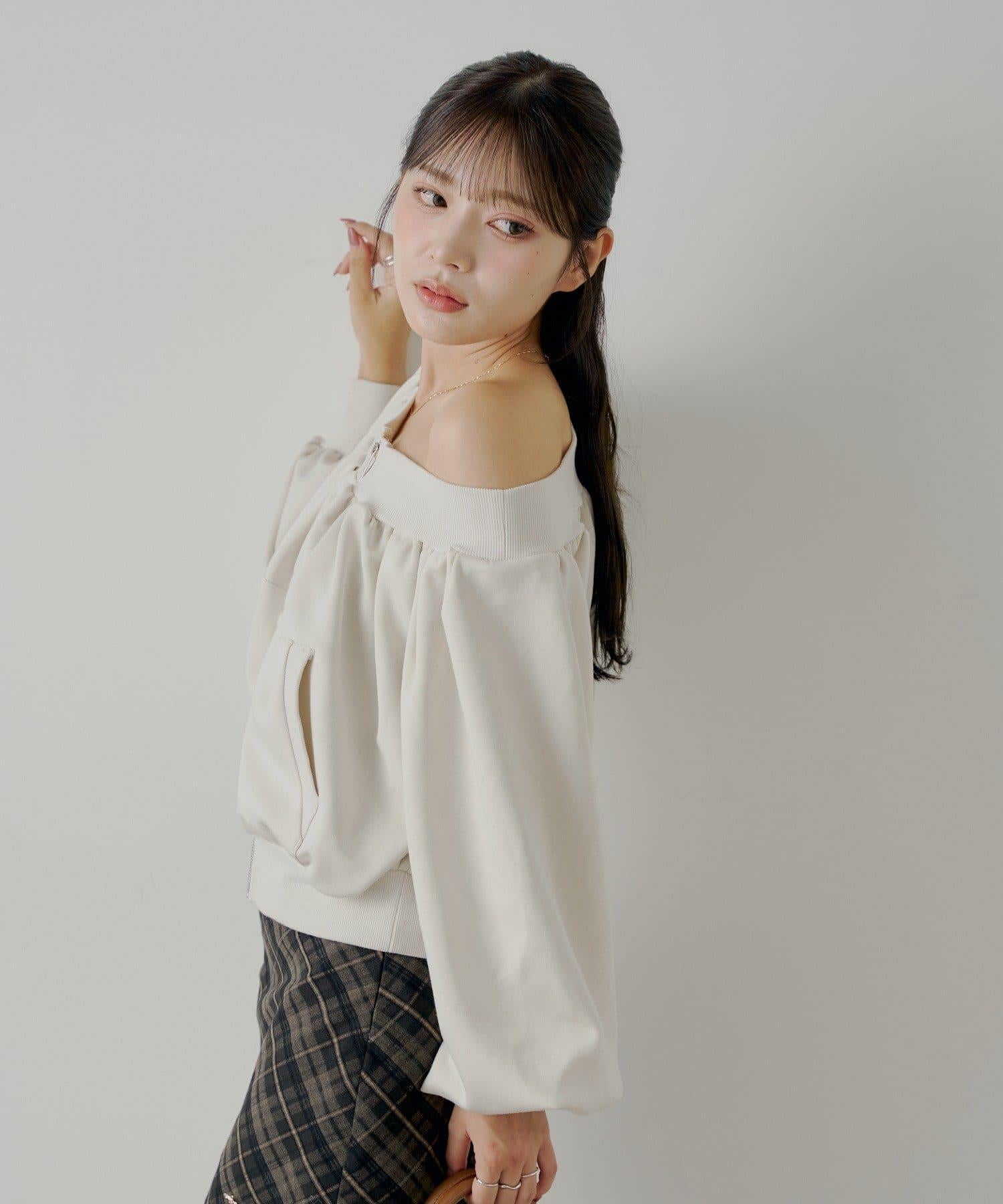 【Chico】2WAY一字肩雙拉鍊衛衣