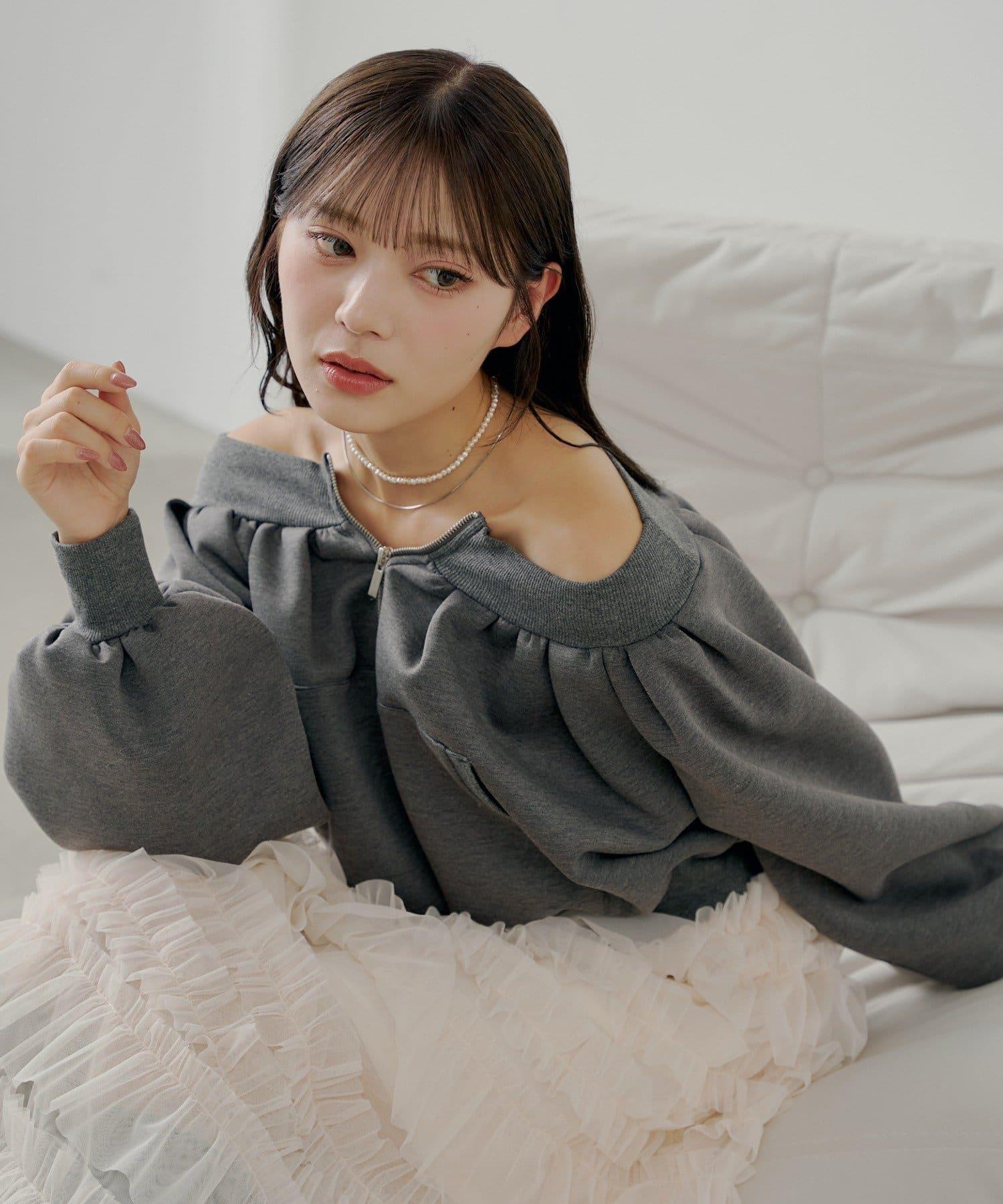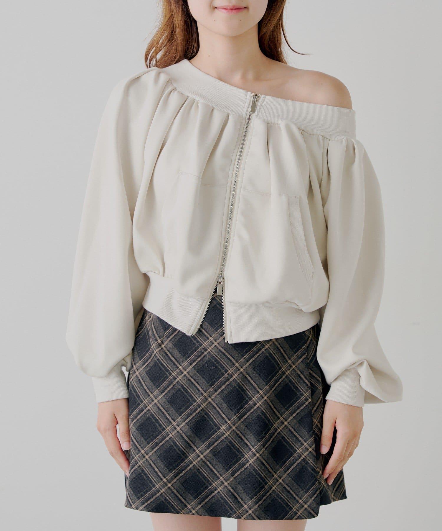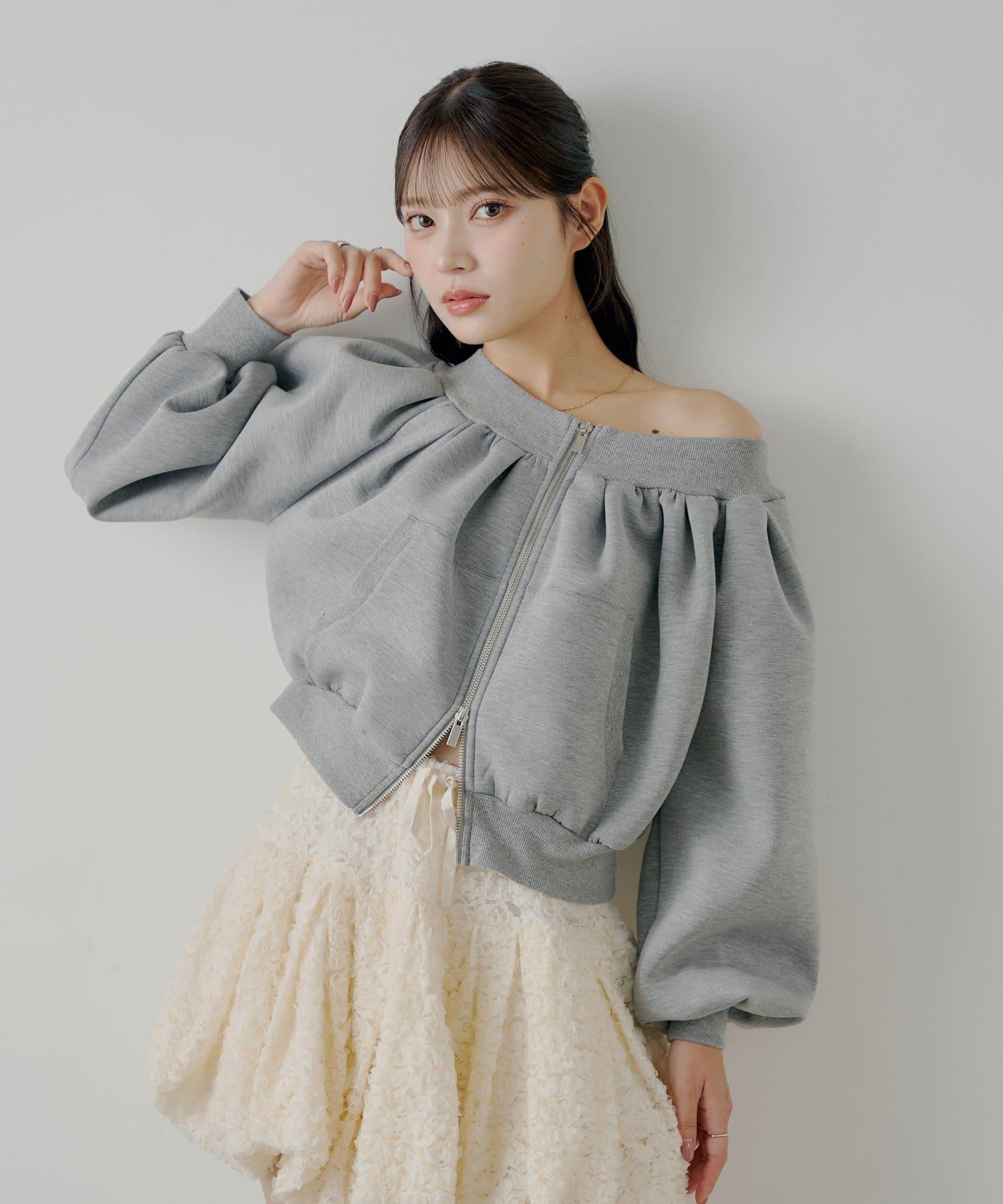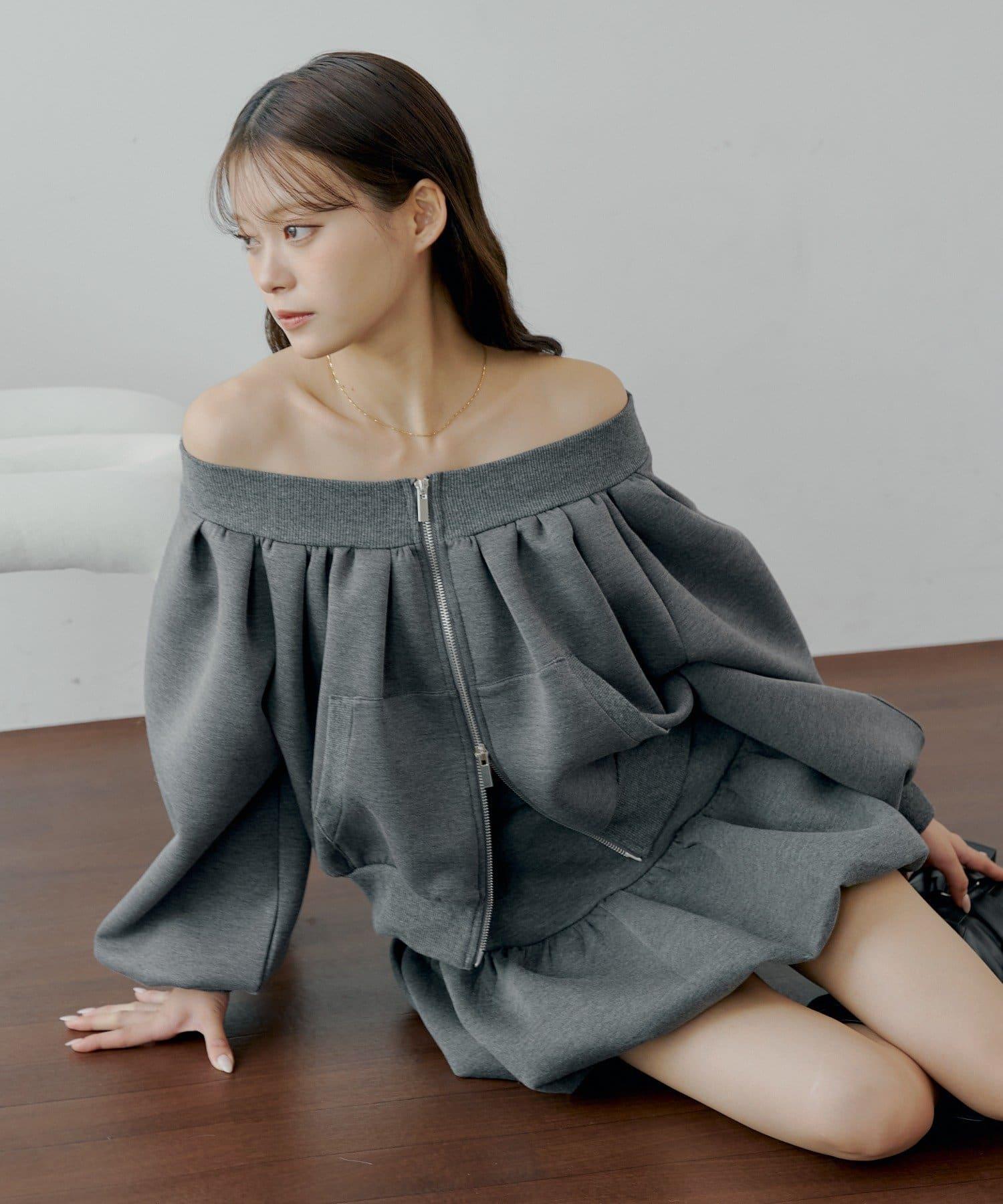 【Chico】2WAY一字肩雙拉鍊衛衣