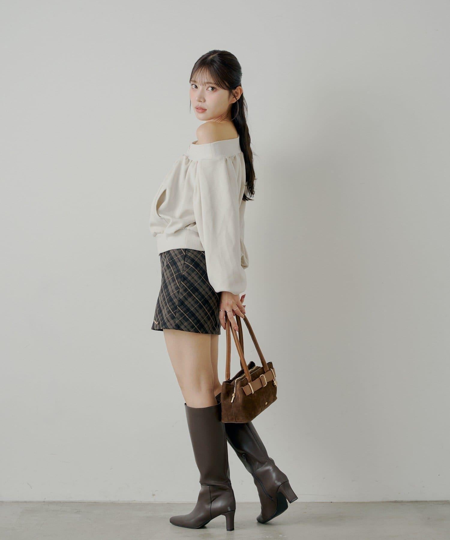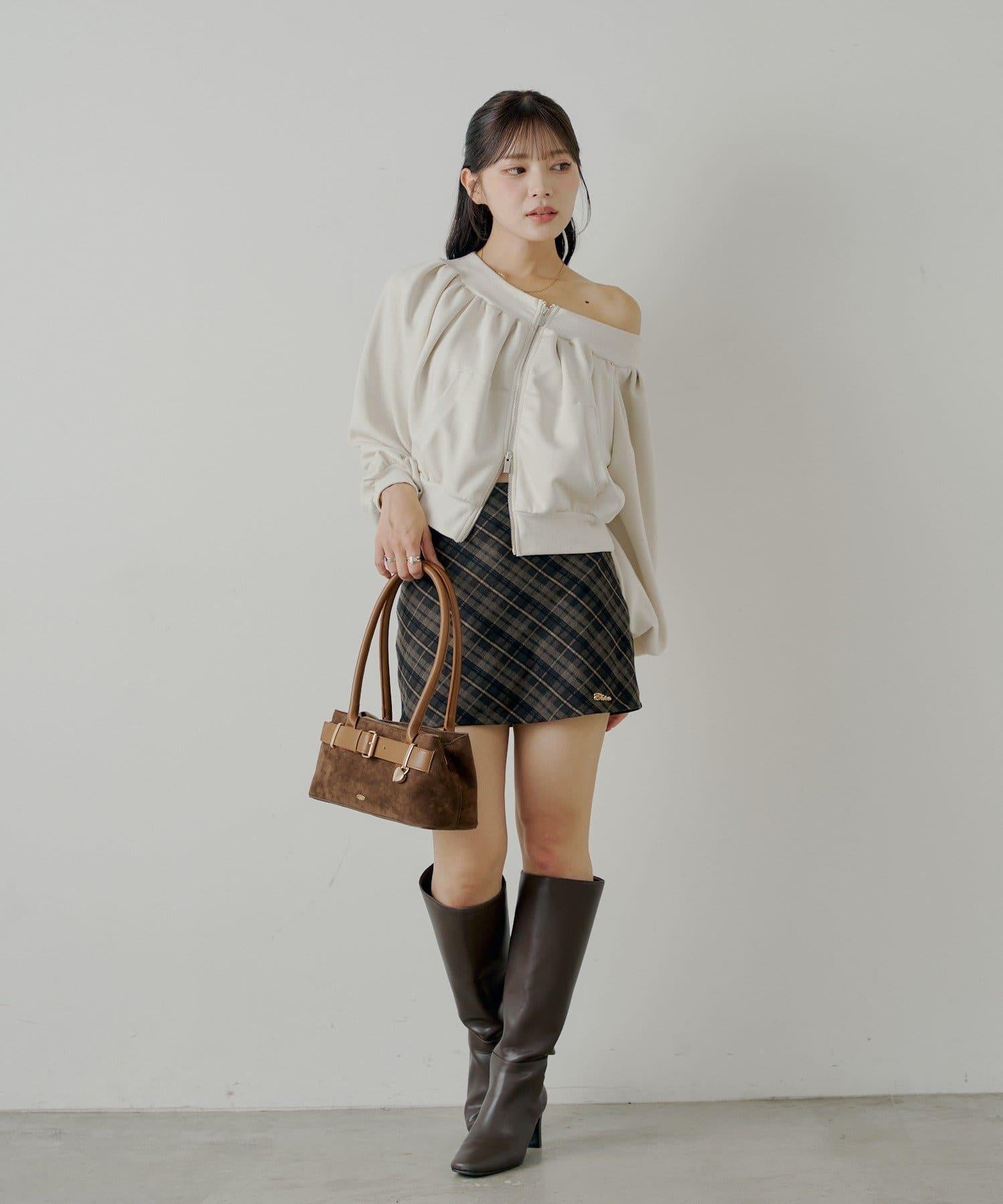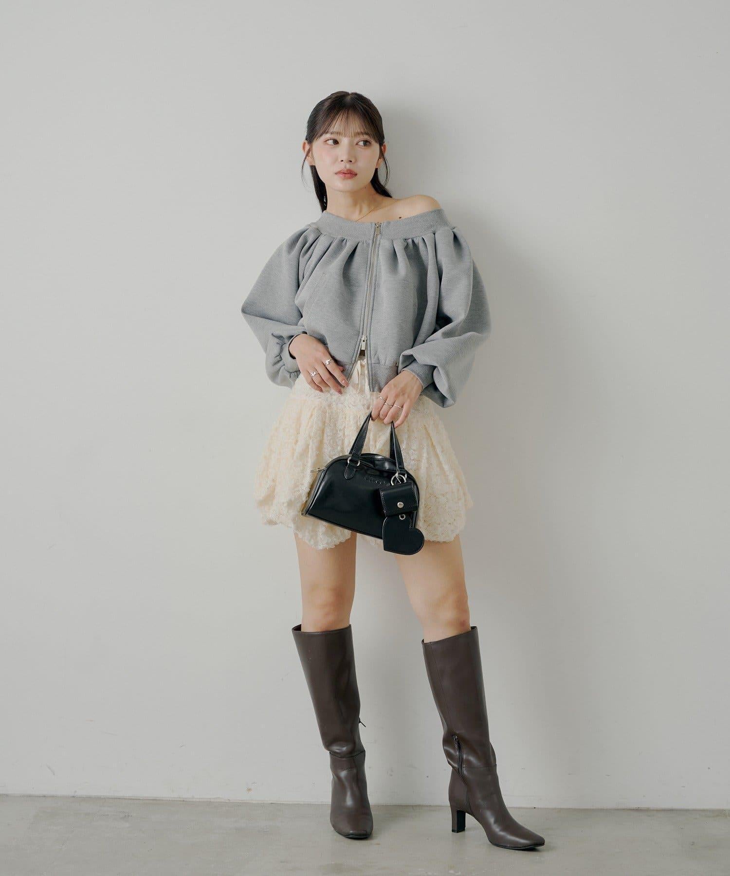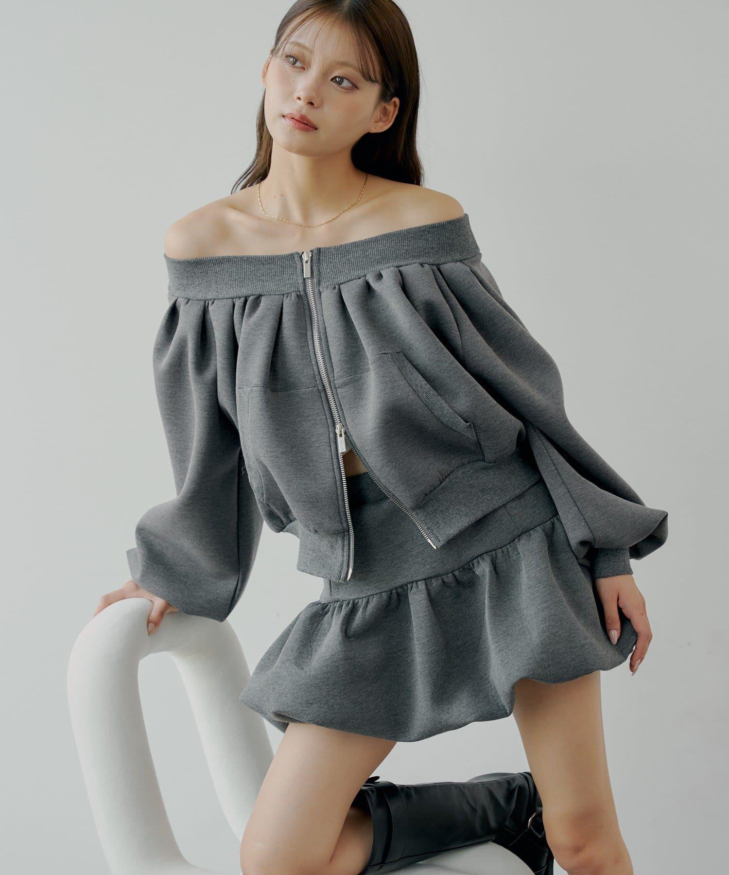 【Chico】2WAY一字肩雙拉鍊衛衣