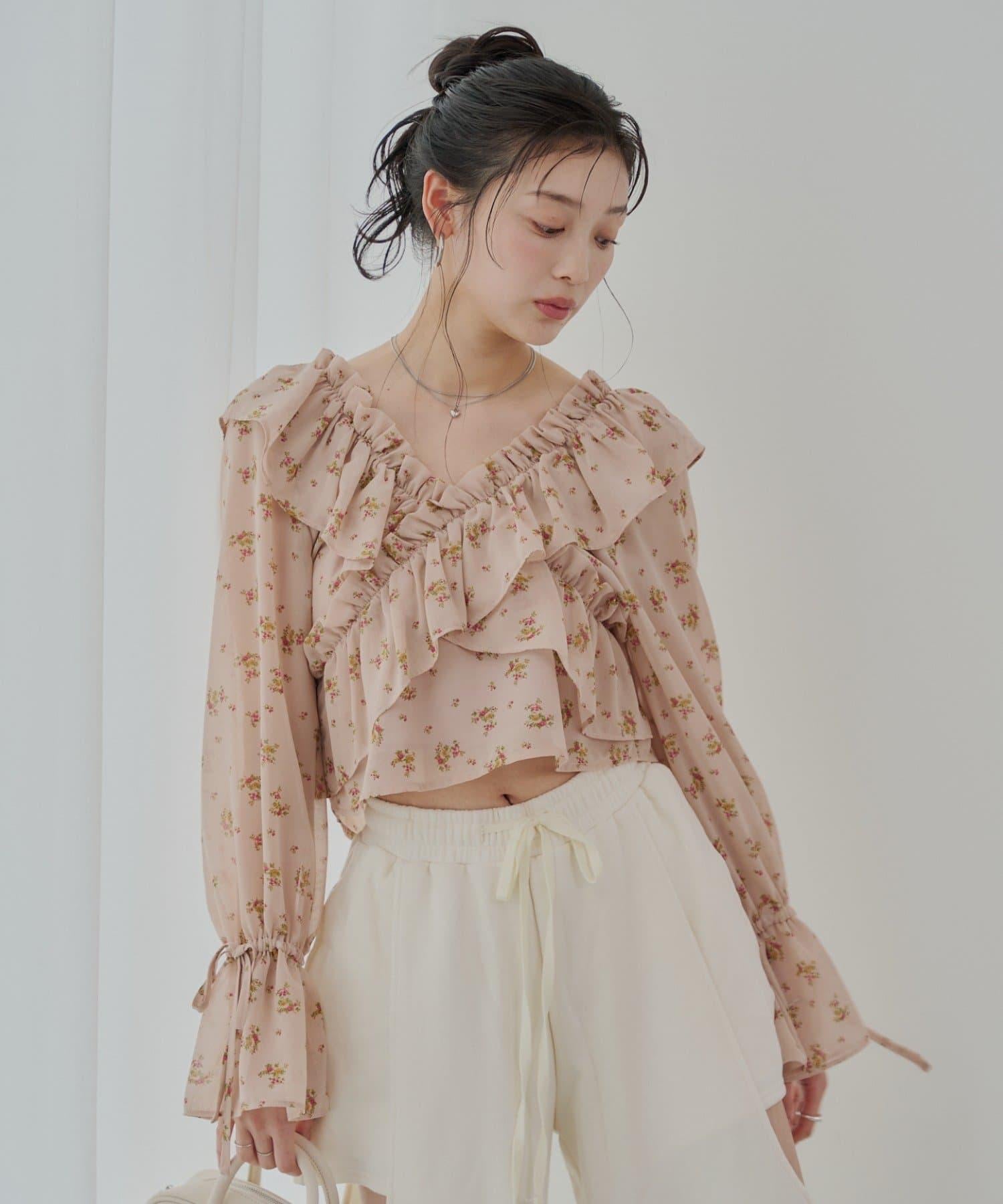 這款上衣上精緻的層疊荷葉邊賦予其女性化的優雅外觀。