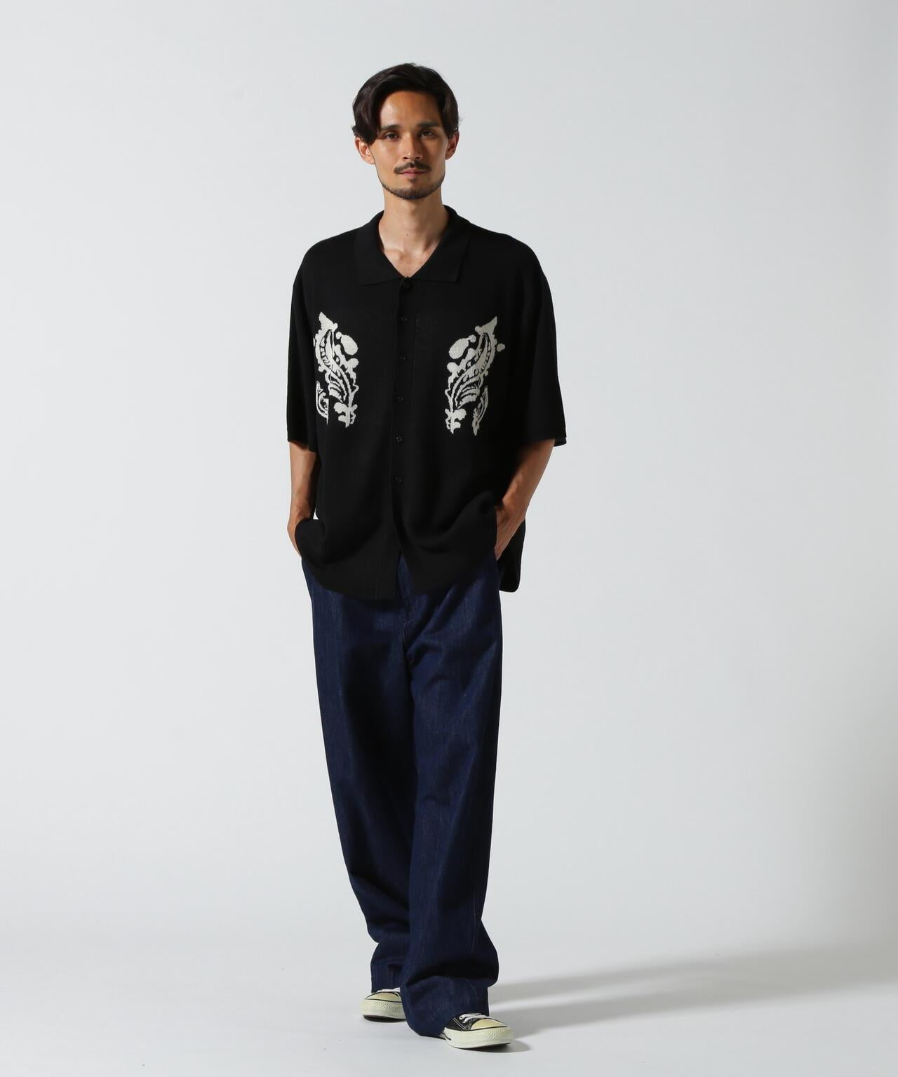 CHRONOIZM - 針織短袖襯衫,正面有針織花卉圖案設計。襯衫較薄,即使在難以多穿幾層的夏季也能穿著舒適。領後縫有皮革貼布。搭配牛仔褲、運動褲或貨郎褲,打造時髦的街頭風格。也可以搭配休閒褲和襯衫內搭,享受與眾不同的簡潔風格。CHRONOIZM "以 "沙漏 "為標誌開發服裝產品,否定時間的流動,以模式和街頭為主軸。代表兼設計師/模特 Keigo 是搖滾樂隊 "Novelbright "的貝斯手。
