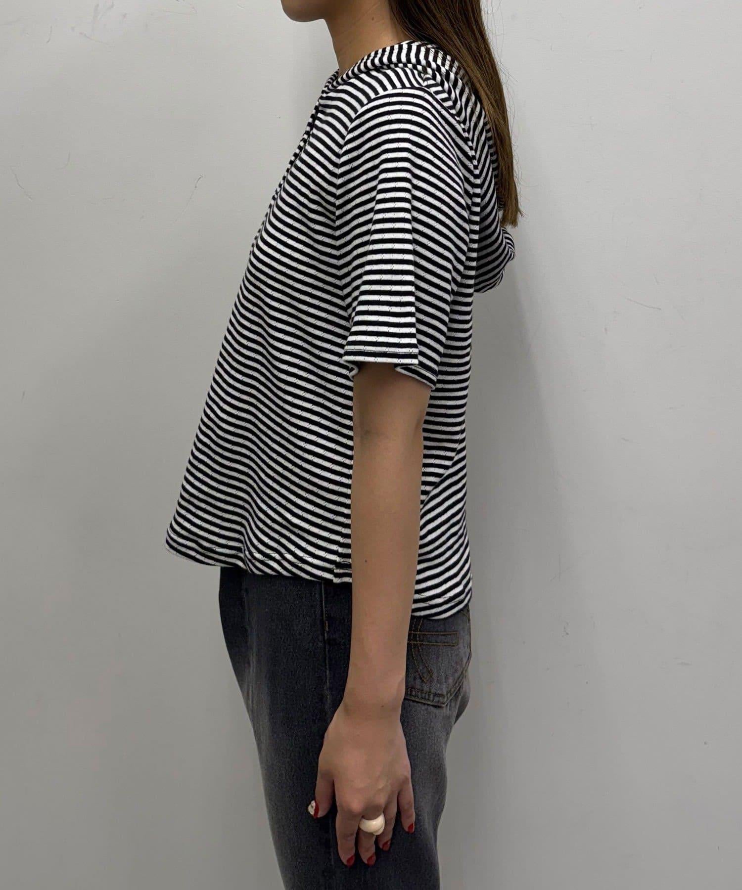 具有千年情懷的鑲邊連帽衫,採用寬鬆的針刺漂白麵料製成。