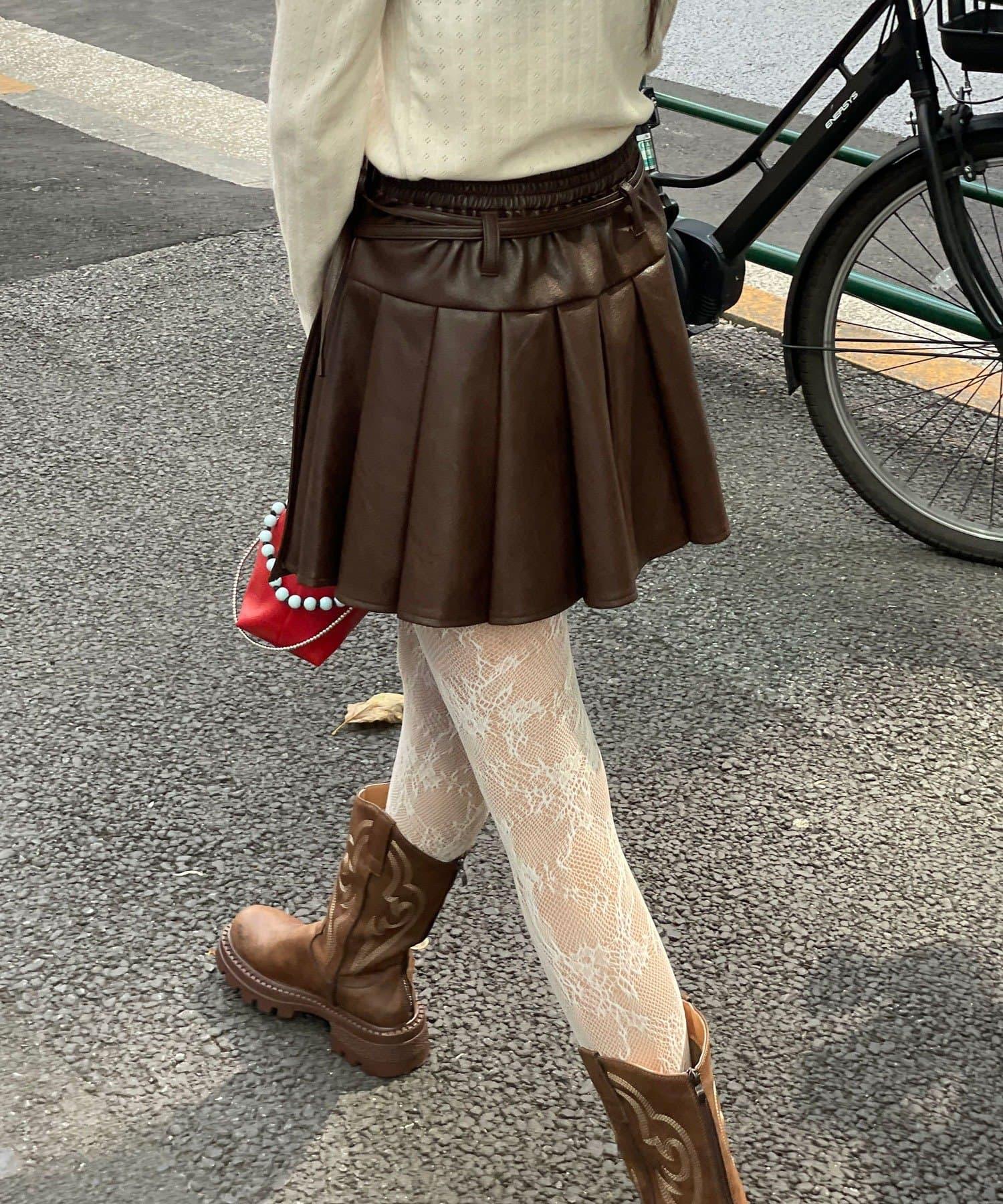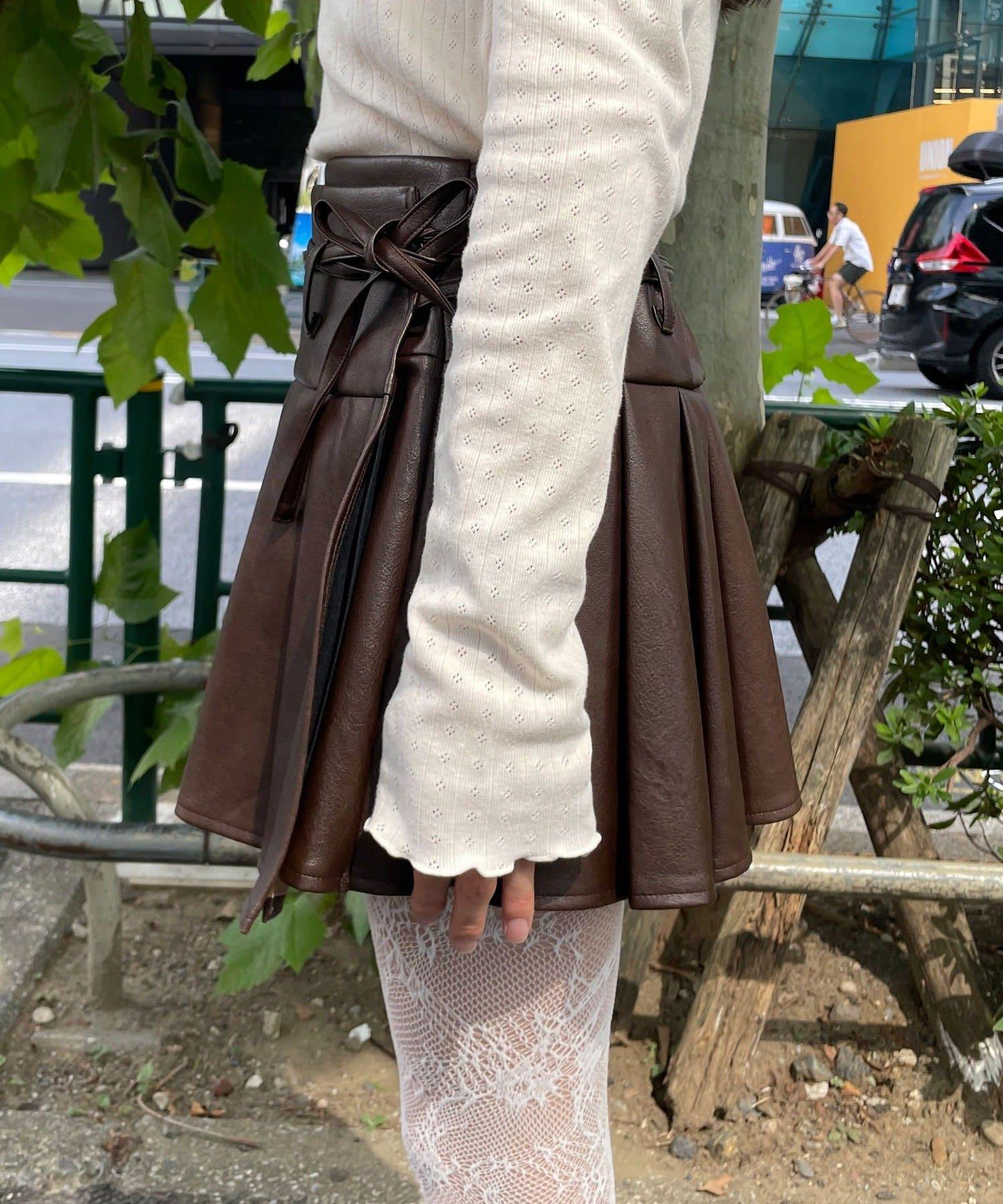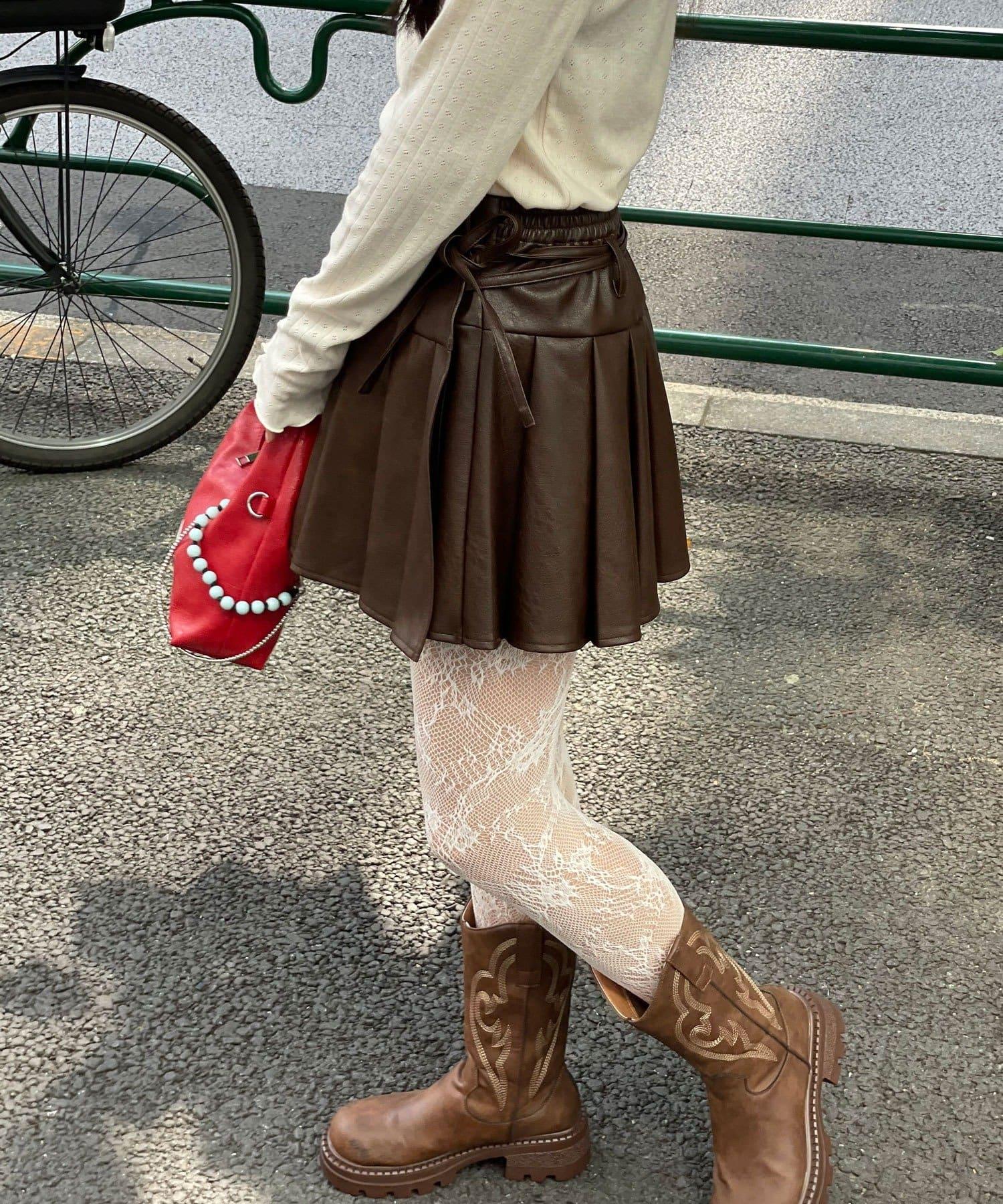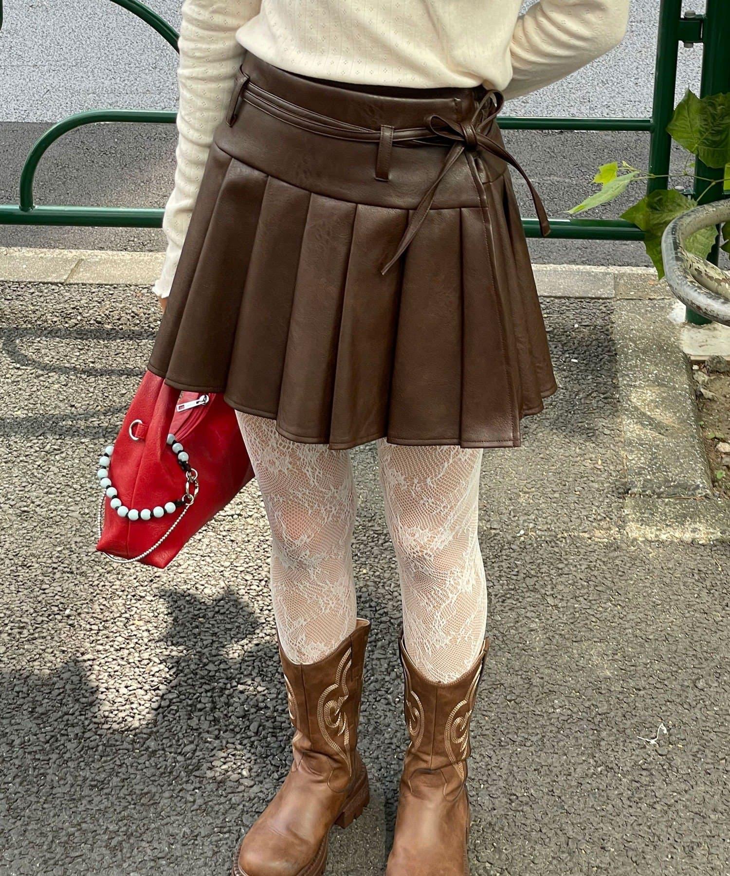 【Ciaopanic】皮革百褶包裹式迷你裙