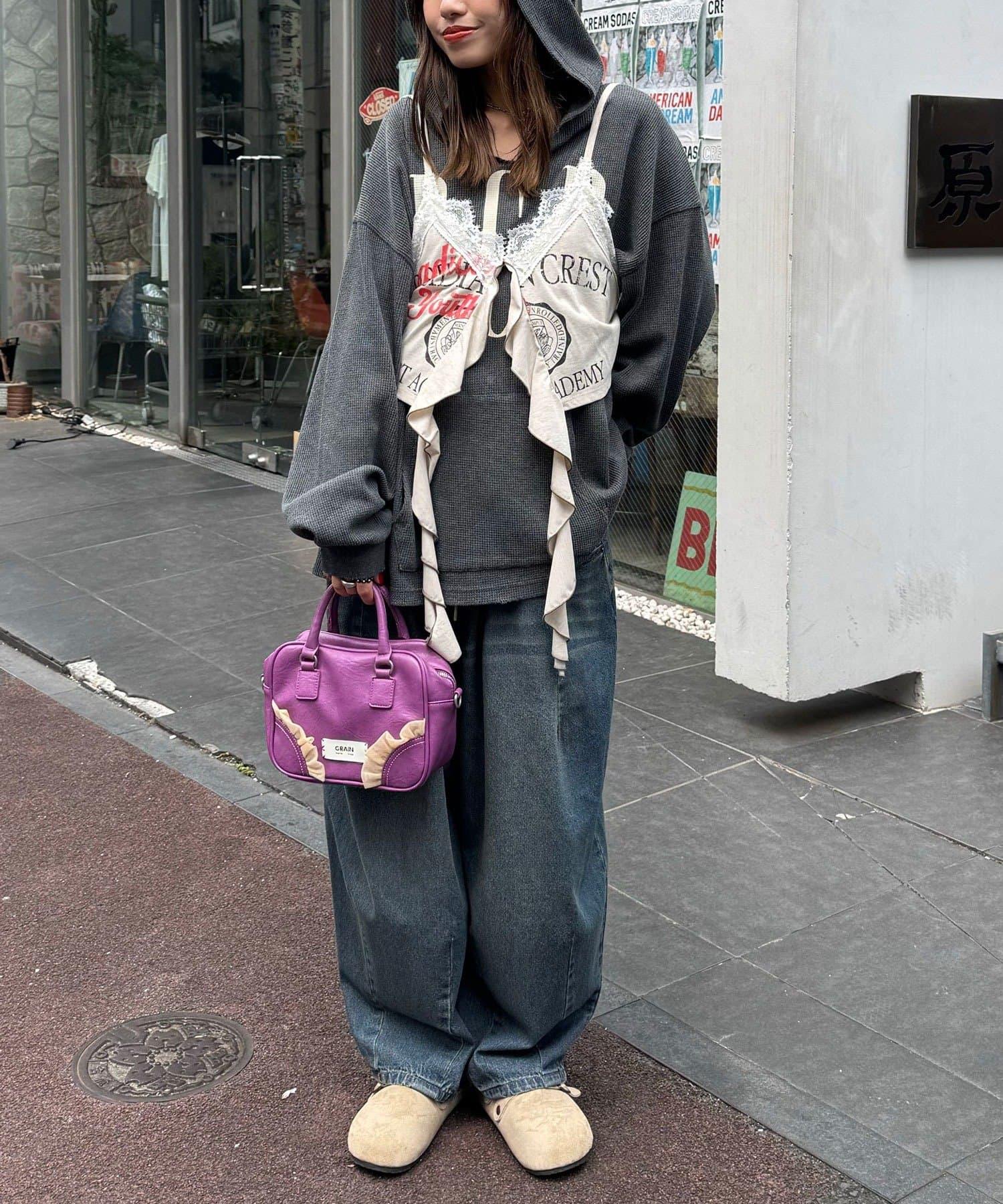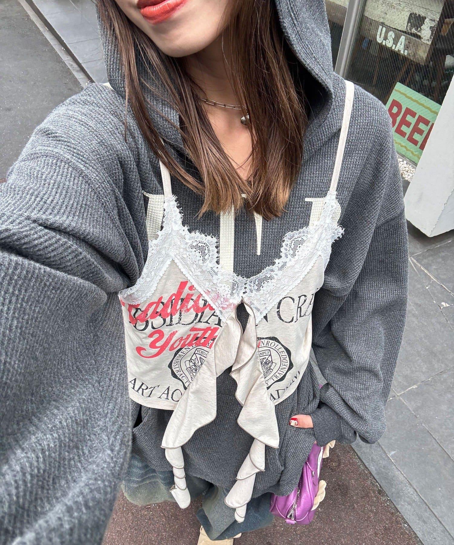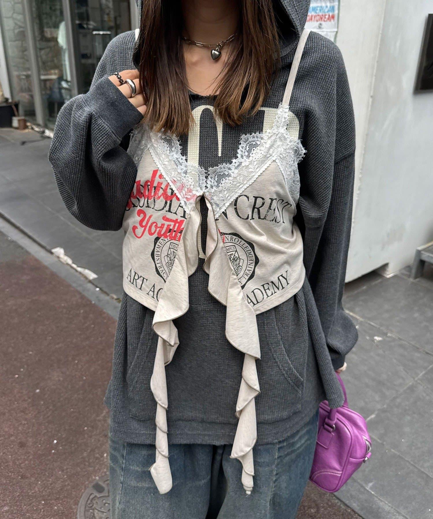 搭配蕾絲內搭和褶邊下裝,打造 Y2K 街頭風格。