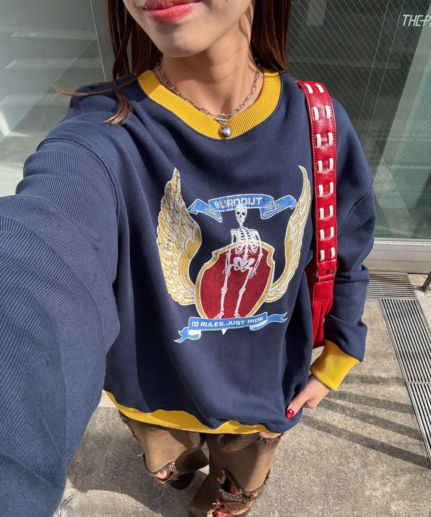 這是一款印有醒目各式圖案的環形運動衫,非常吸引眼球。