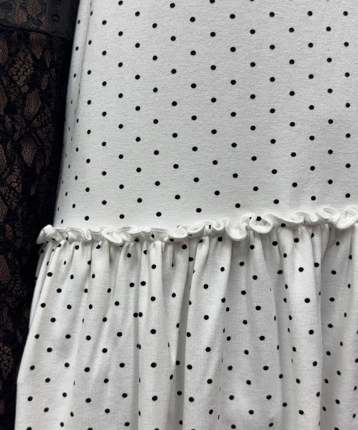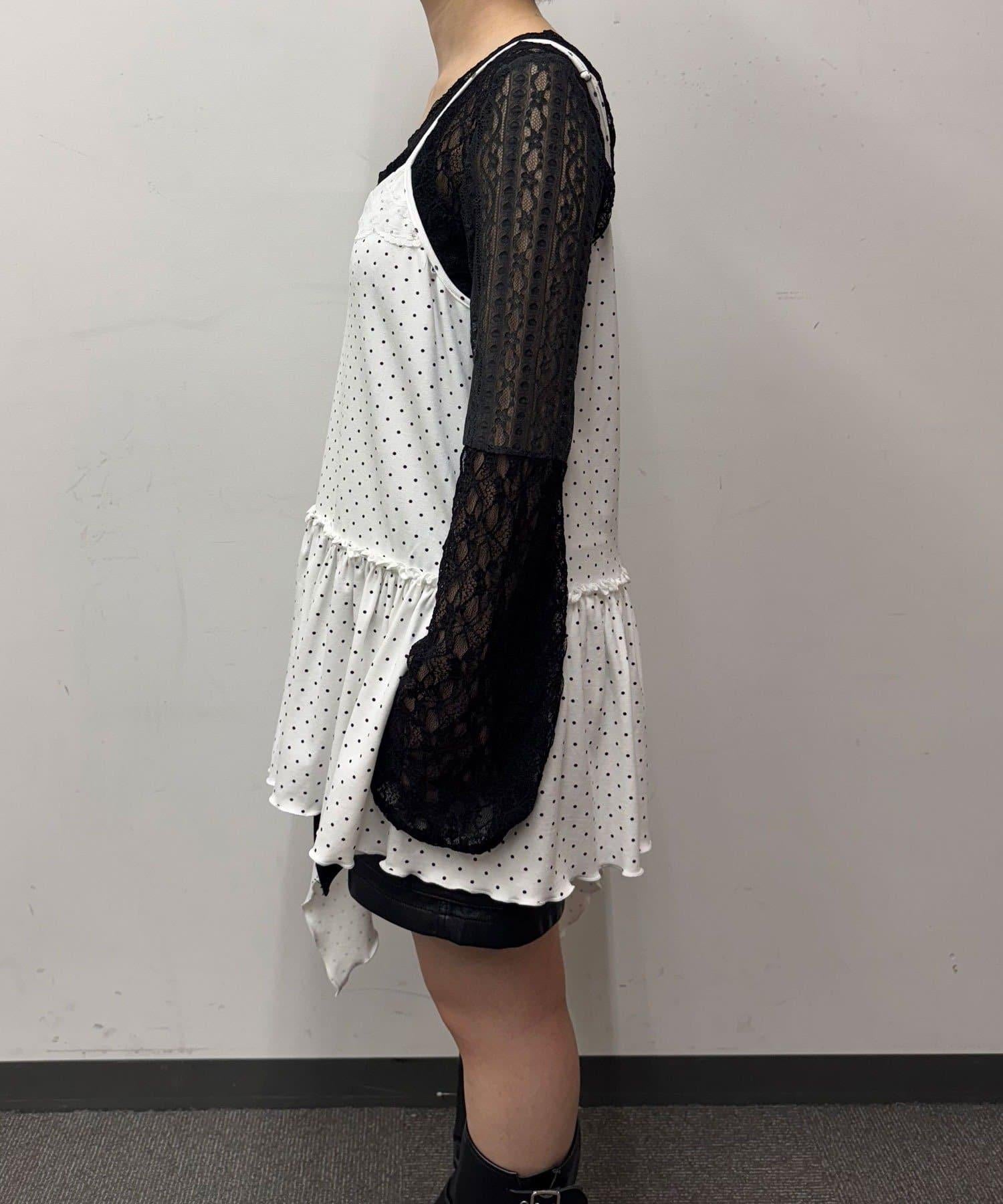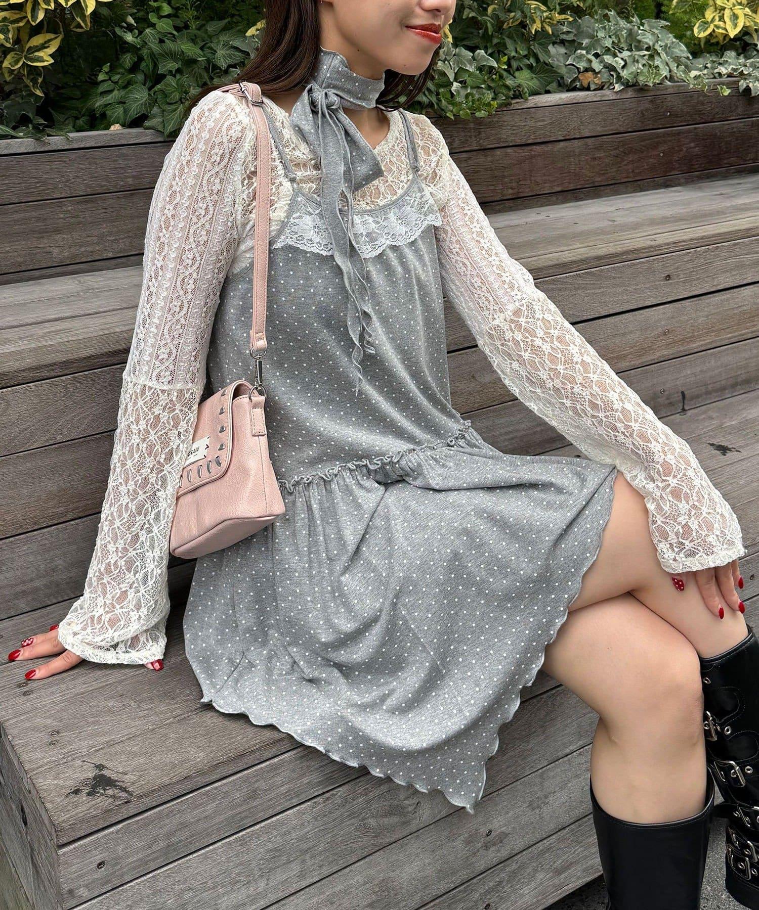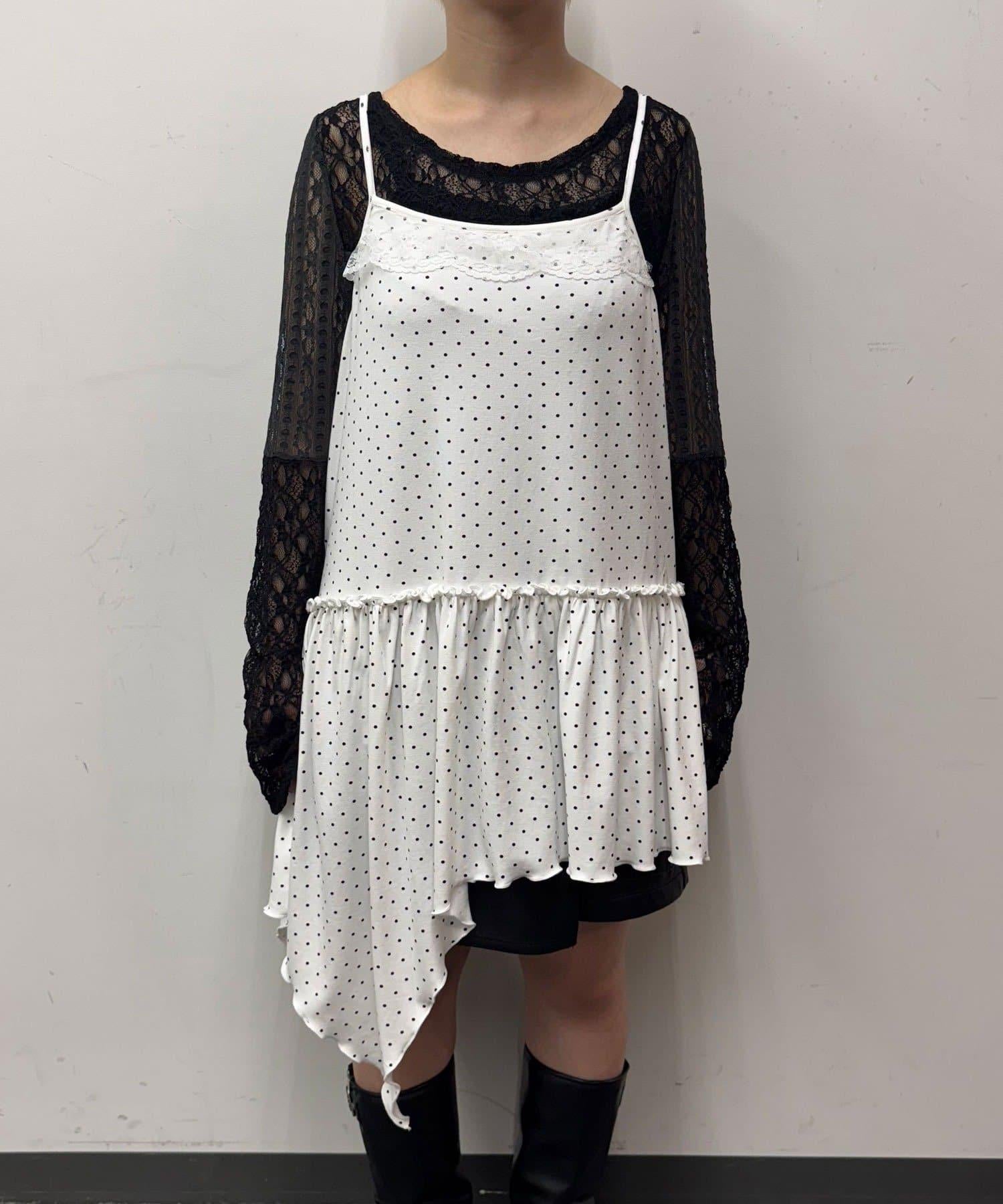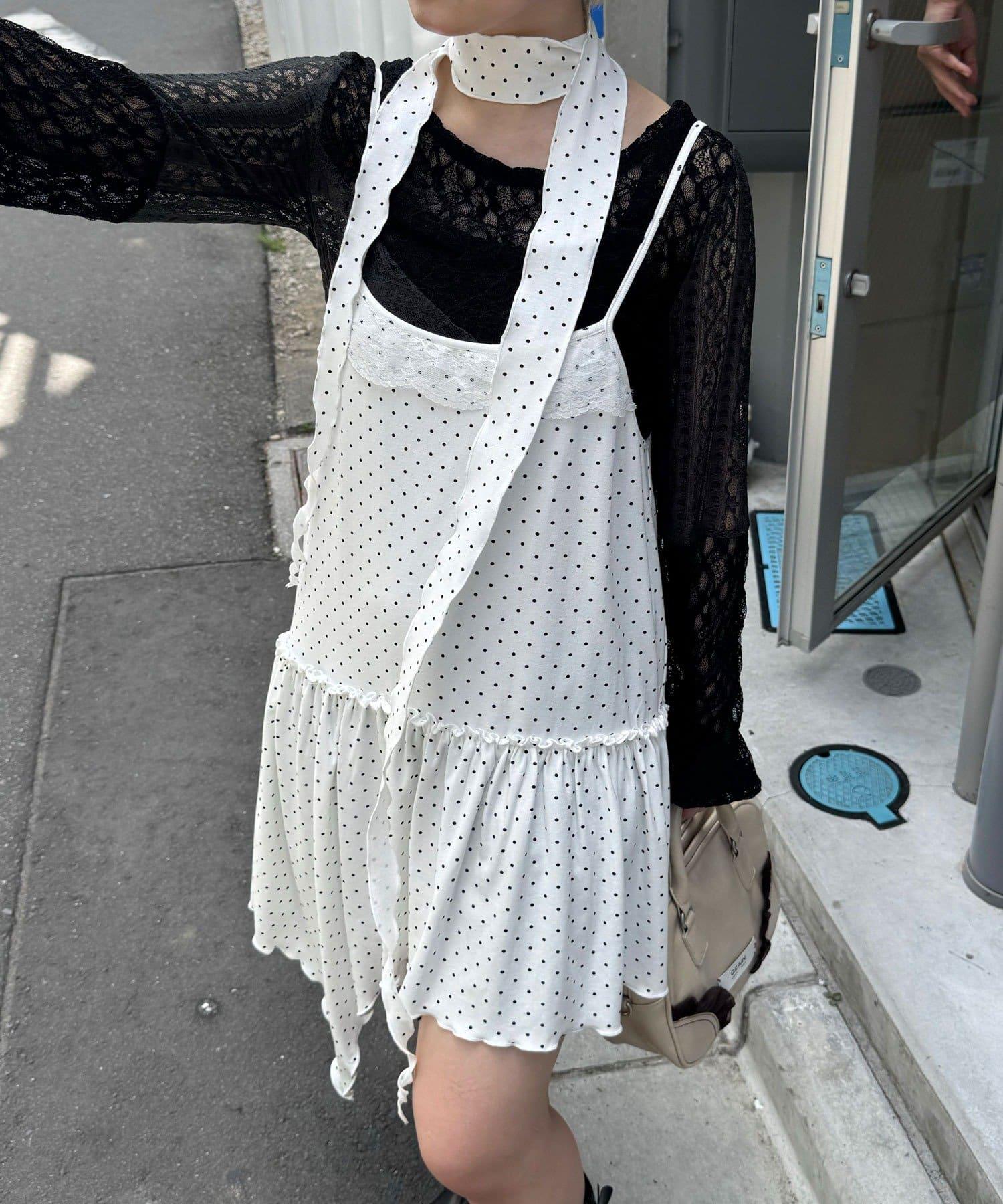 吊帶連身裙,採用蕾絲、圓點、不對稱設計和精巧的細節。