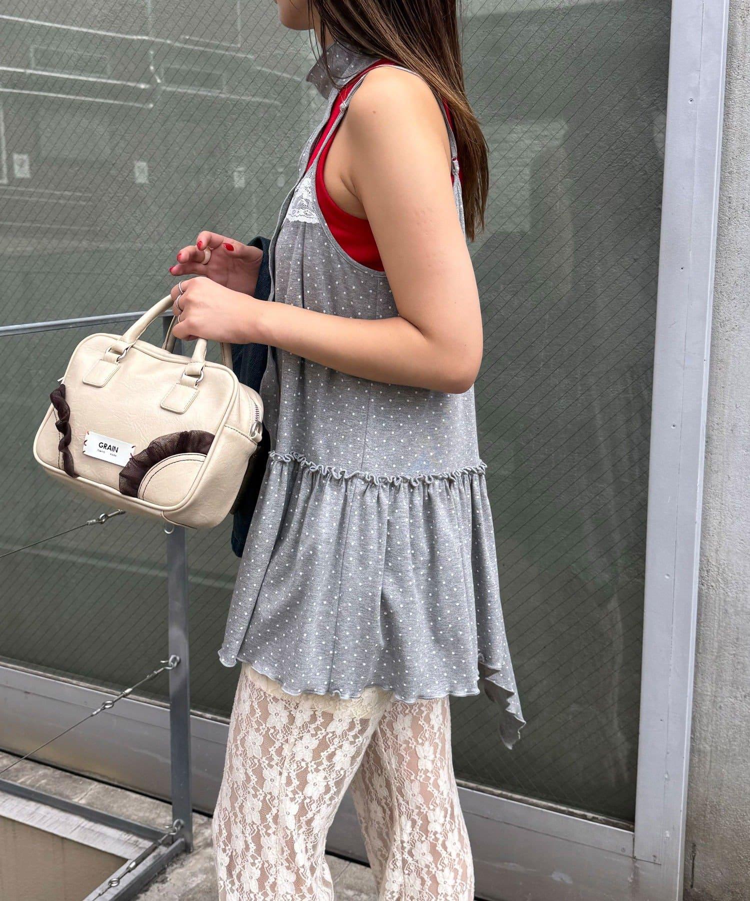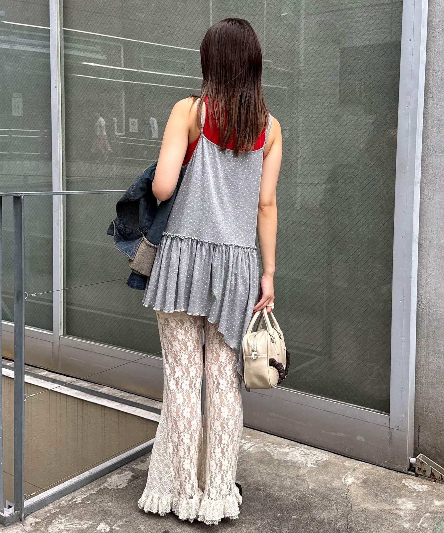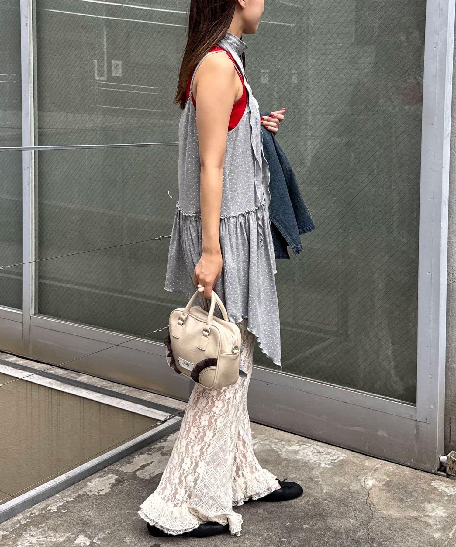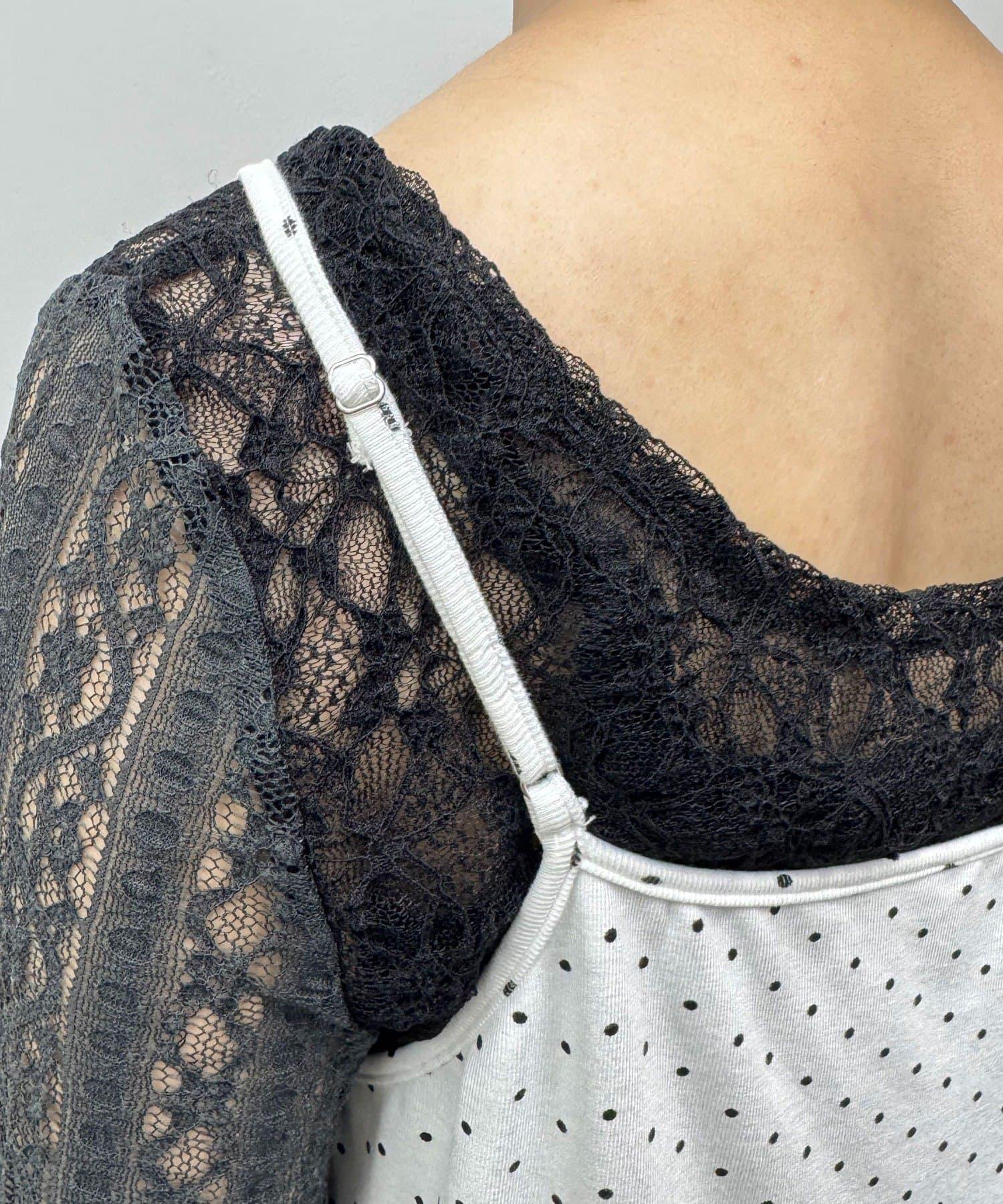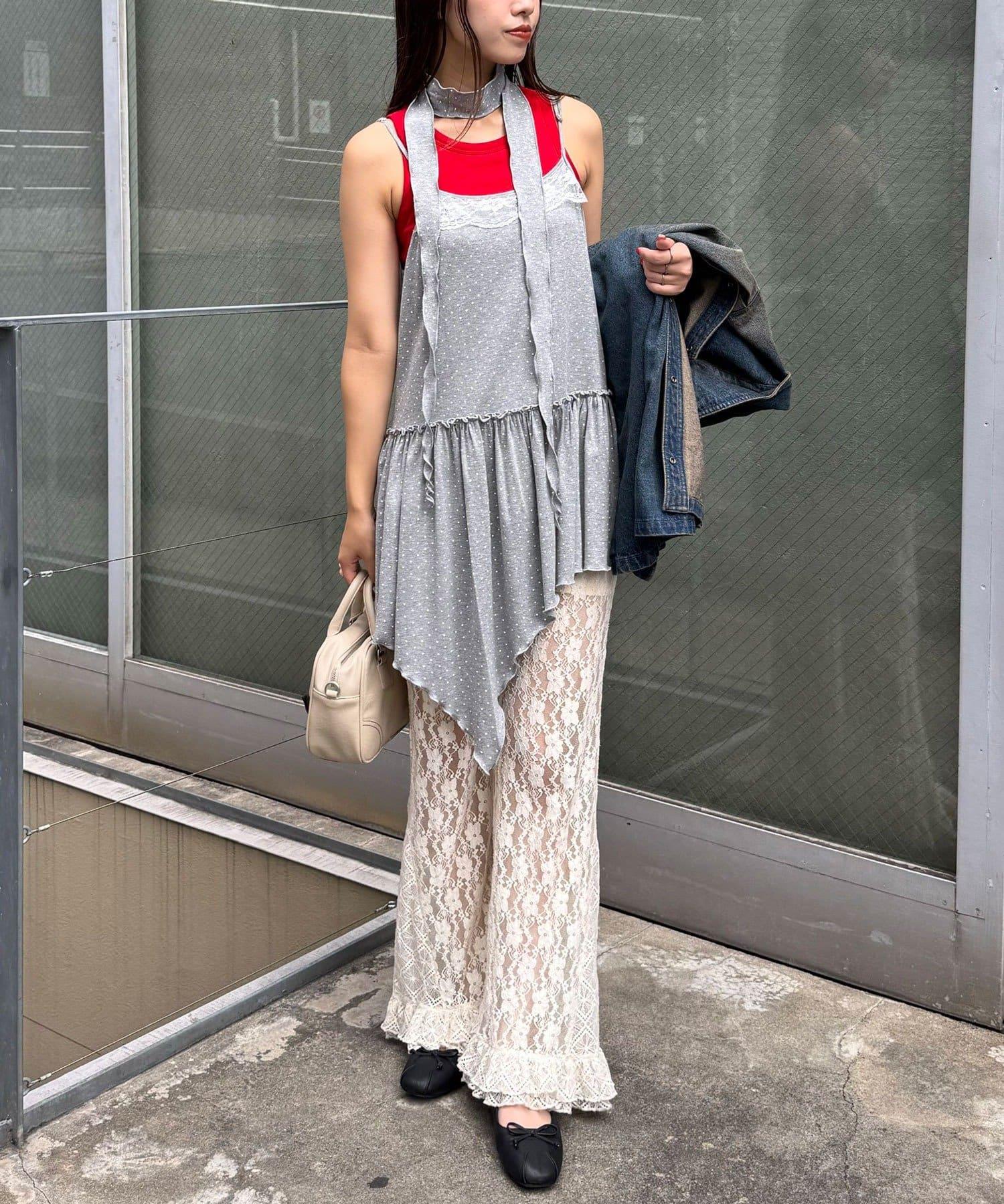 吊帶連身裙,採用蕾絲、圓點、不對稱設計和精巧的細節。