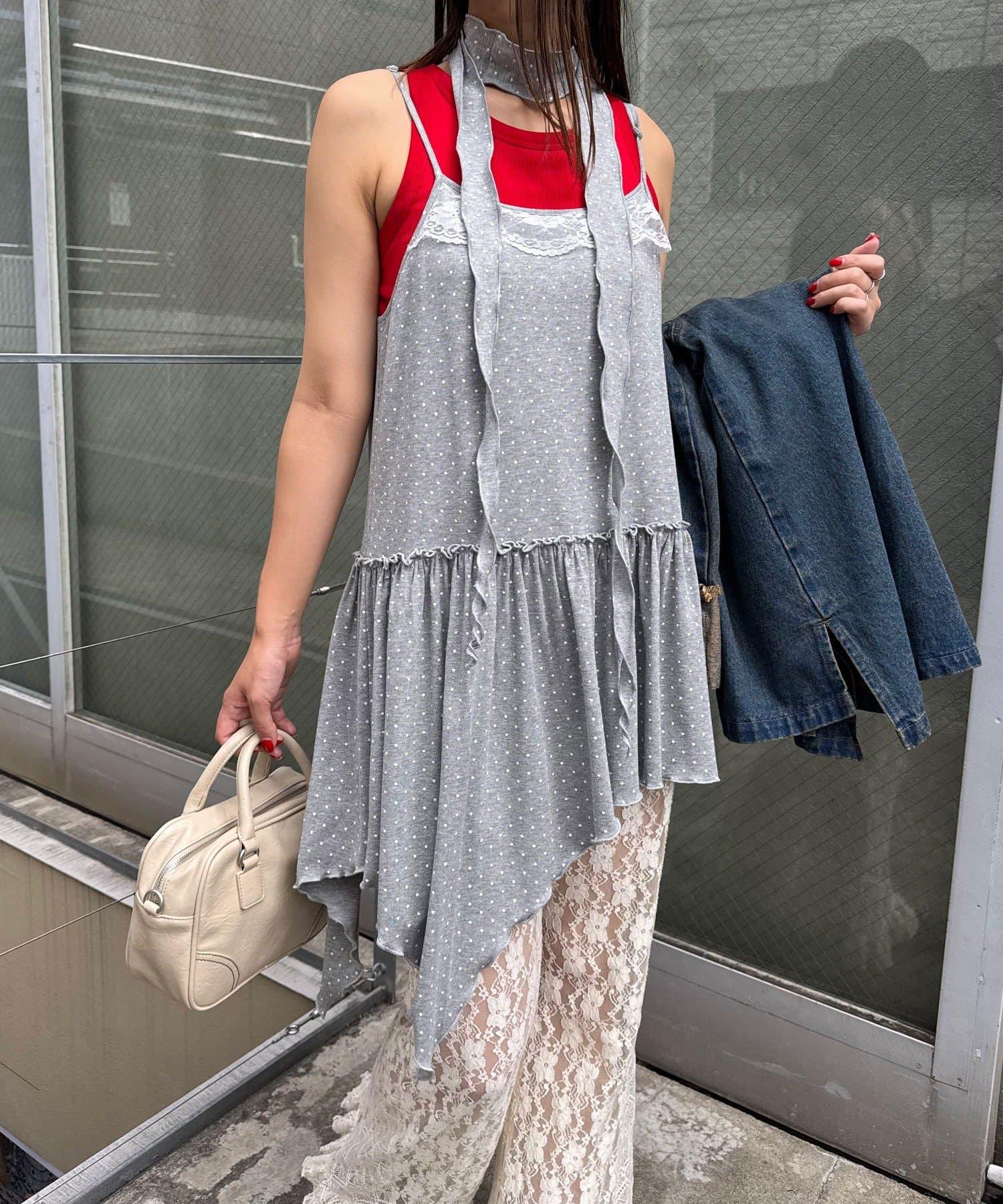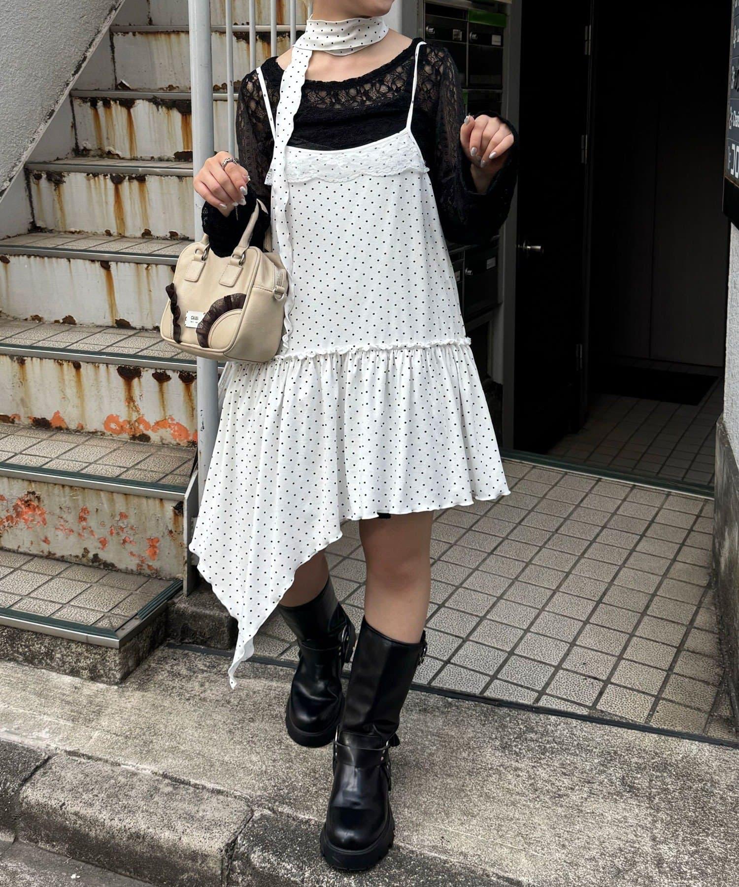 【Ciaopanic】項圈套裝波點不對稱吊帶連衣裙
