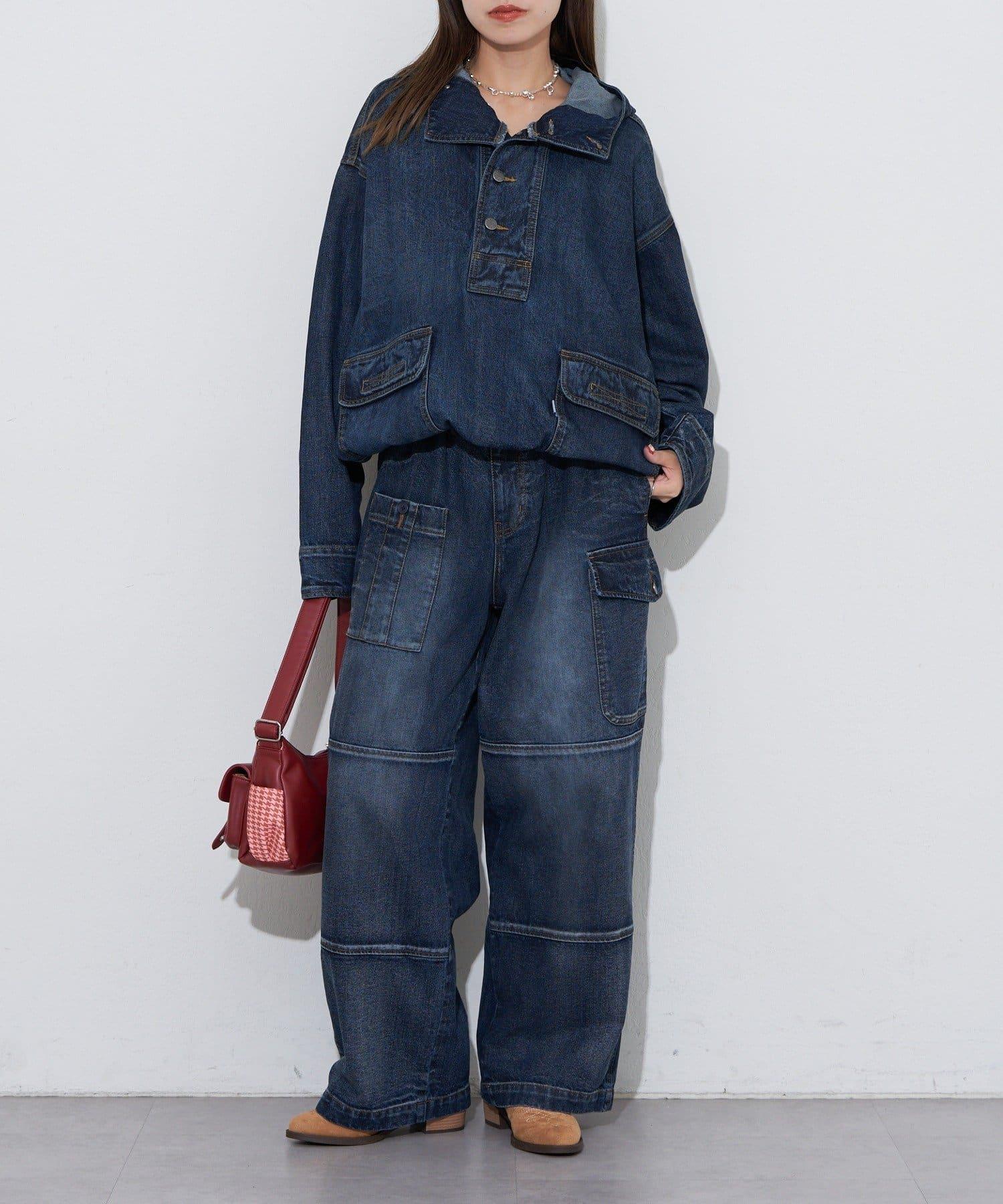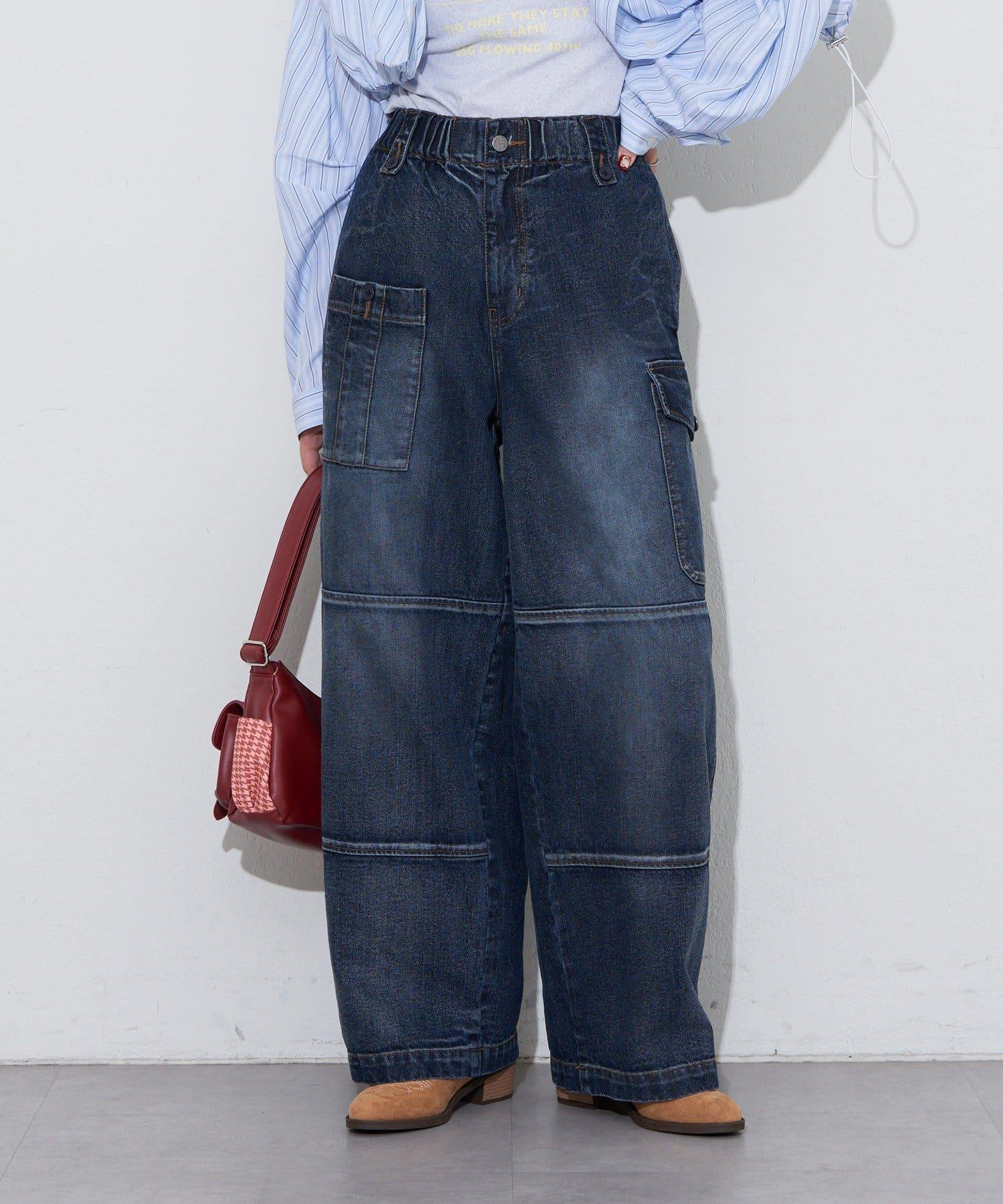 戰鬥風格的牛仔長褲,採用醒目的大膽開關設計和立體口袋。