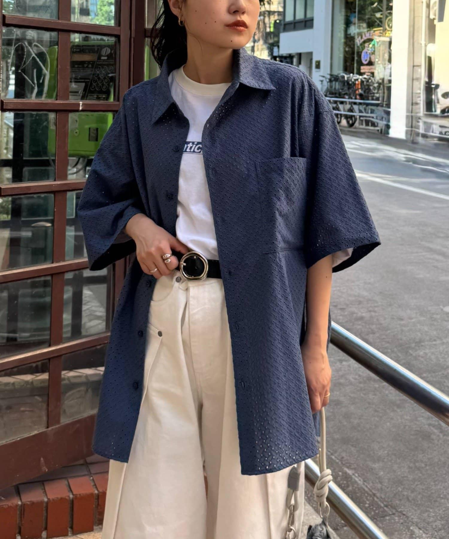 CIAOPANIC TYPY 中性提花刺繡蕾絲襯衫