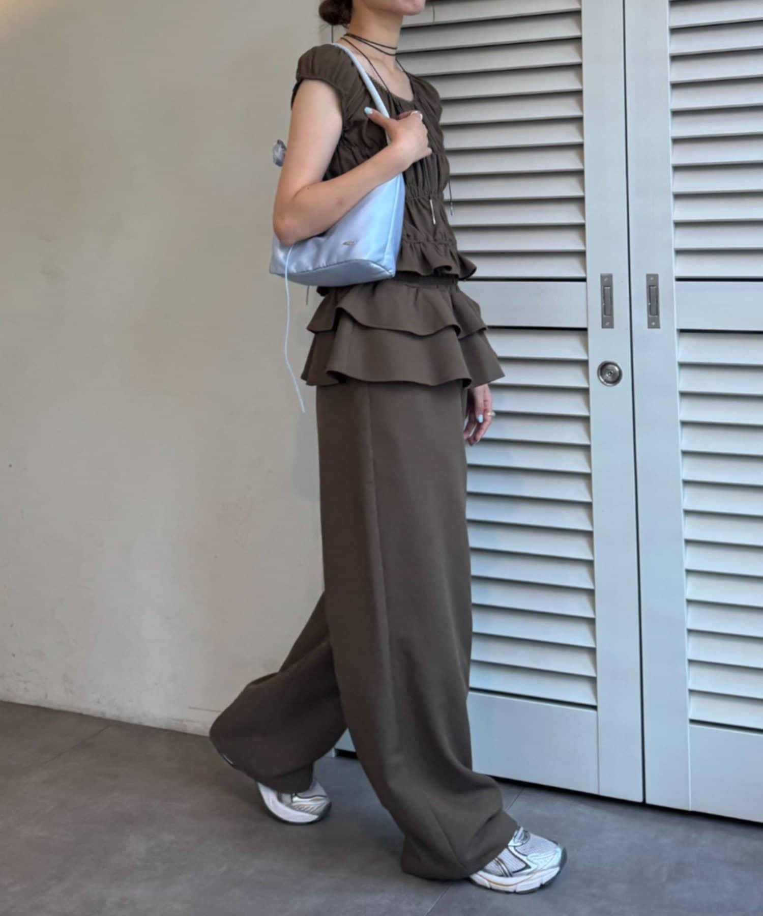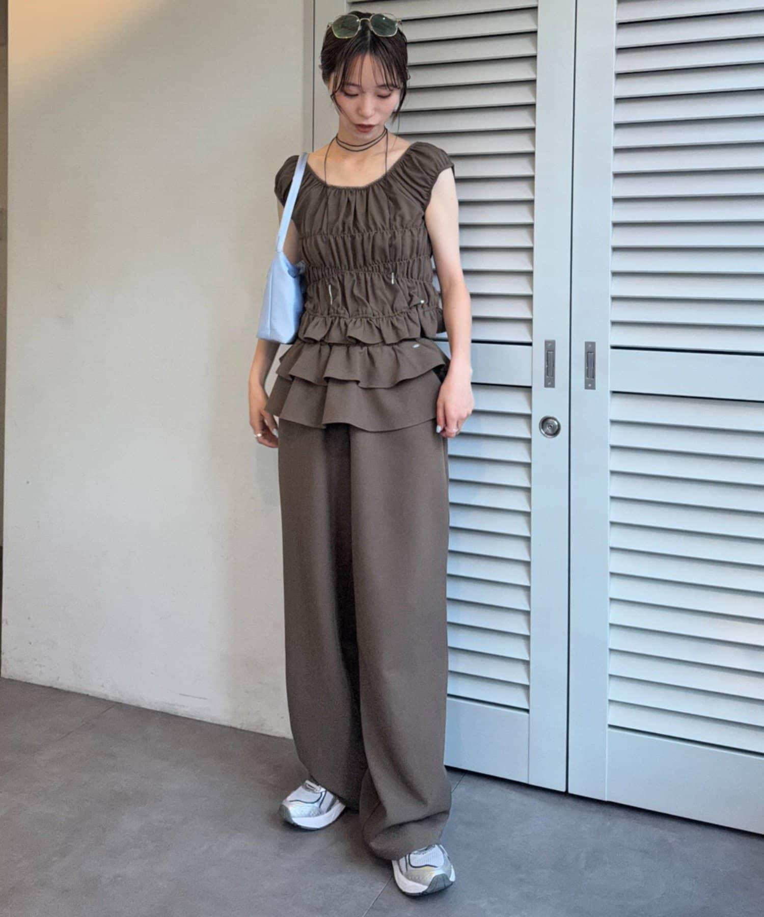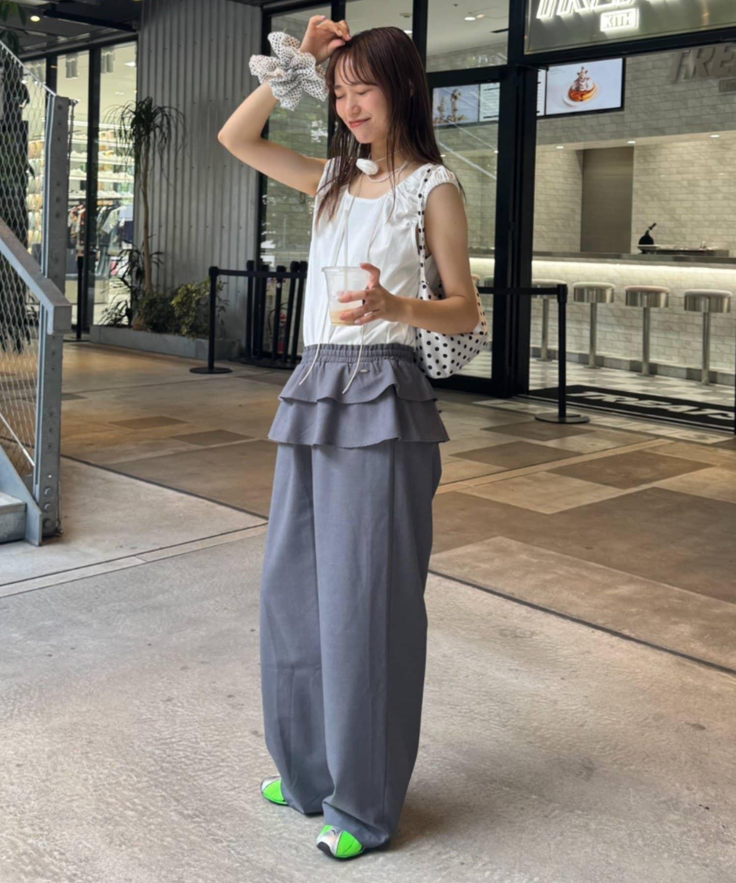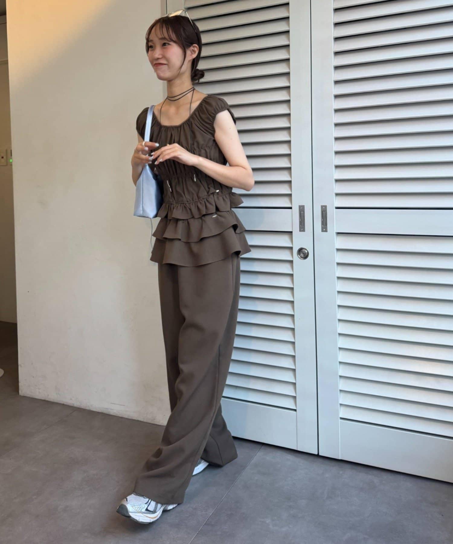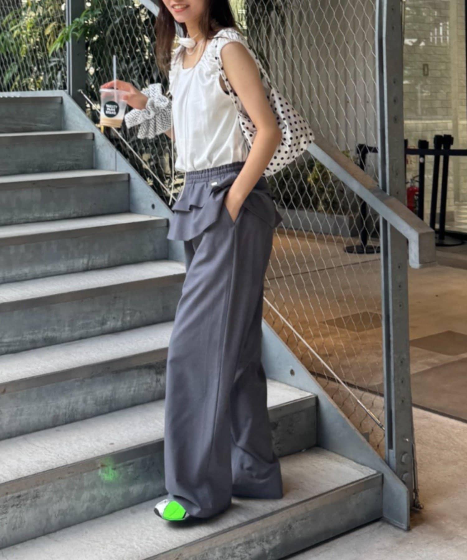 褶皺設計的褲子乍一看很簡單,但只要穿上就會給人一種精緻的感覺。
