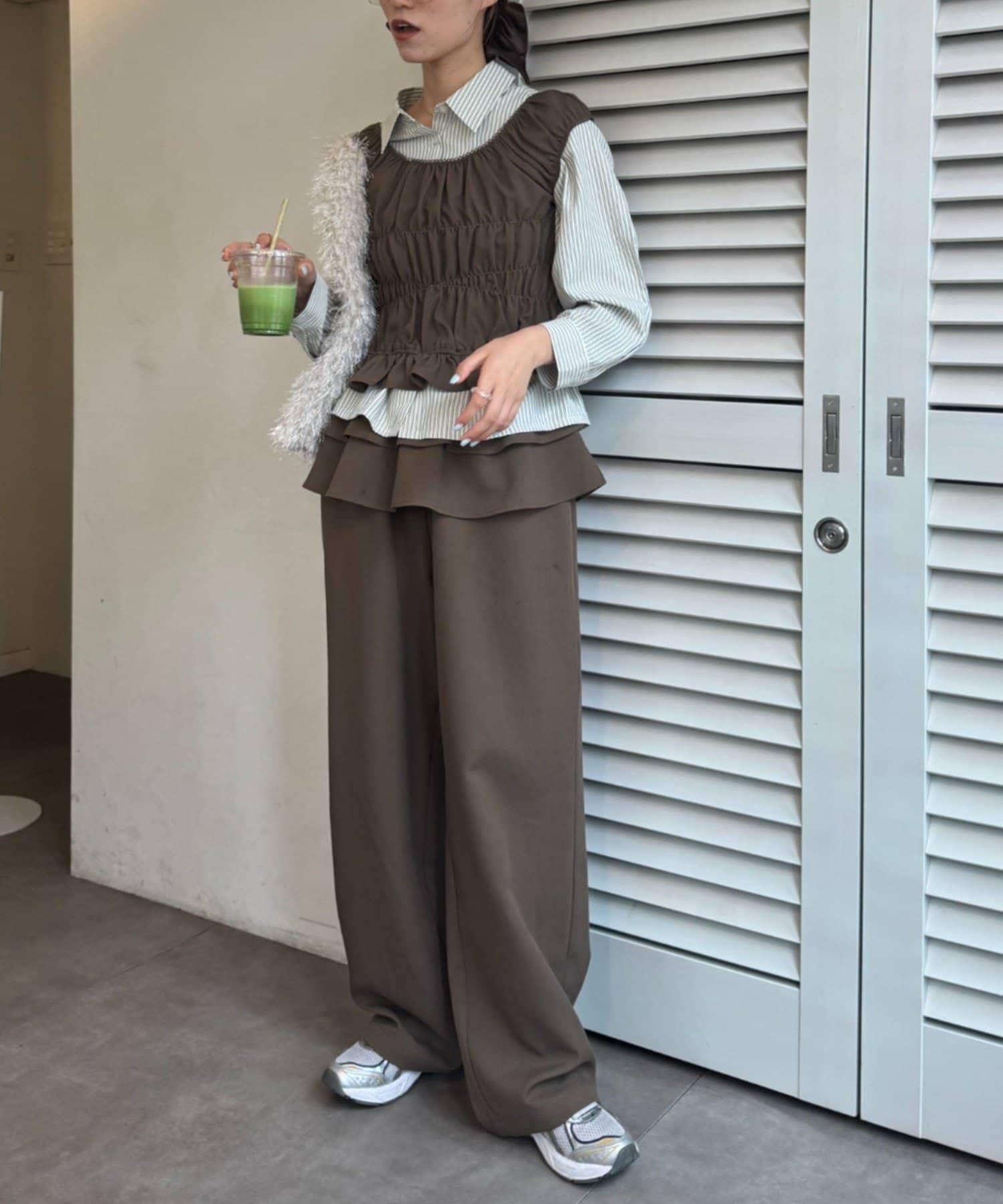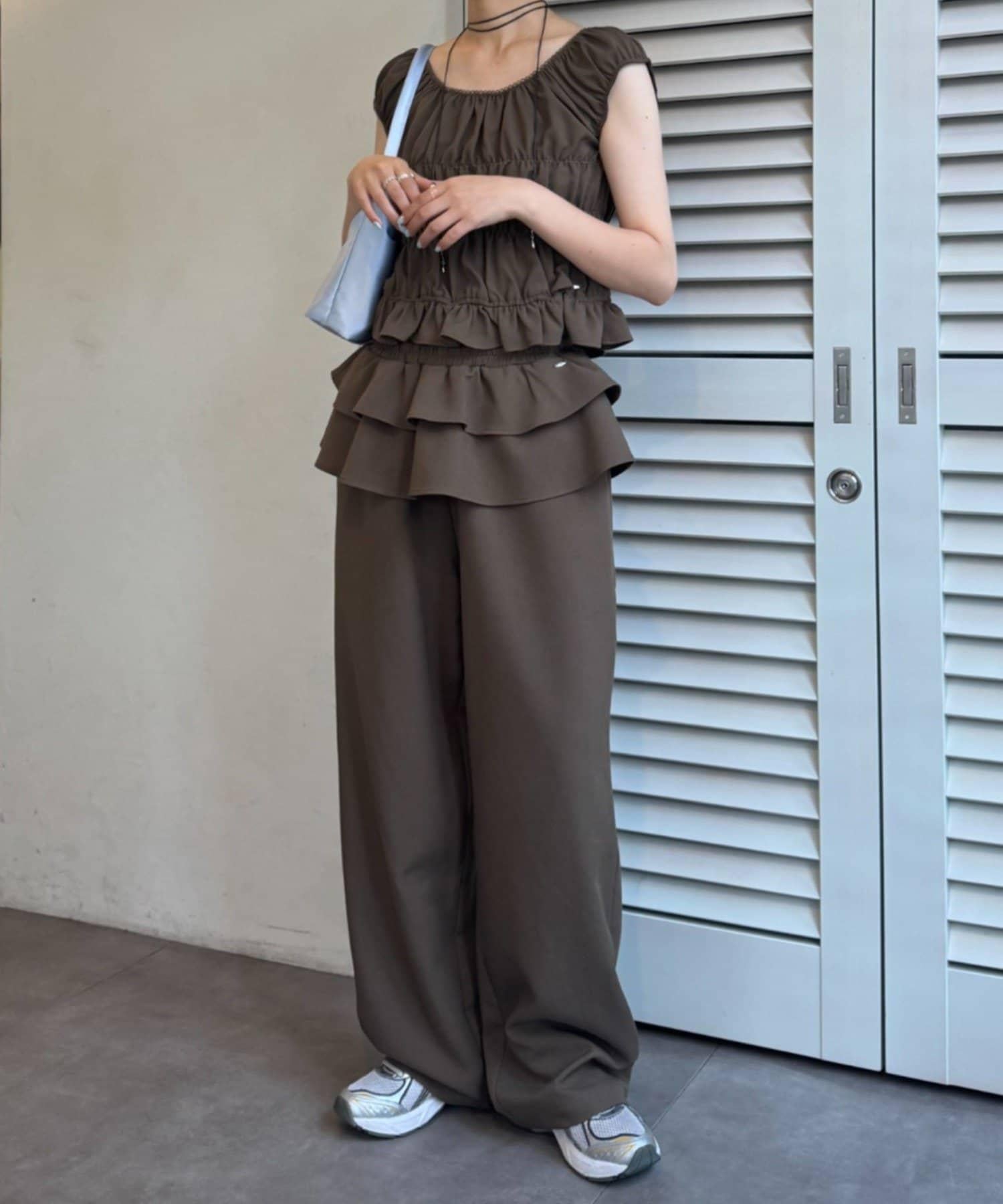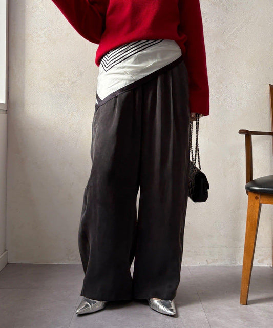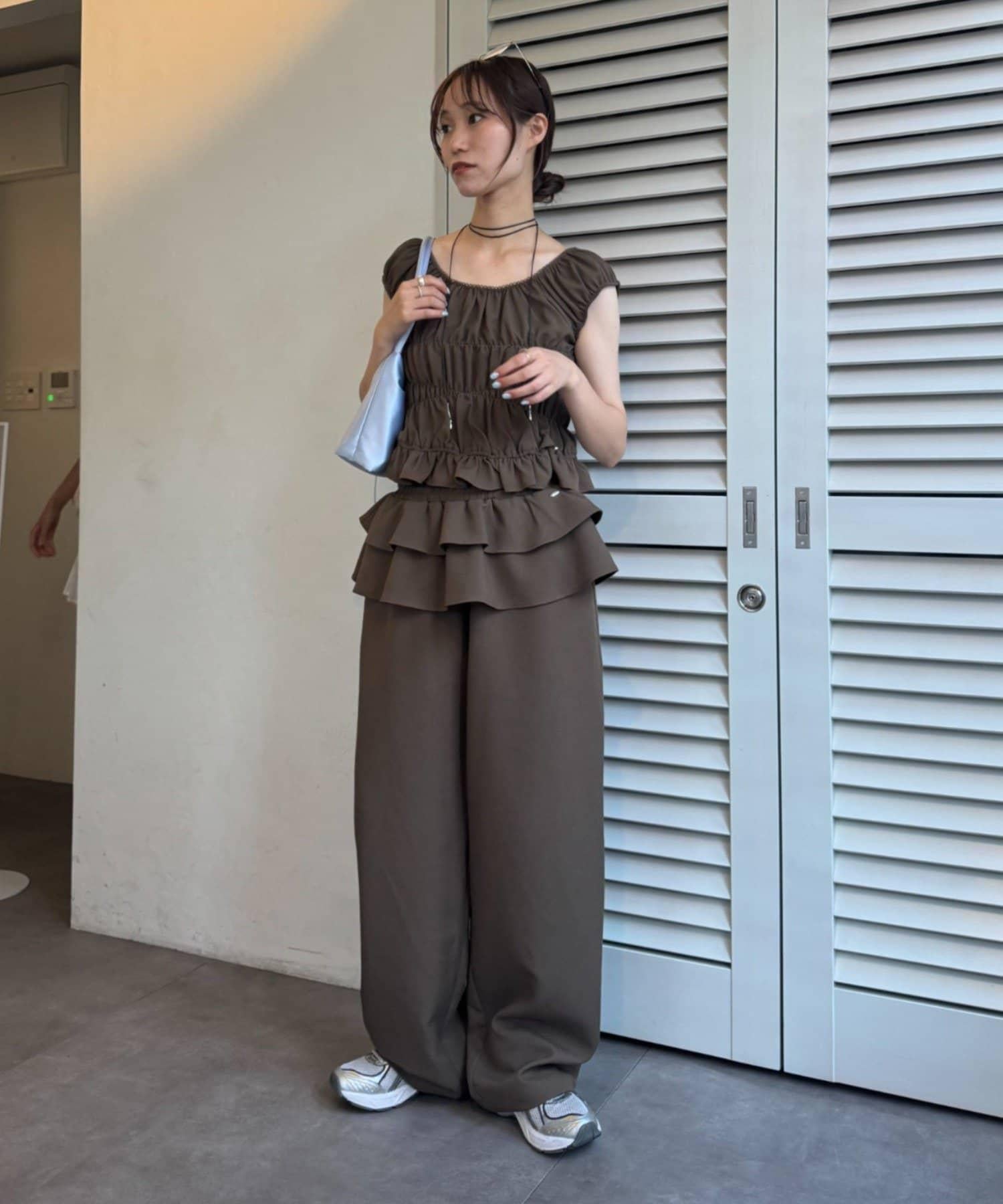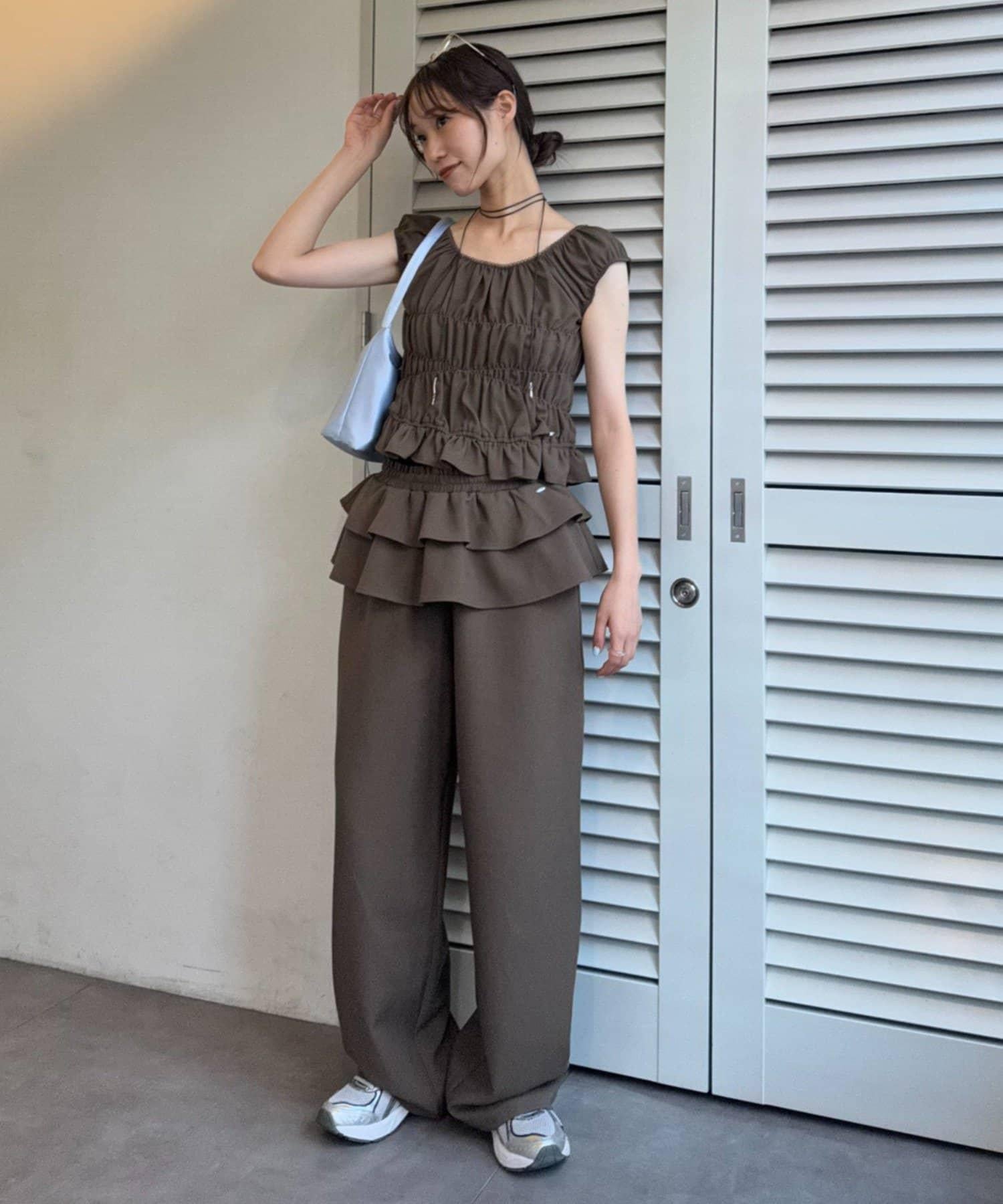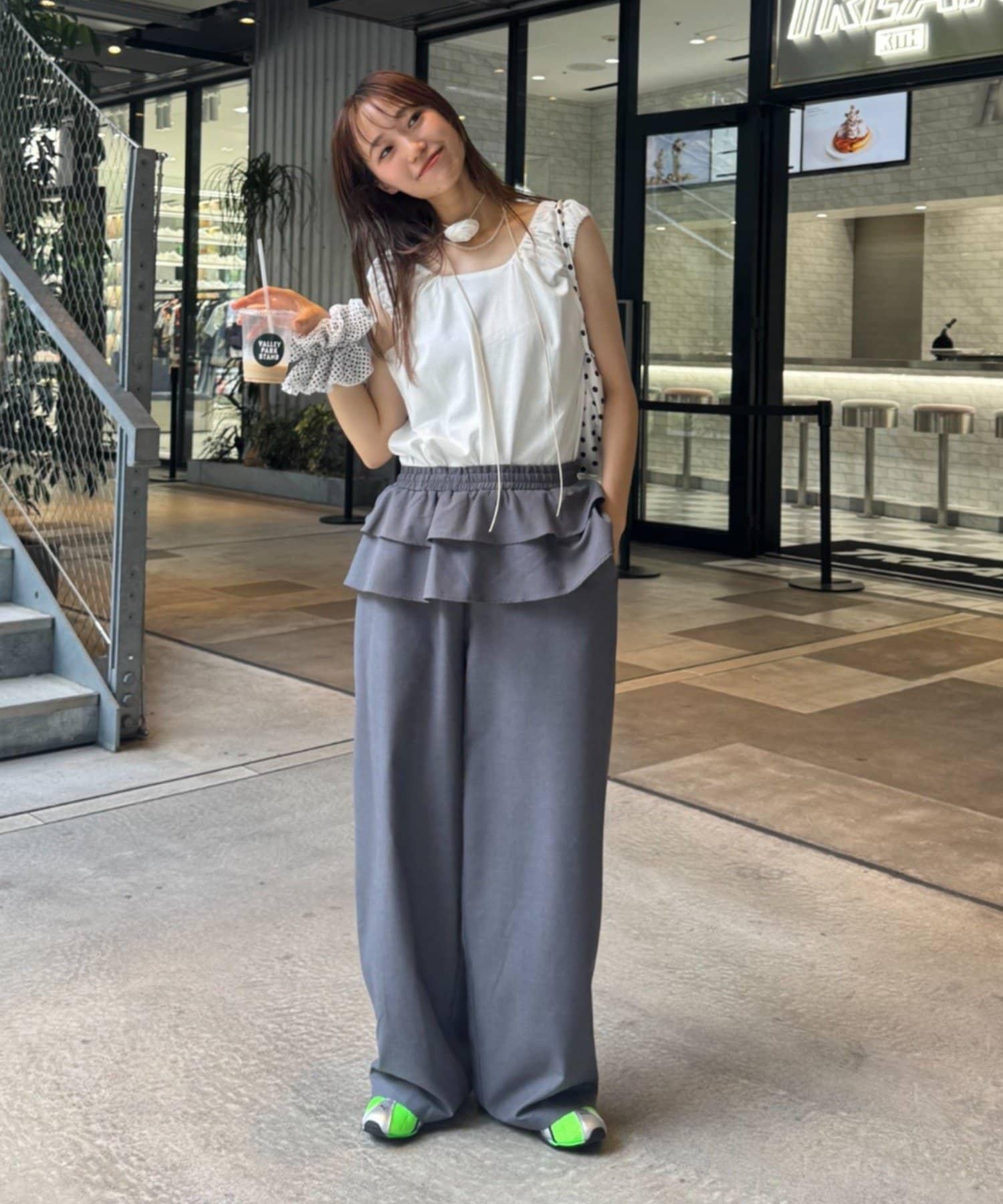 褶皺設計的褲子乍一看很簡單,但只要穿上就會給人一種精緻的感覺。
