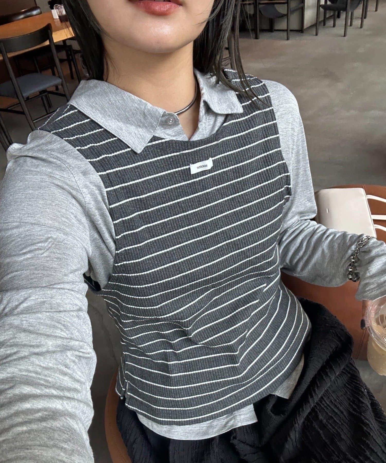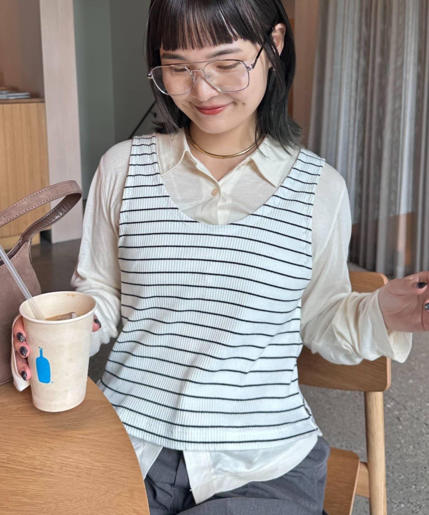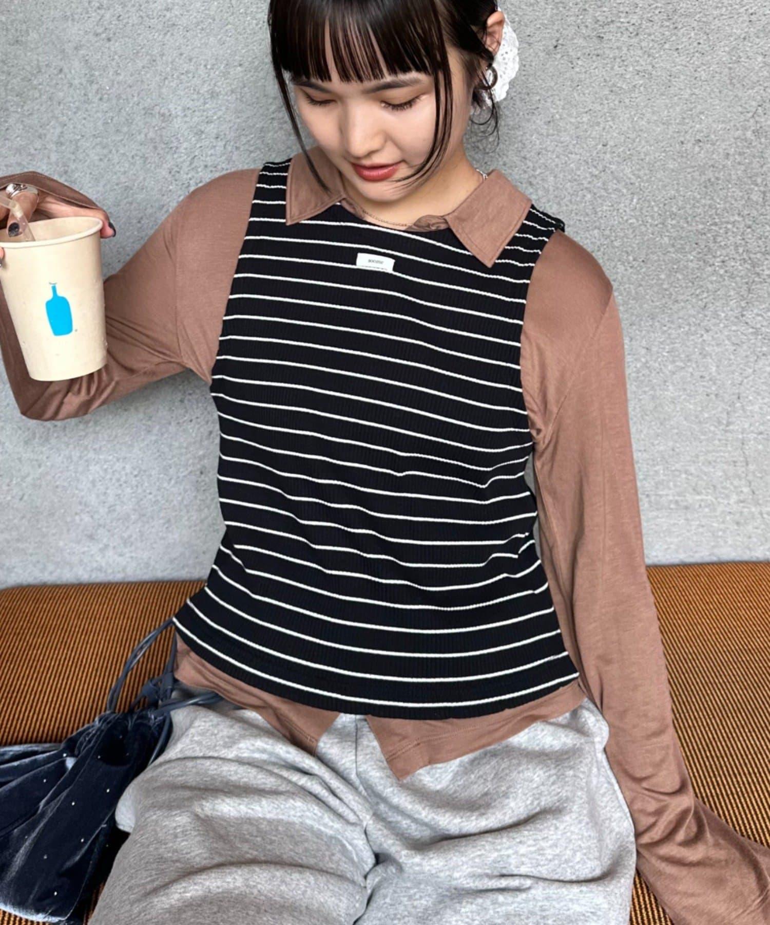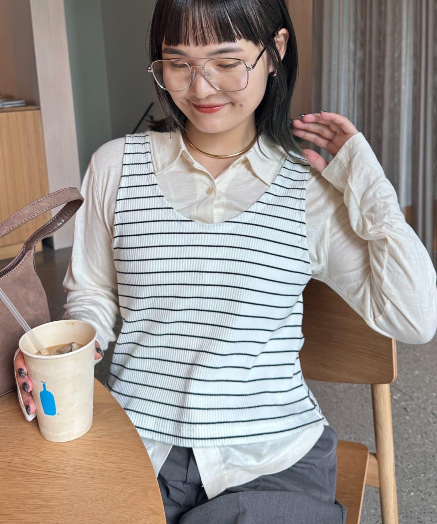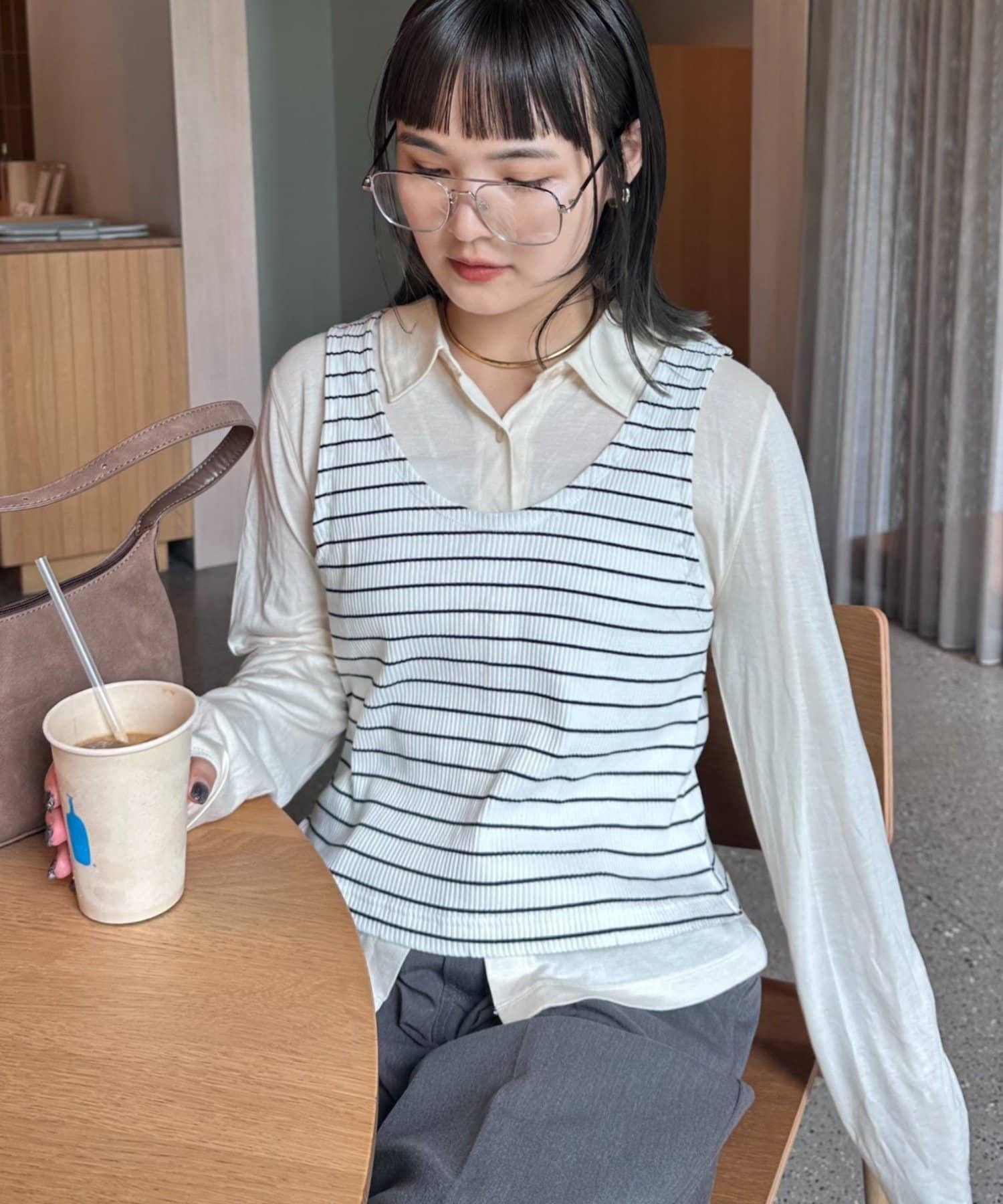 【CIAOPANIC TYPY】條紋背心疊穿翻領透視剪裁襯衫