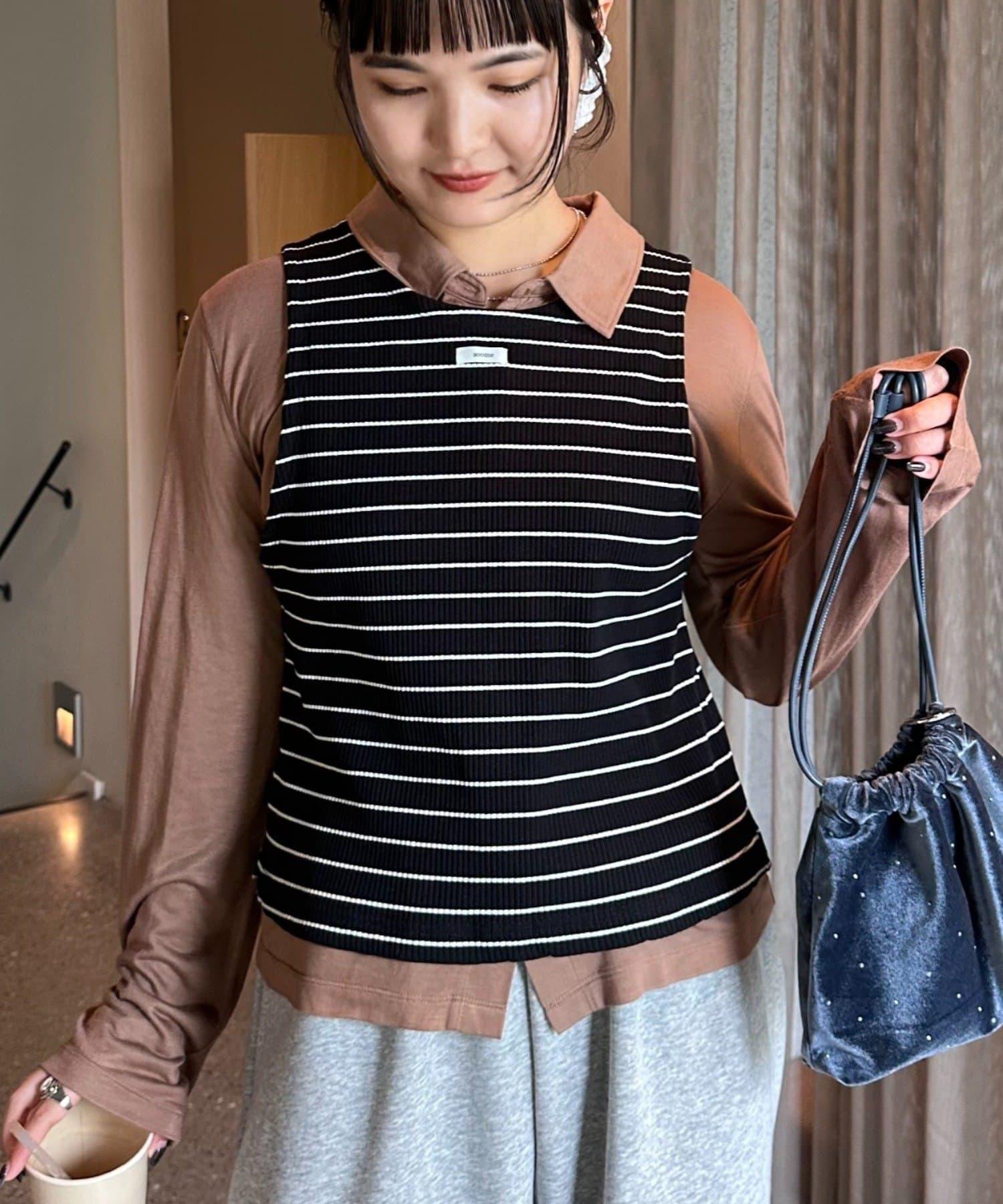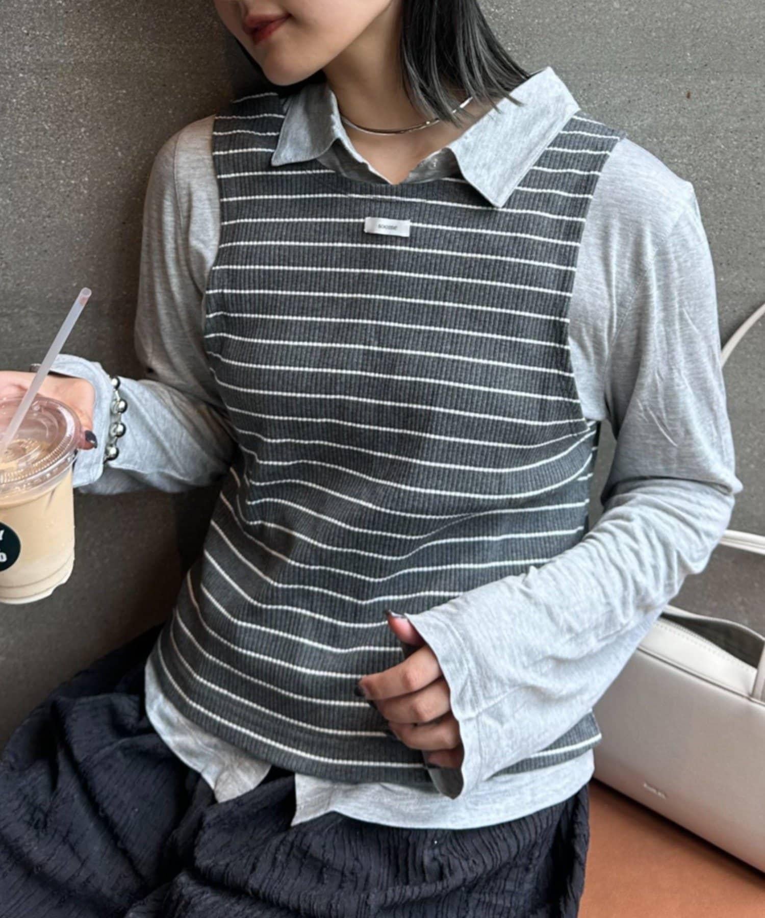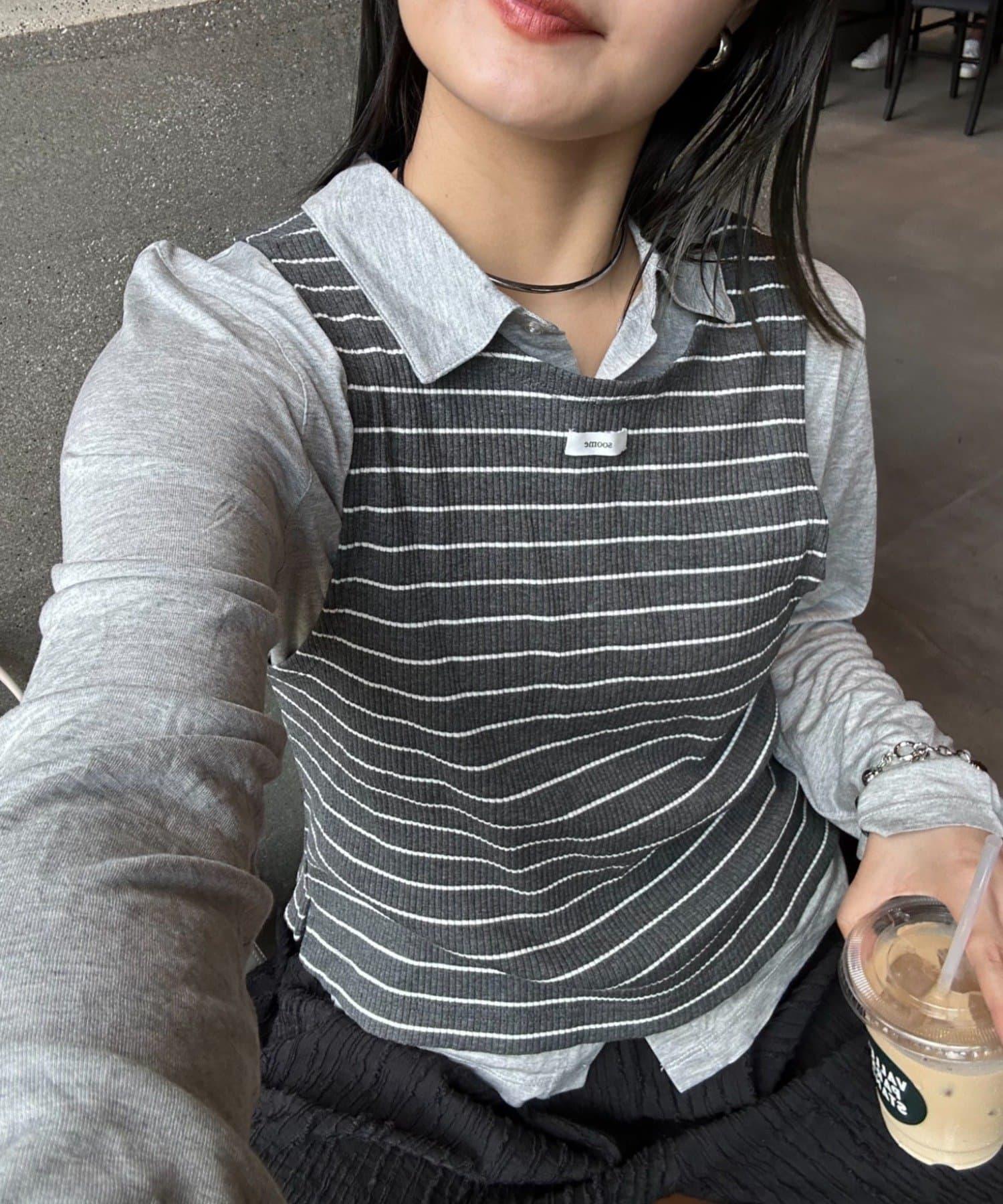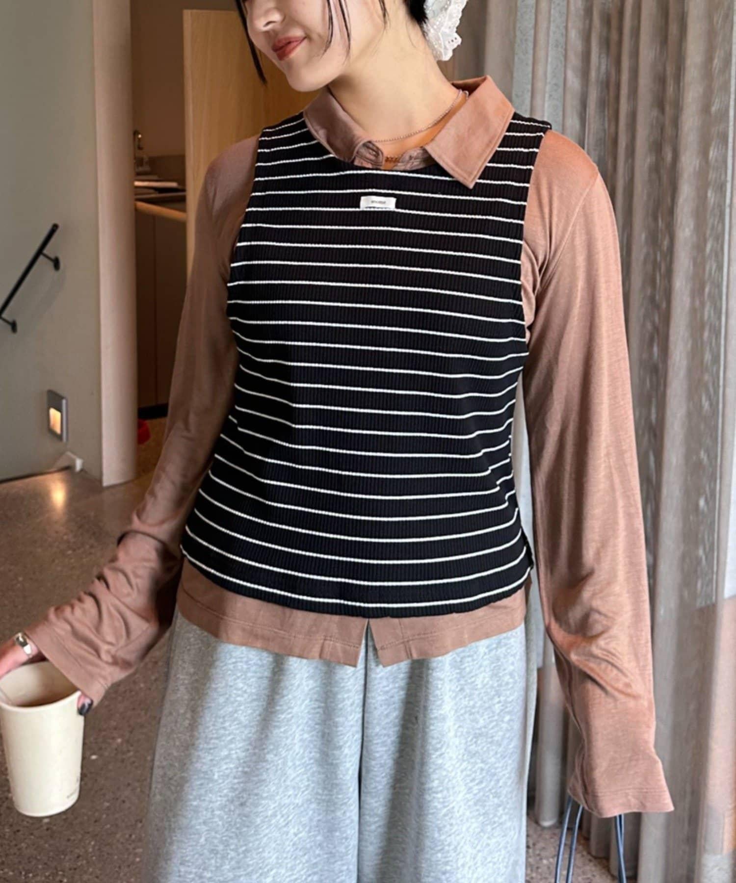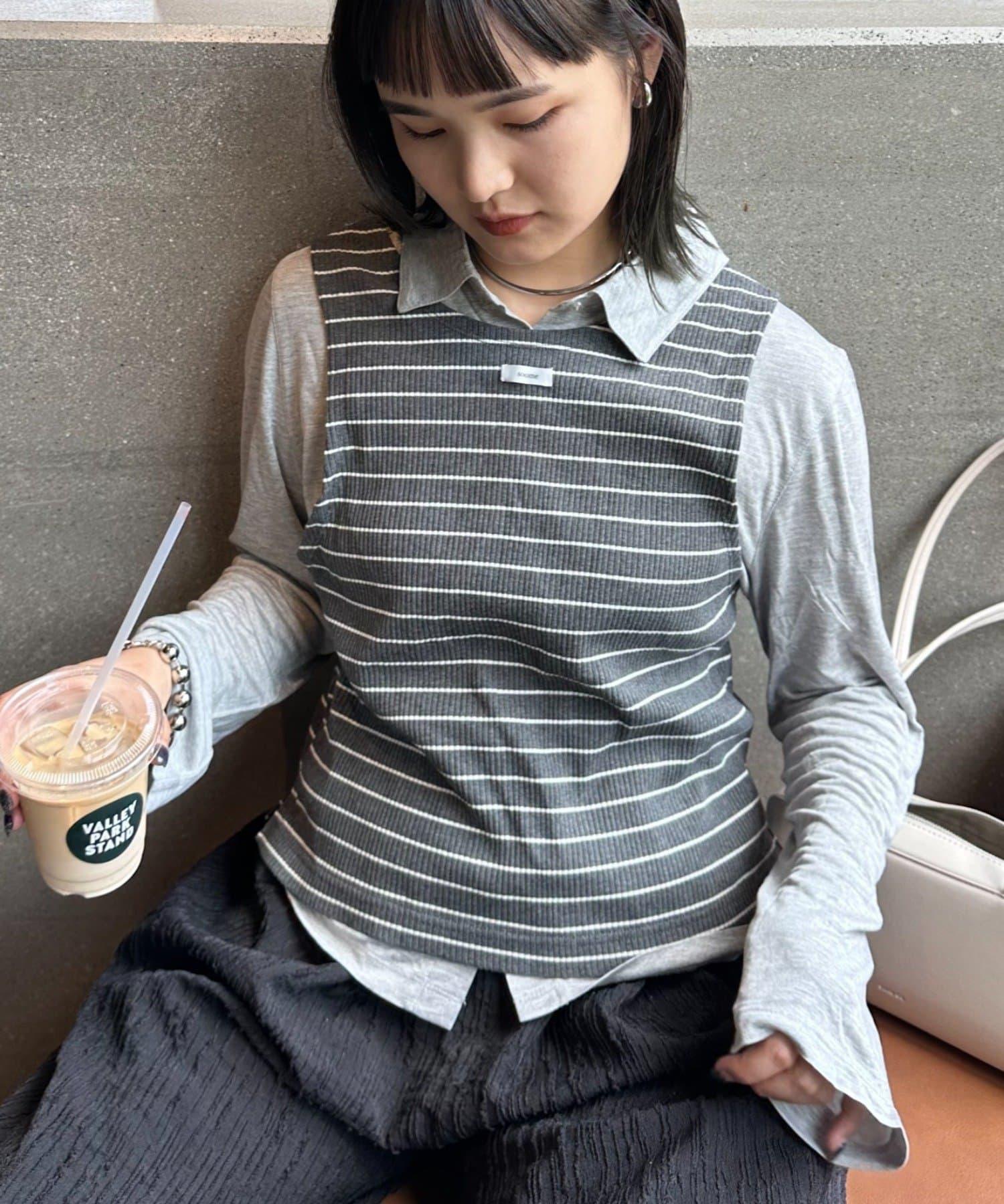 【CIAOPANIC TYPY】條紋背心疊穿翻領透視剪裁襯衫