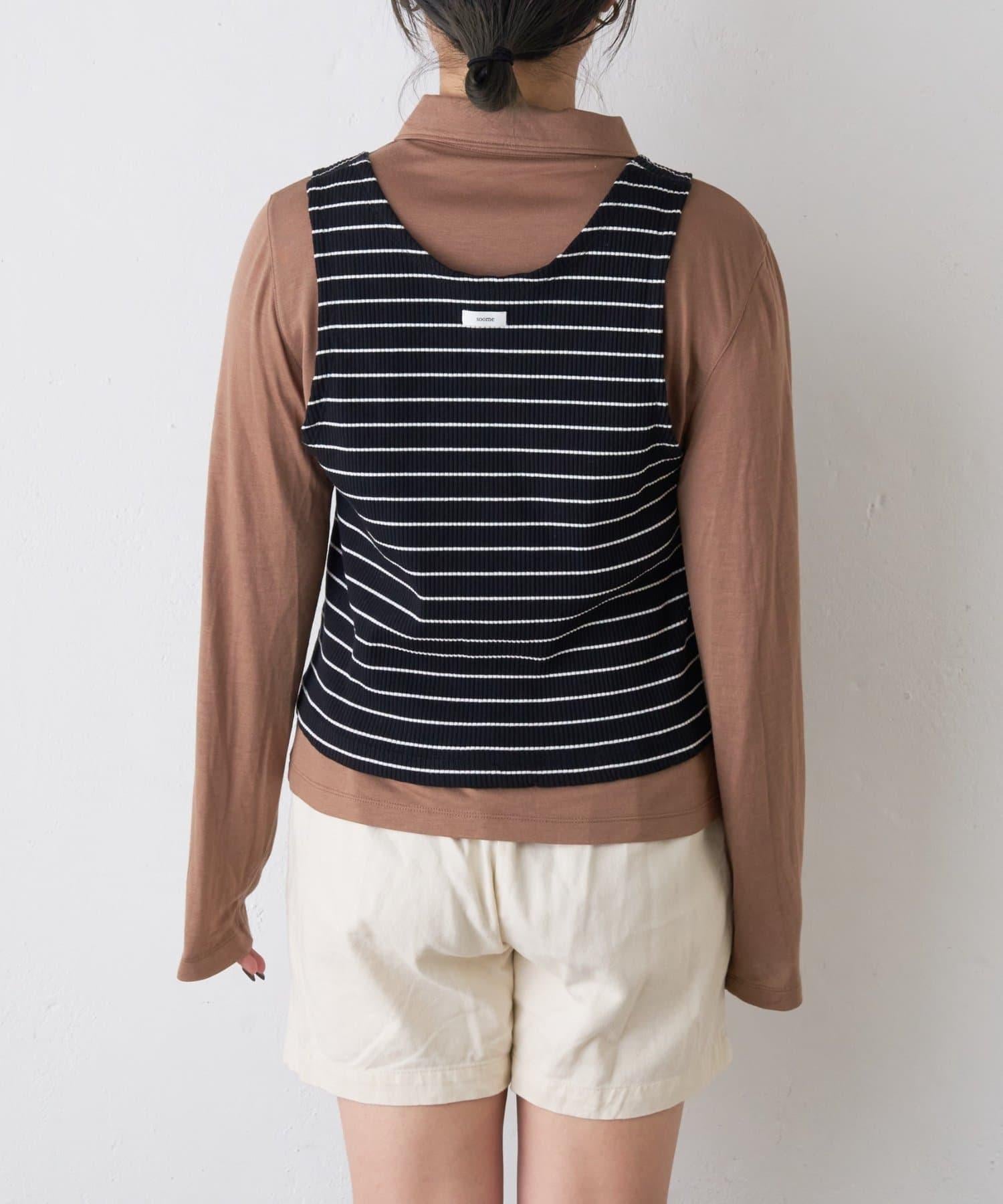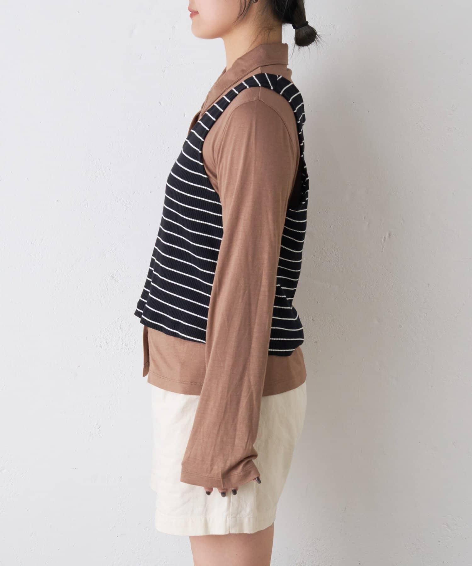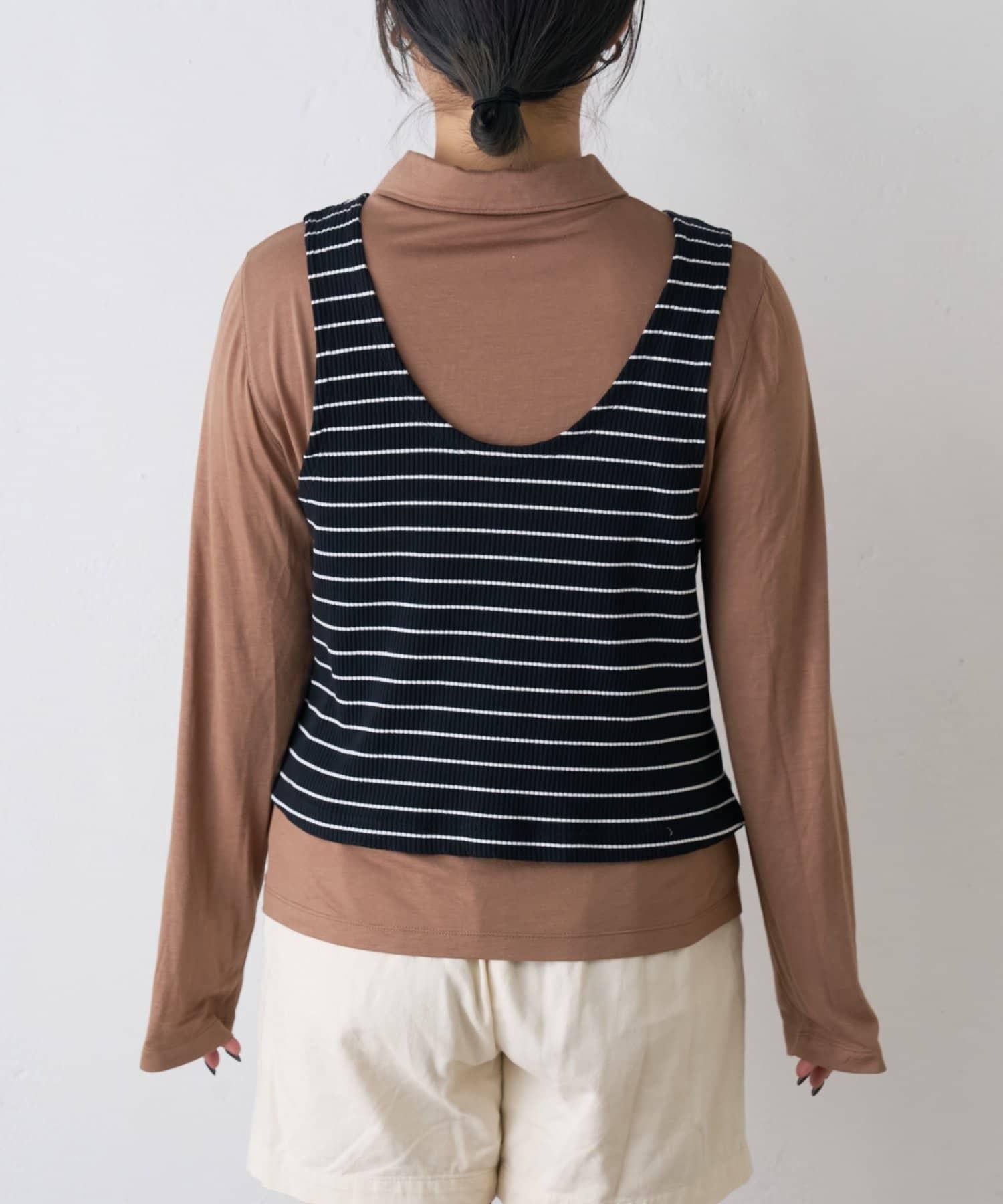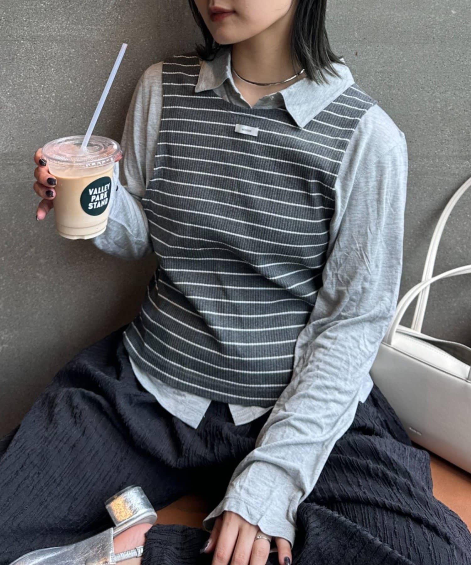 【CIAOPANIC TYPY】條紋背心疊穿翻領透視剪裁襯衫