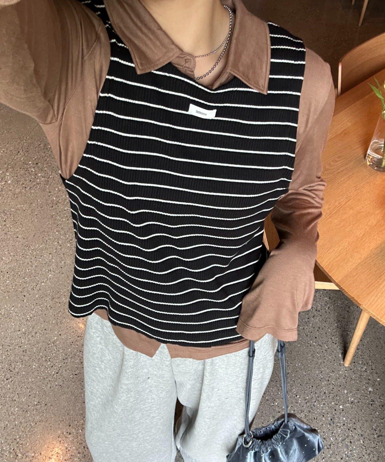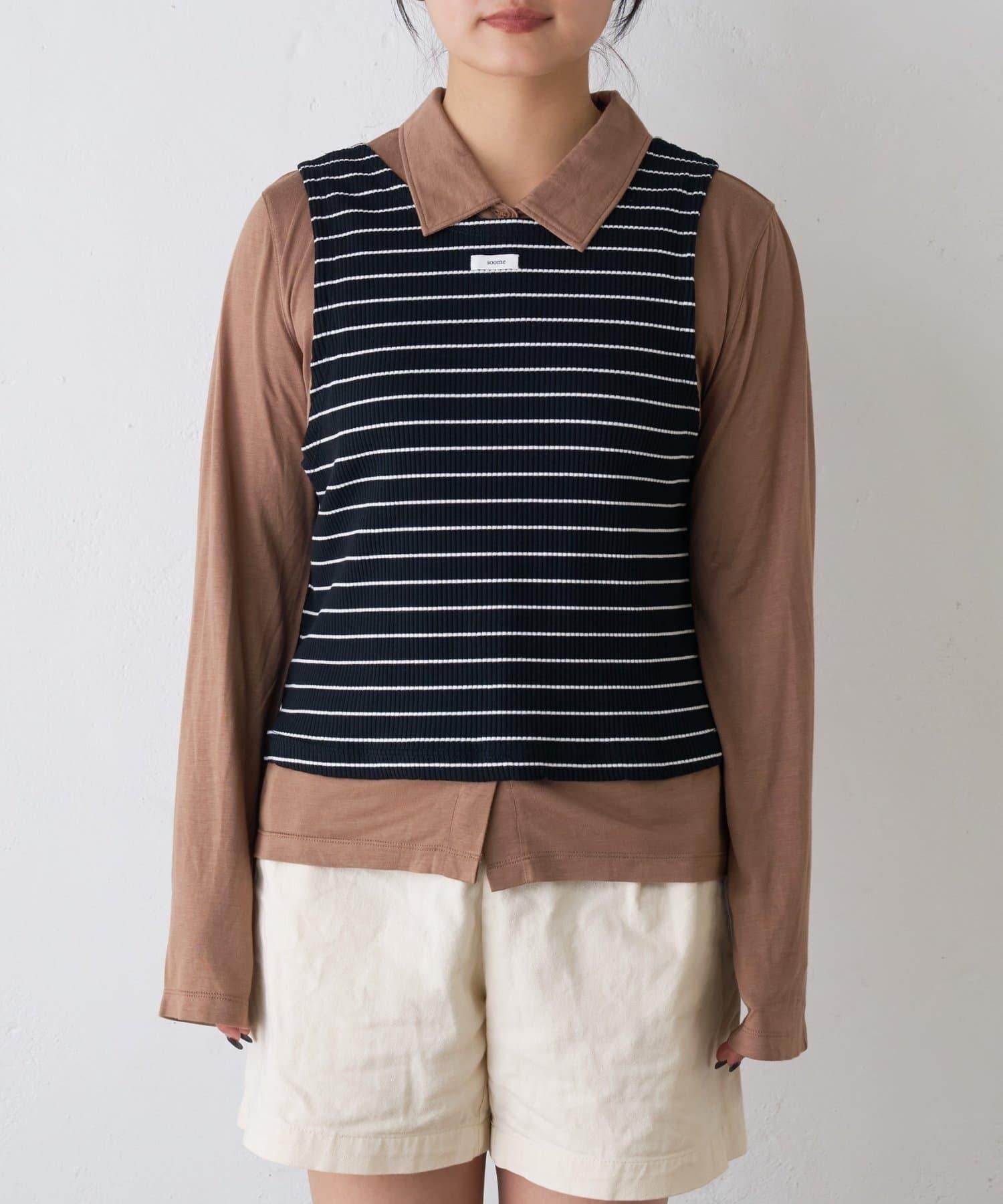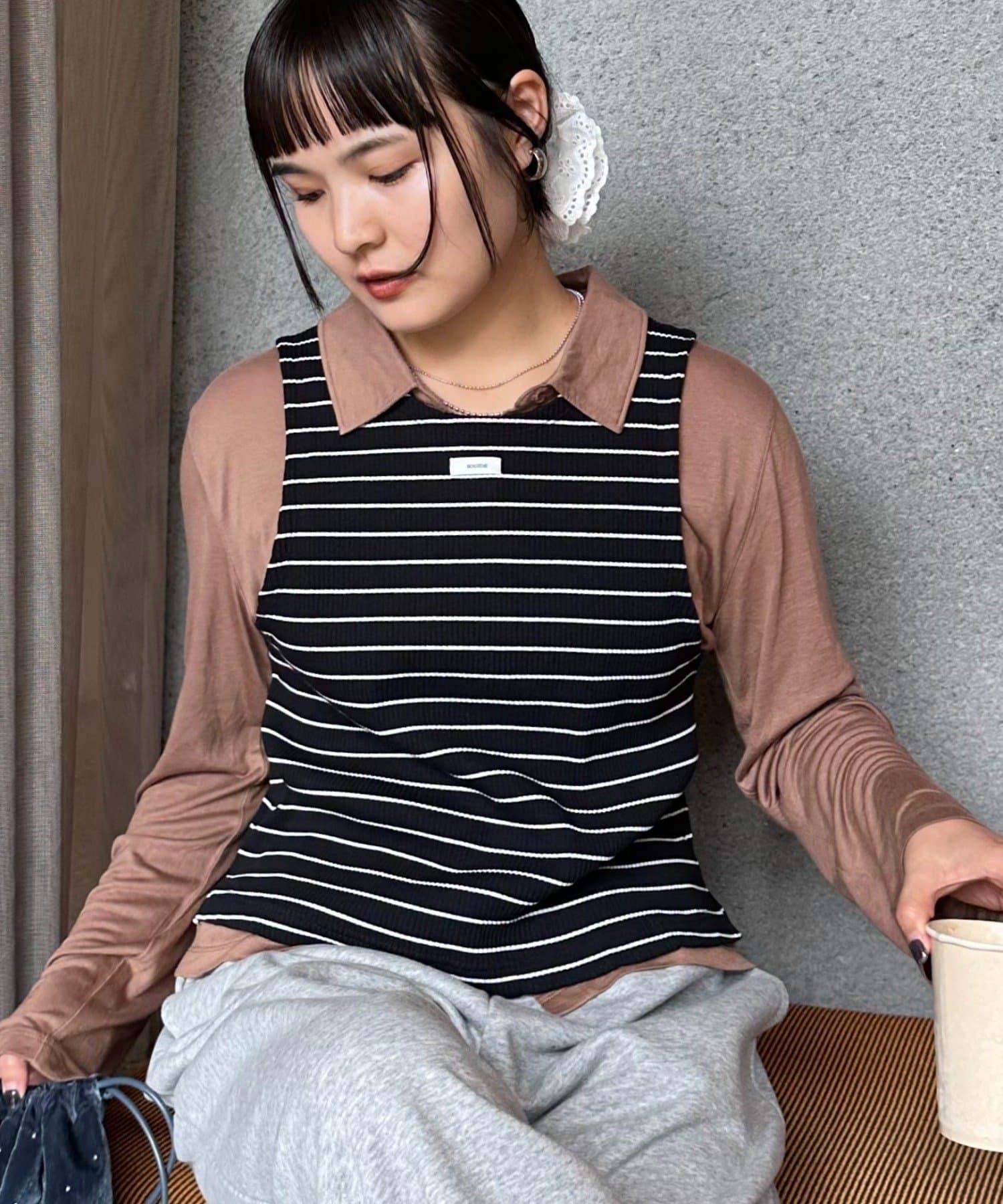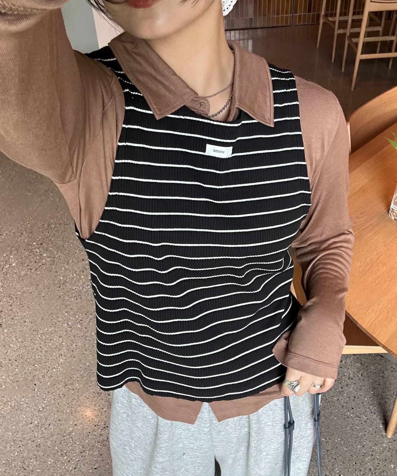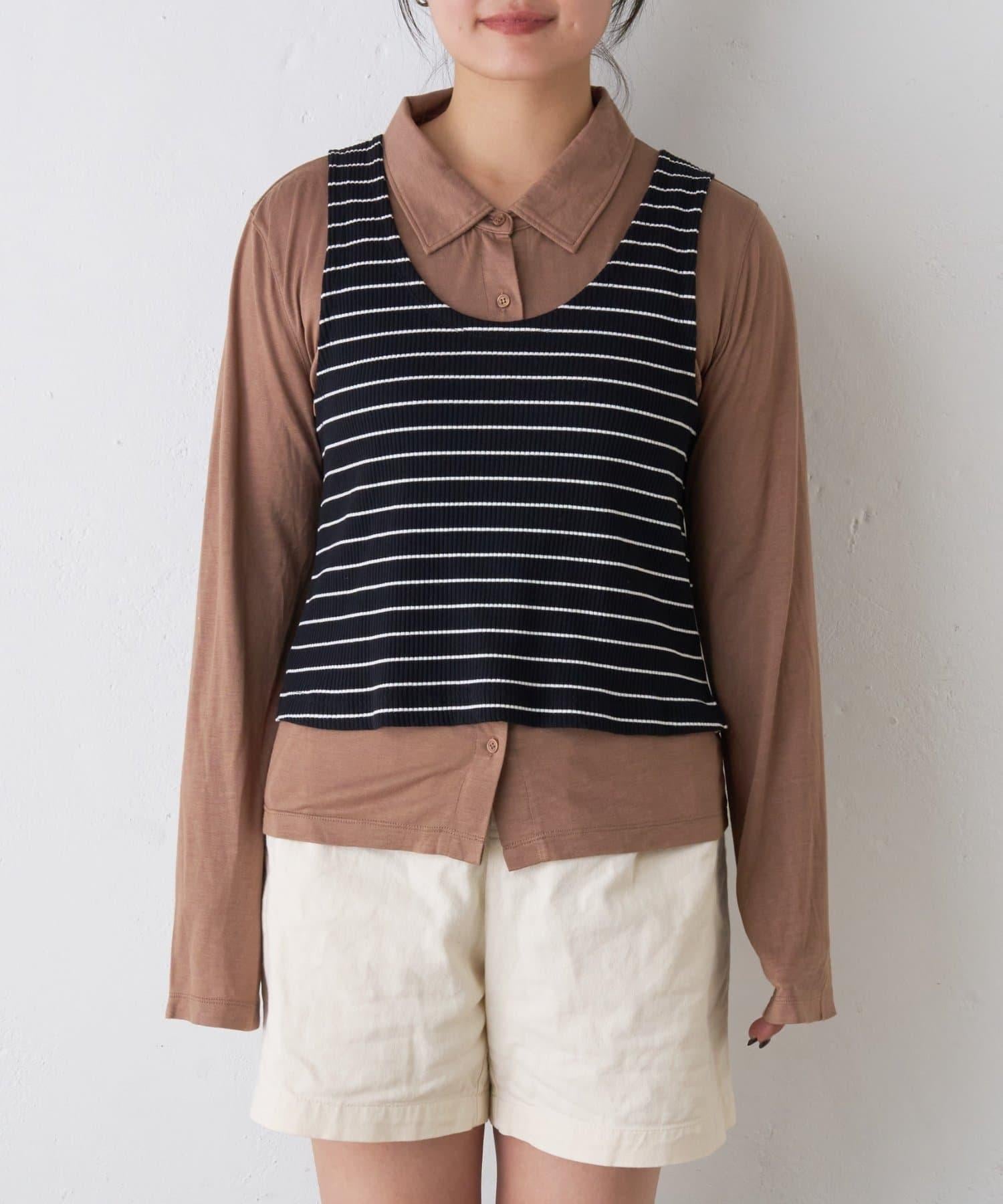 【CIAOPANIC TYPY】條紋背心疊穿翻領透視剪裁襯衫