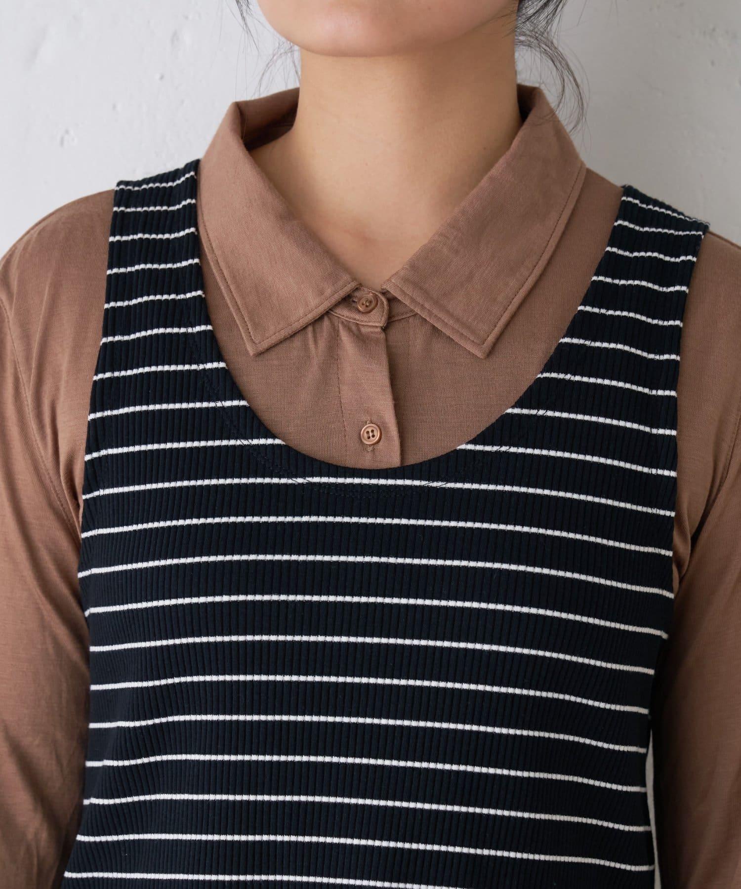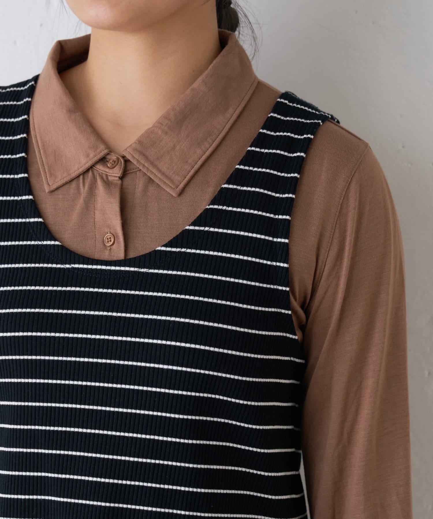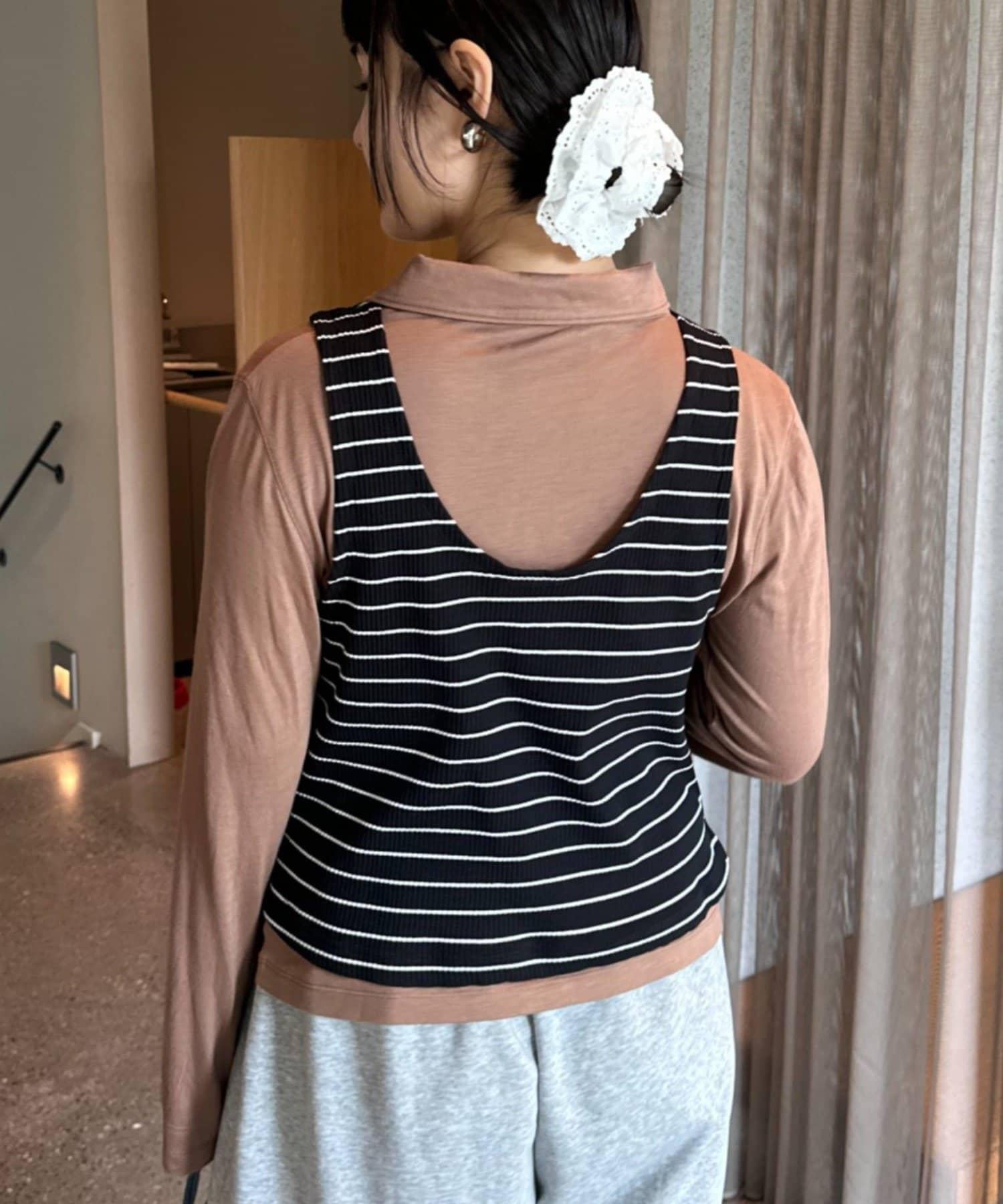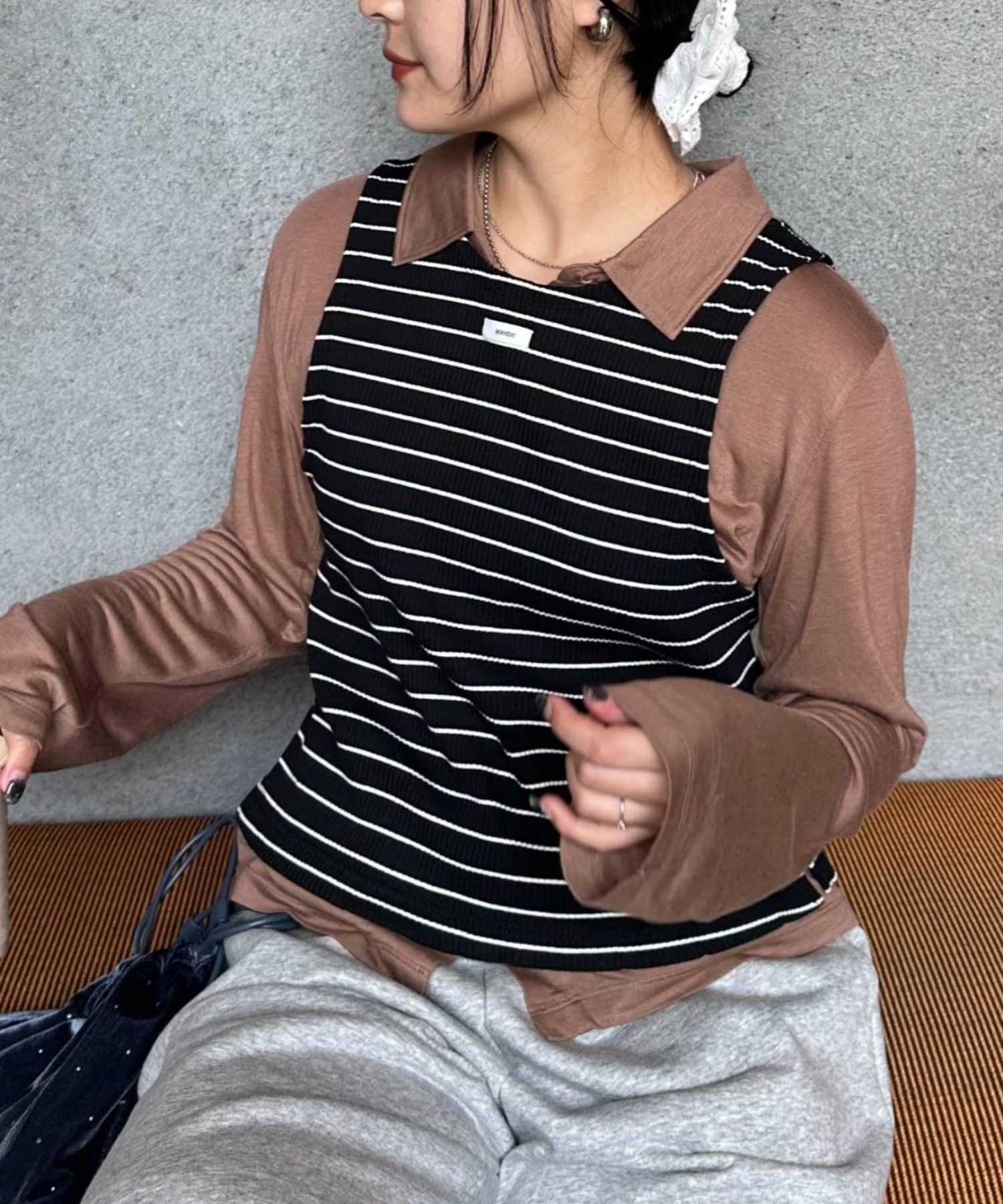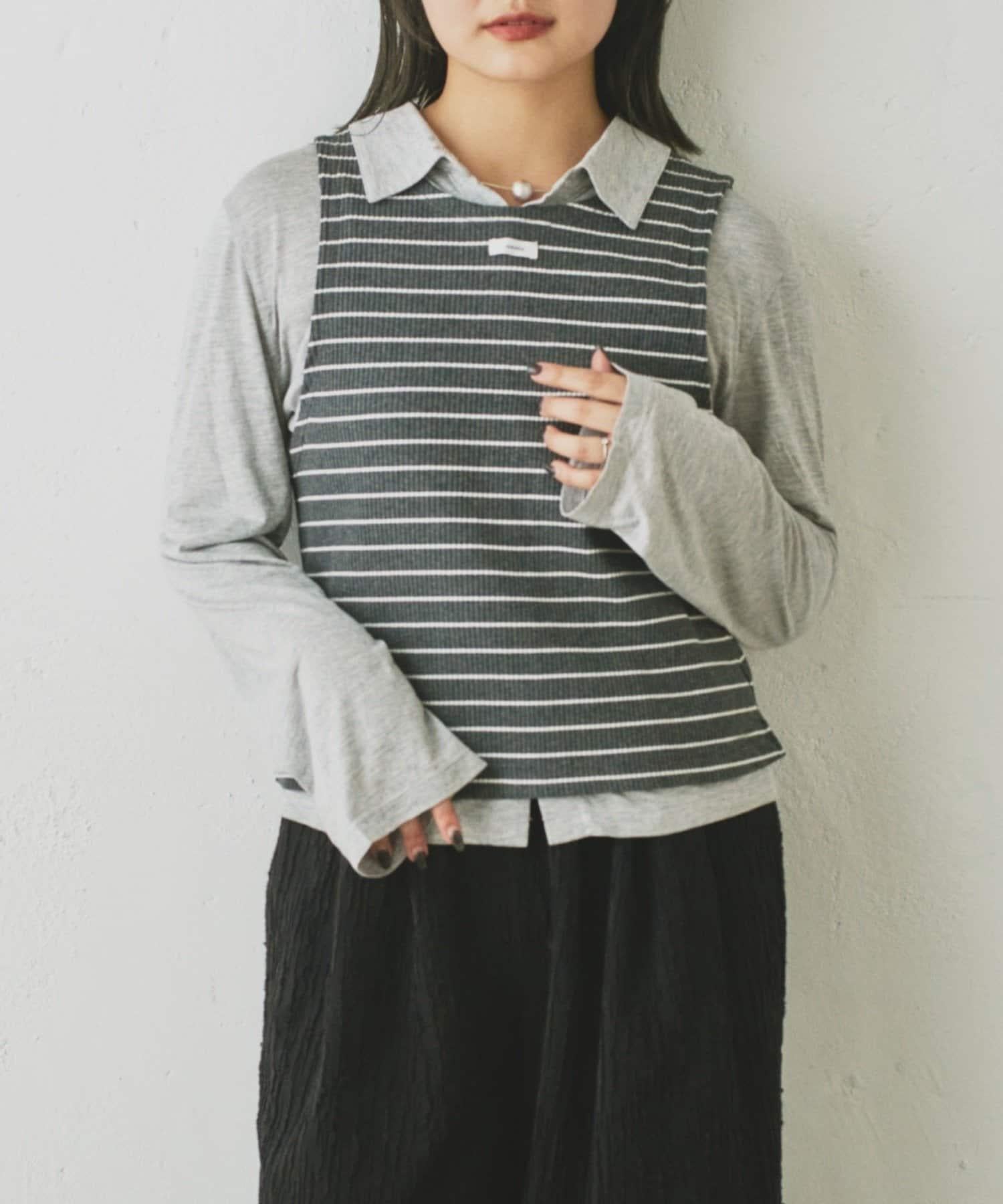 【CIAOPANIC TYPY】條紋背心疊穿翻領透視剪裁襯衫
