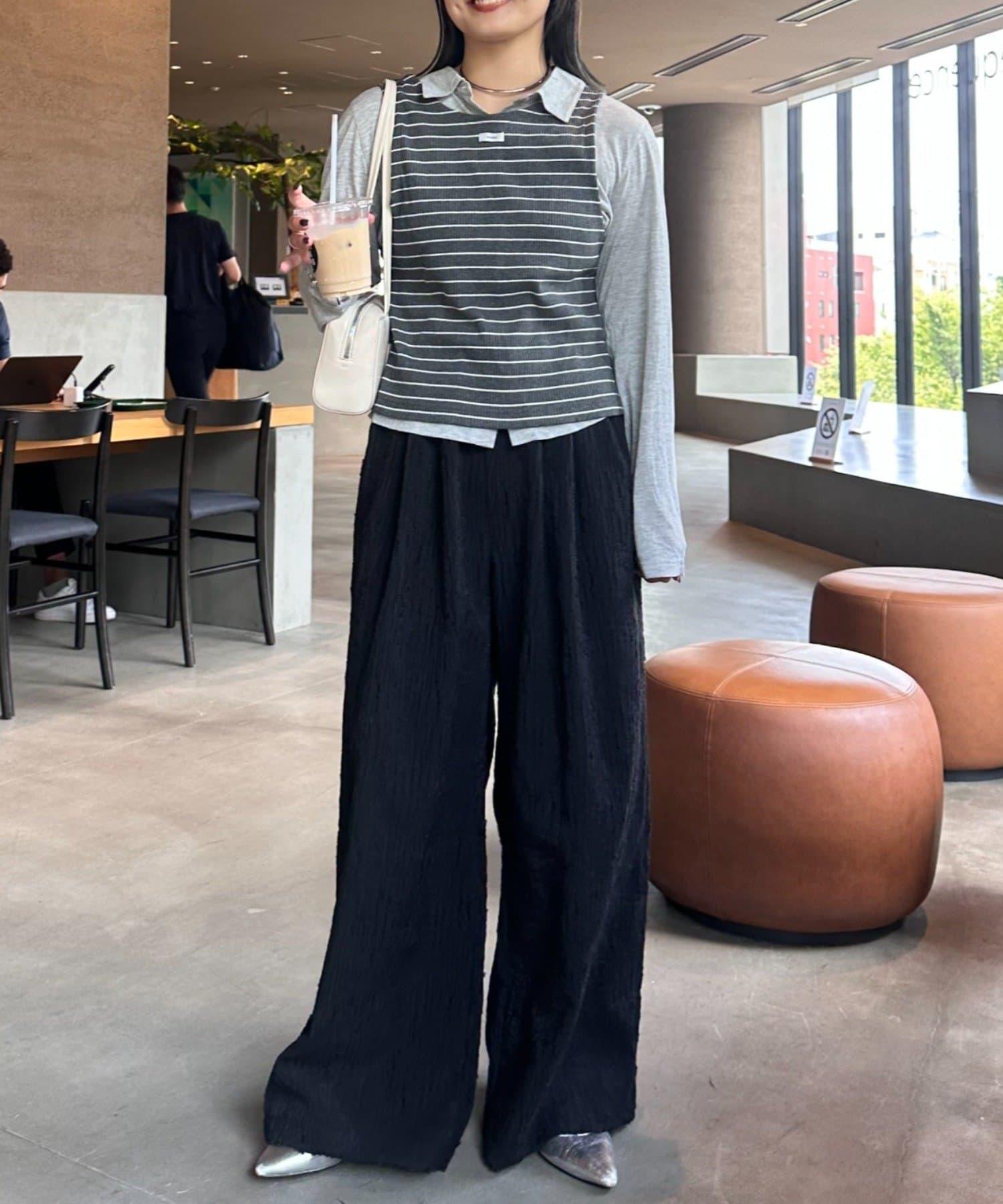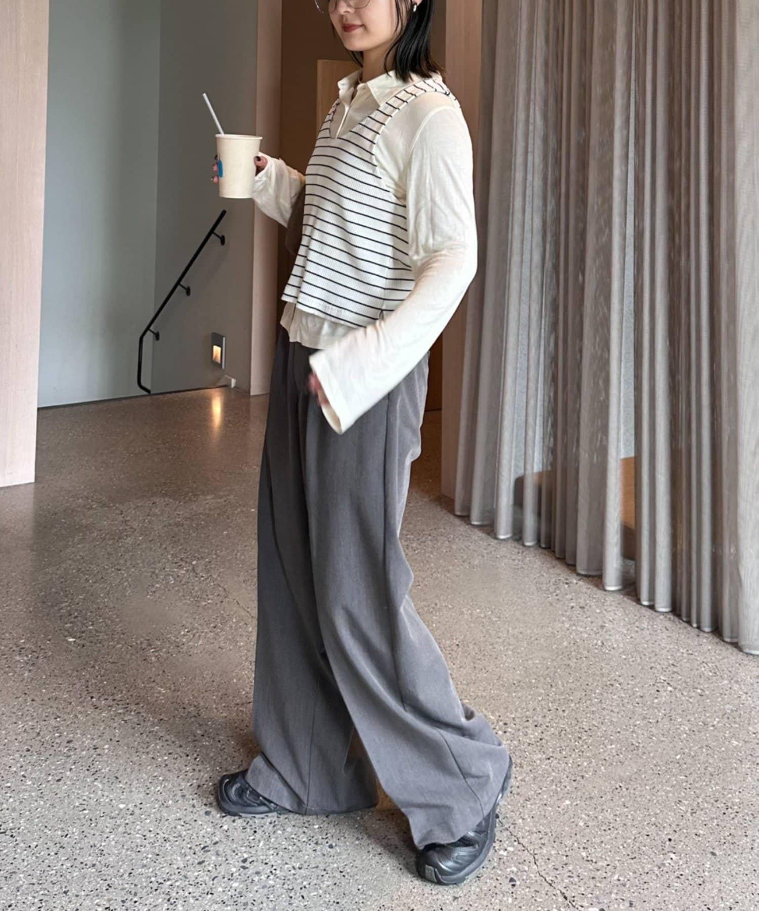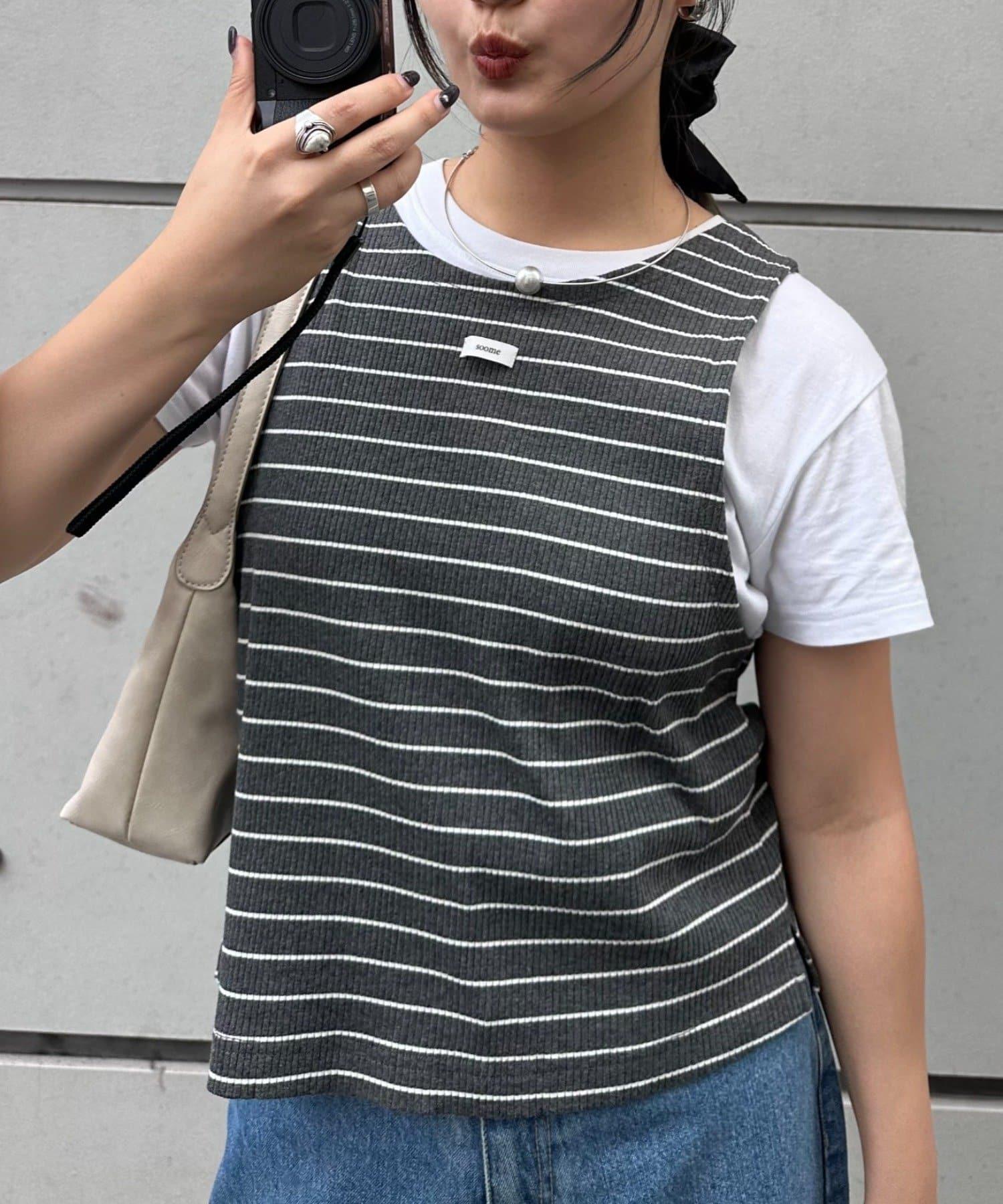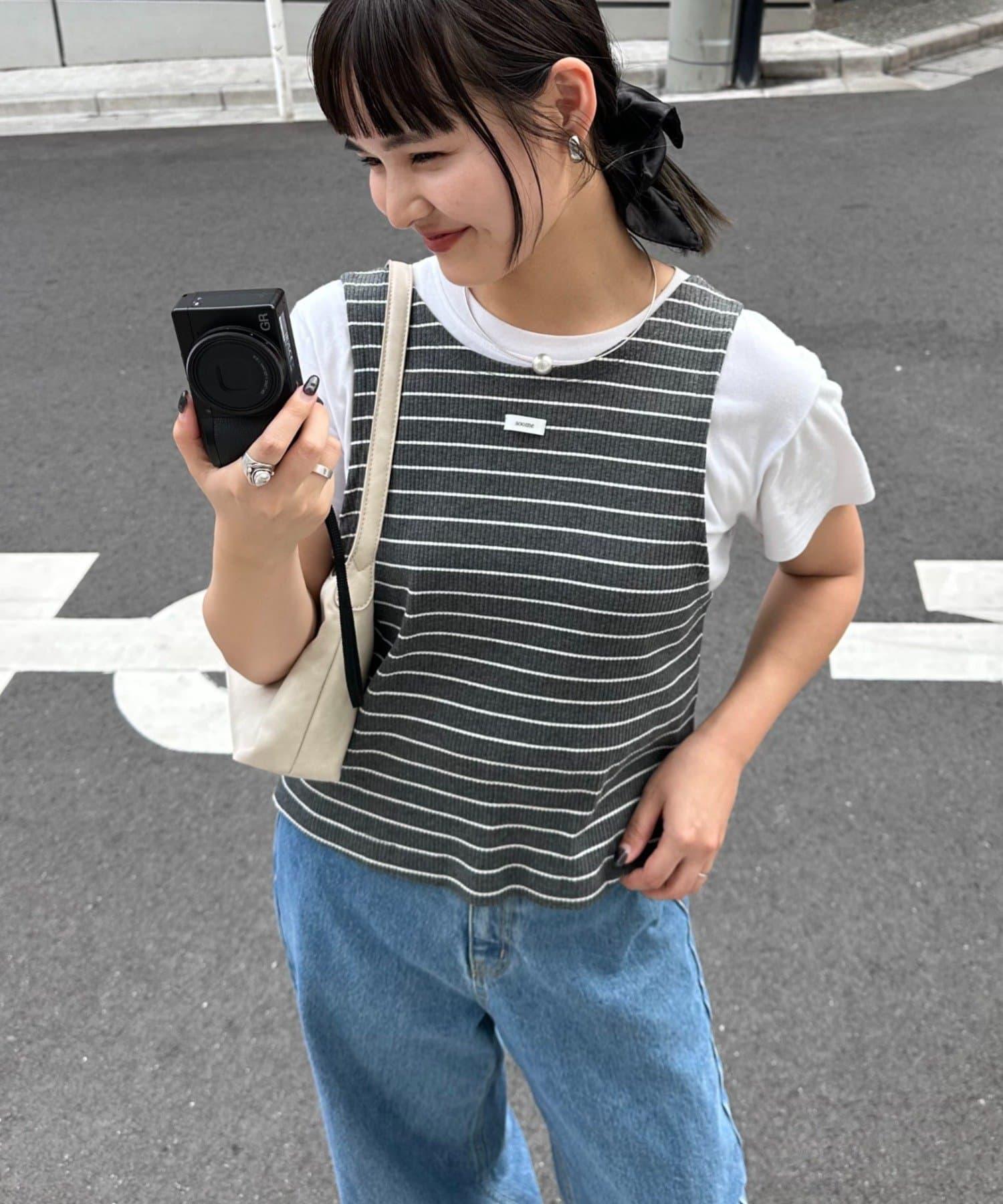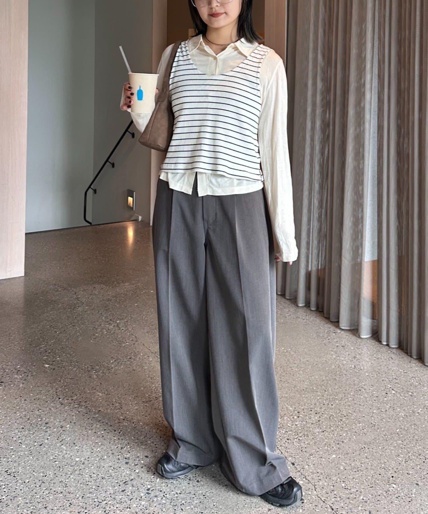 【CIAOPANIC TYPY】條紋背心疊穿翻領透視剪裁襯衫