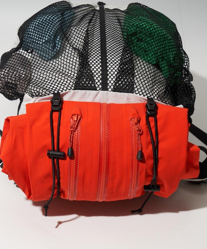 揹包採用鹽收縮 CODURA 100D 面料,質地如紙。