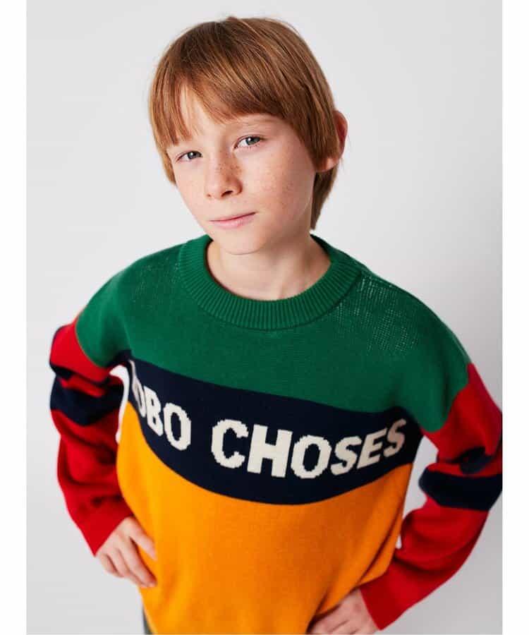 BOBO CHOSES 的[拼色毛衣[兒童]]是一款舒適的單品,其設計表達了獨特的世界觀,並採用了舒適的材料。