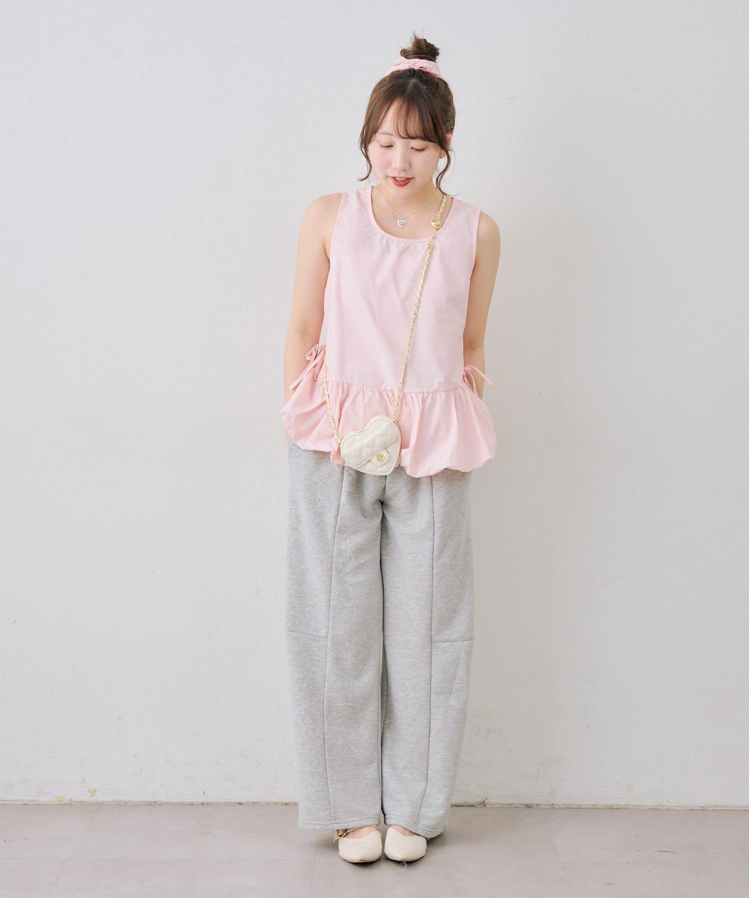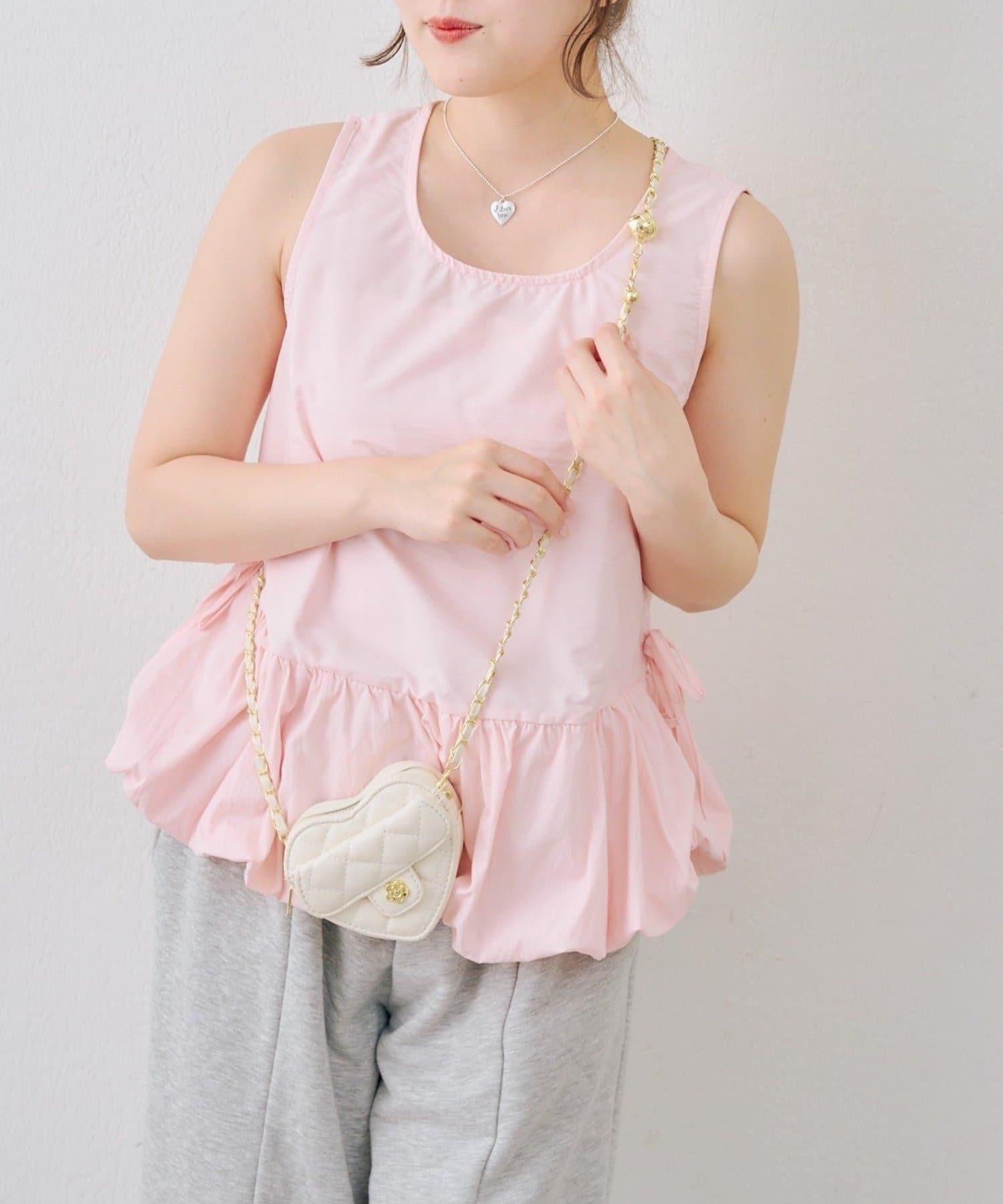 頸部的絲帶和下襬的蓬蓬裙設計為這款無袖上衣增添了微妙的甜美氣息。