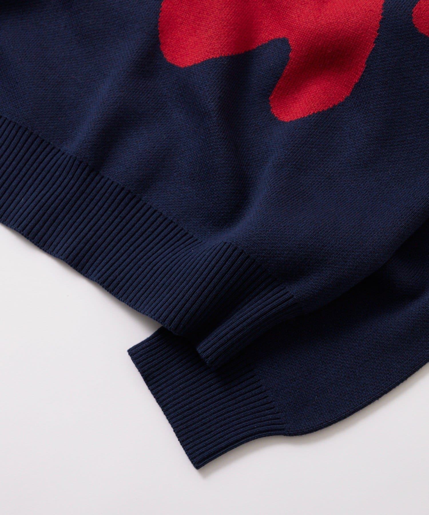 這款針織衫也適合休閒穿著,有點模式化。徽標提花針織衫用途廣泛。