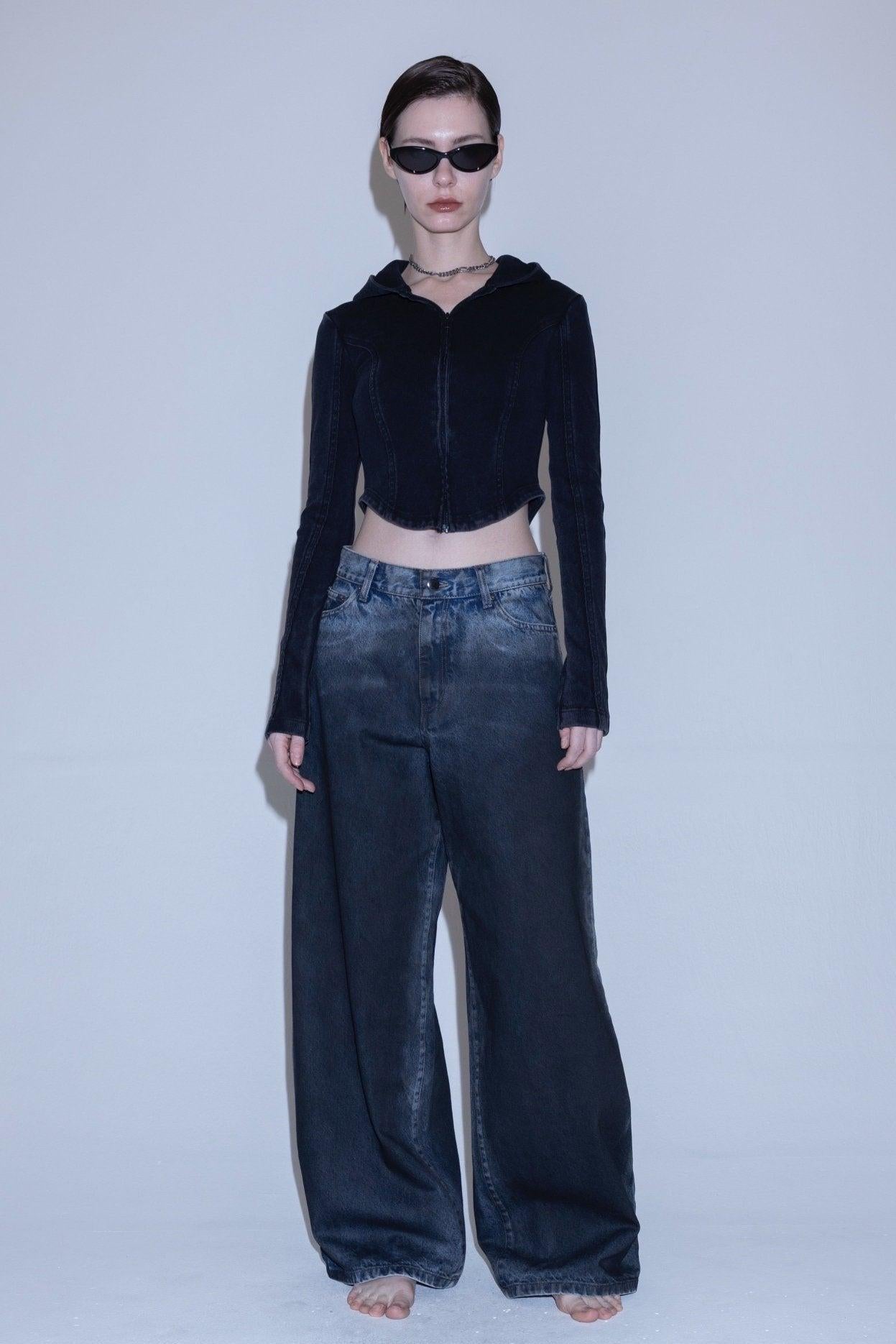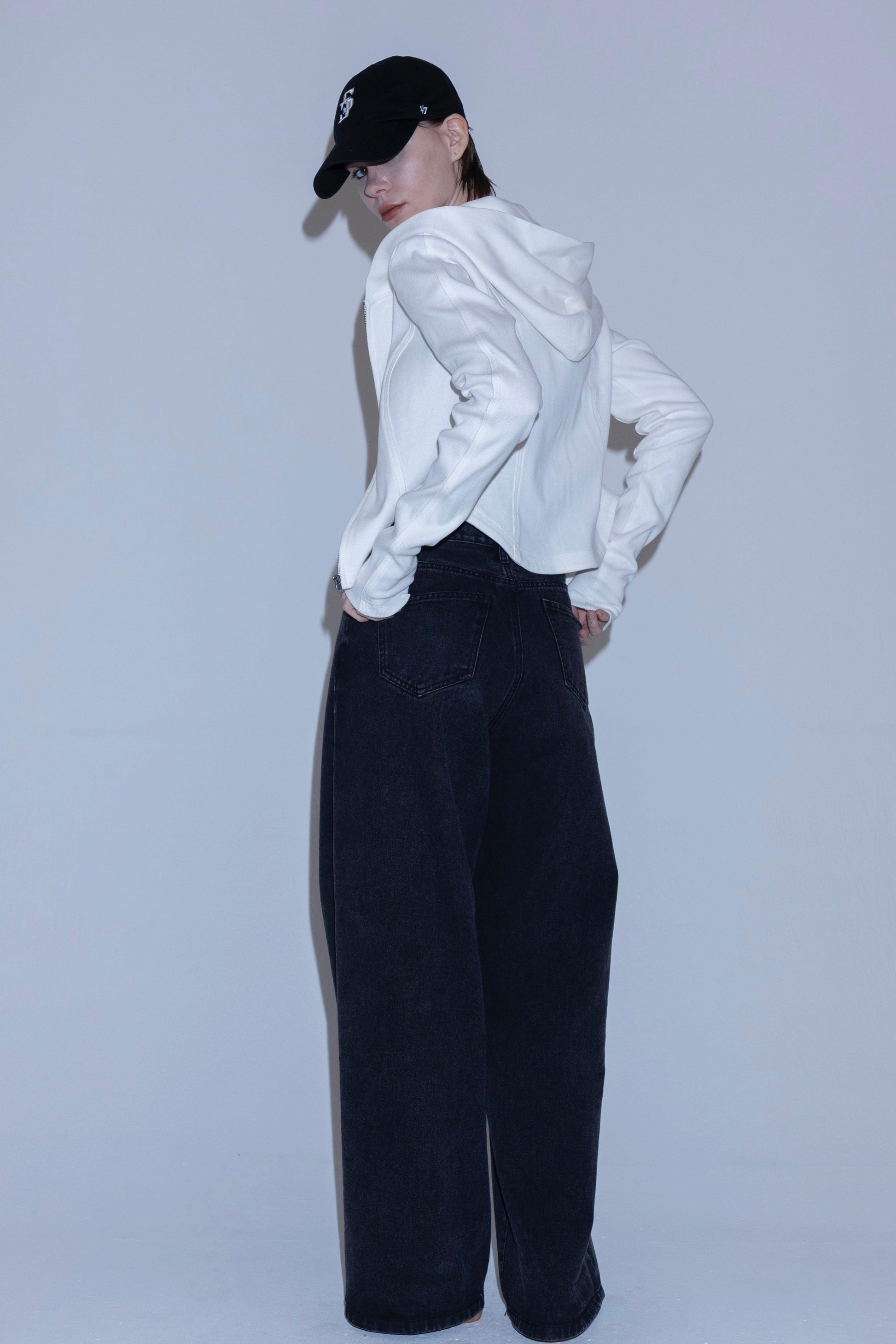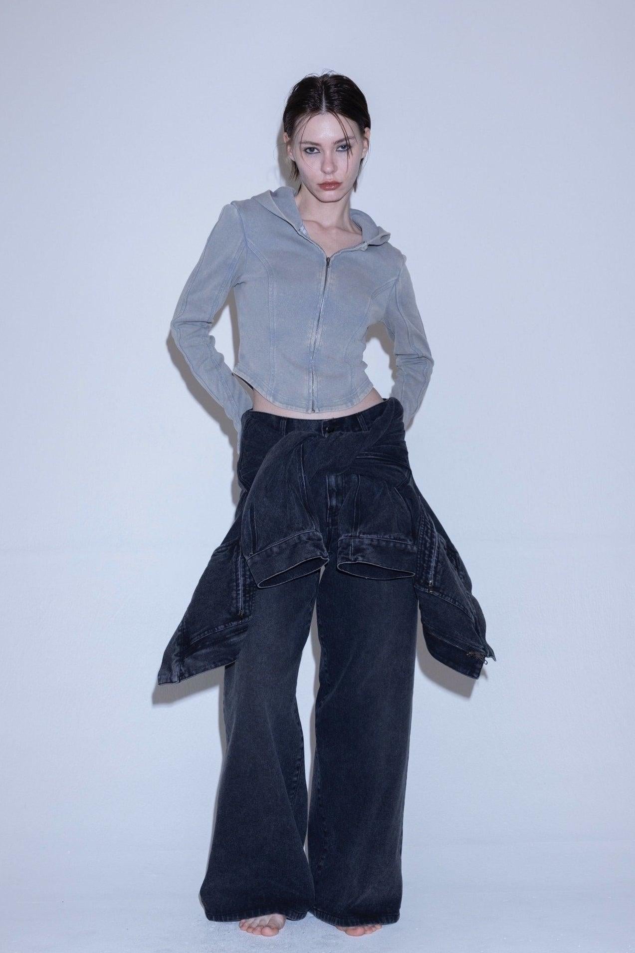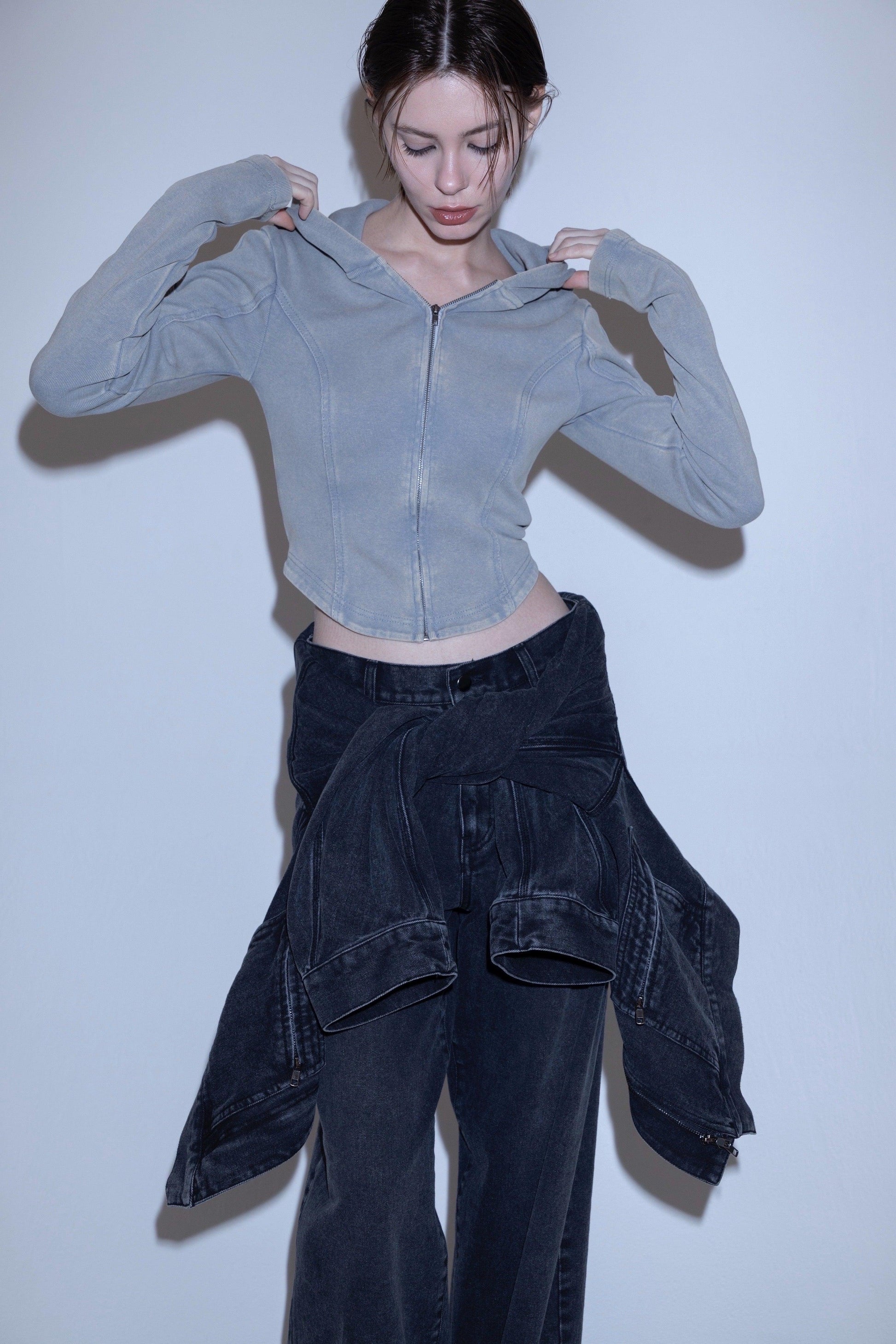 這款單品有多種款式可供選擇,如拉鍊打開露出內襯的多層款式,或拉鍊閉合作為上衣穿著。