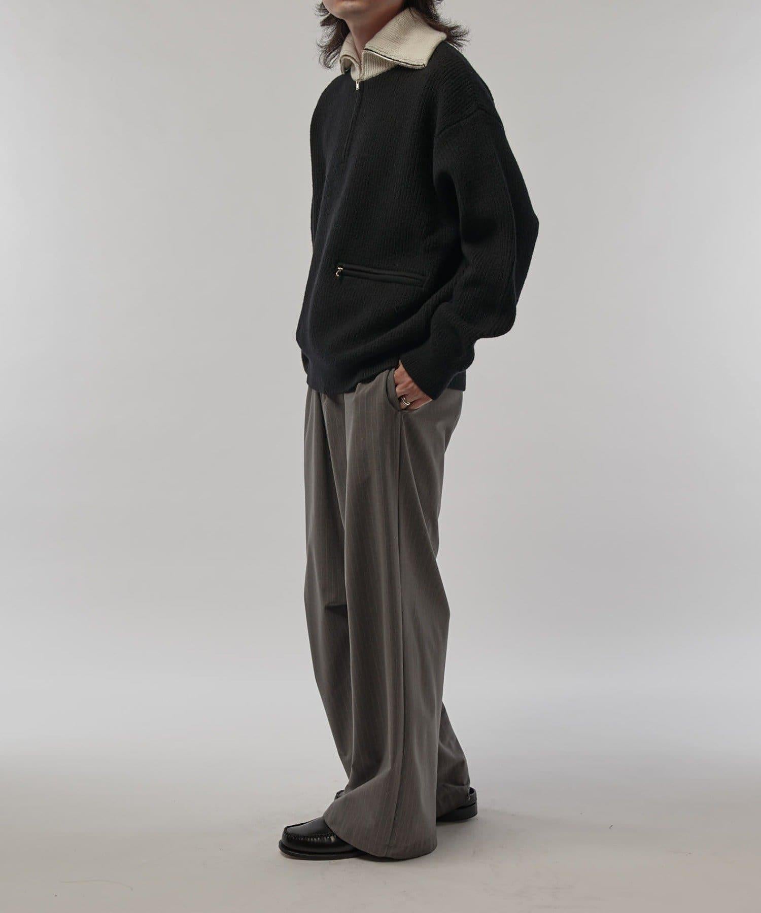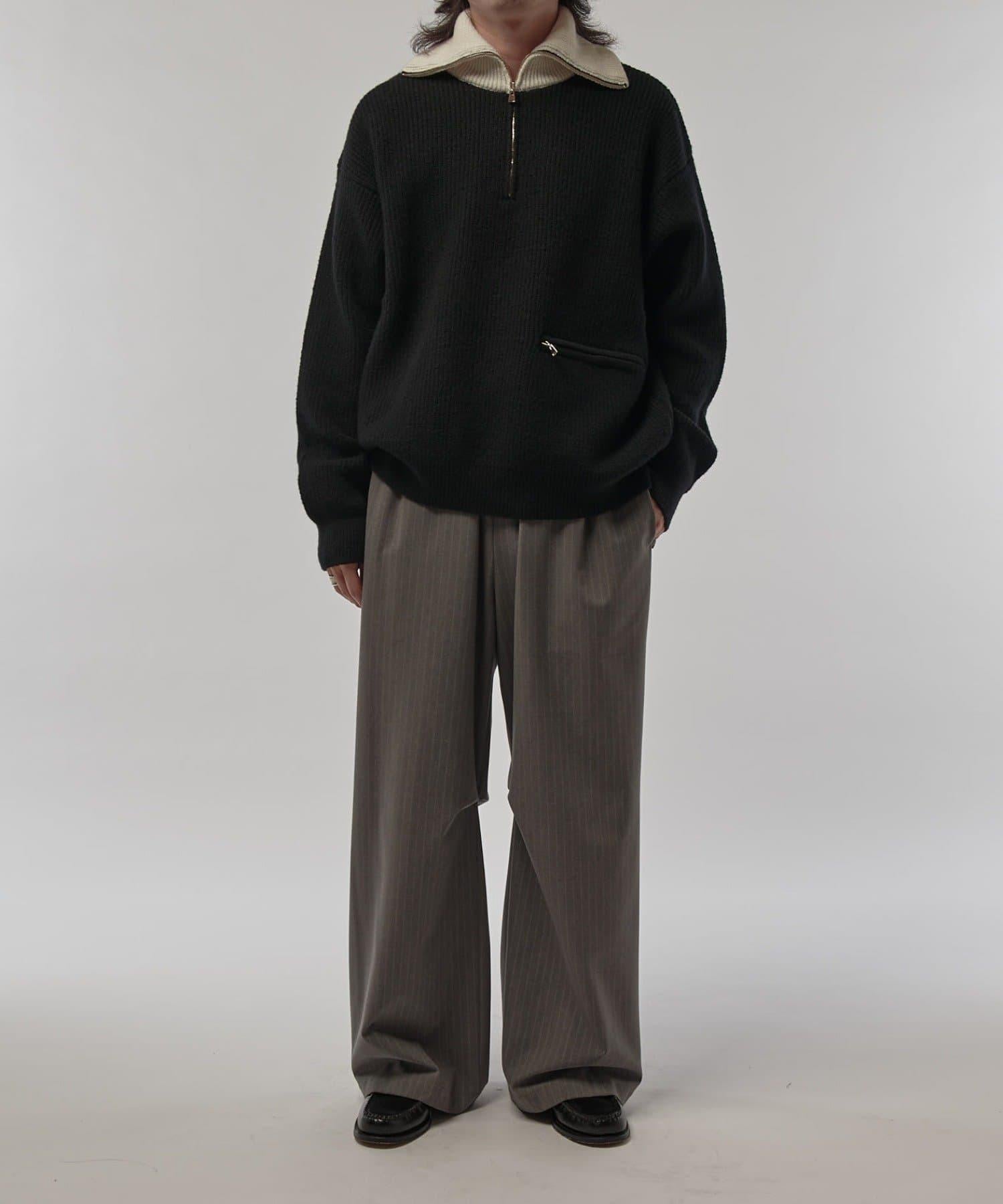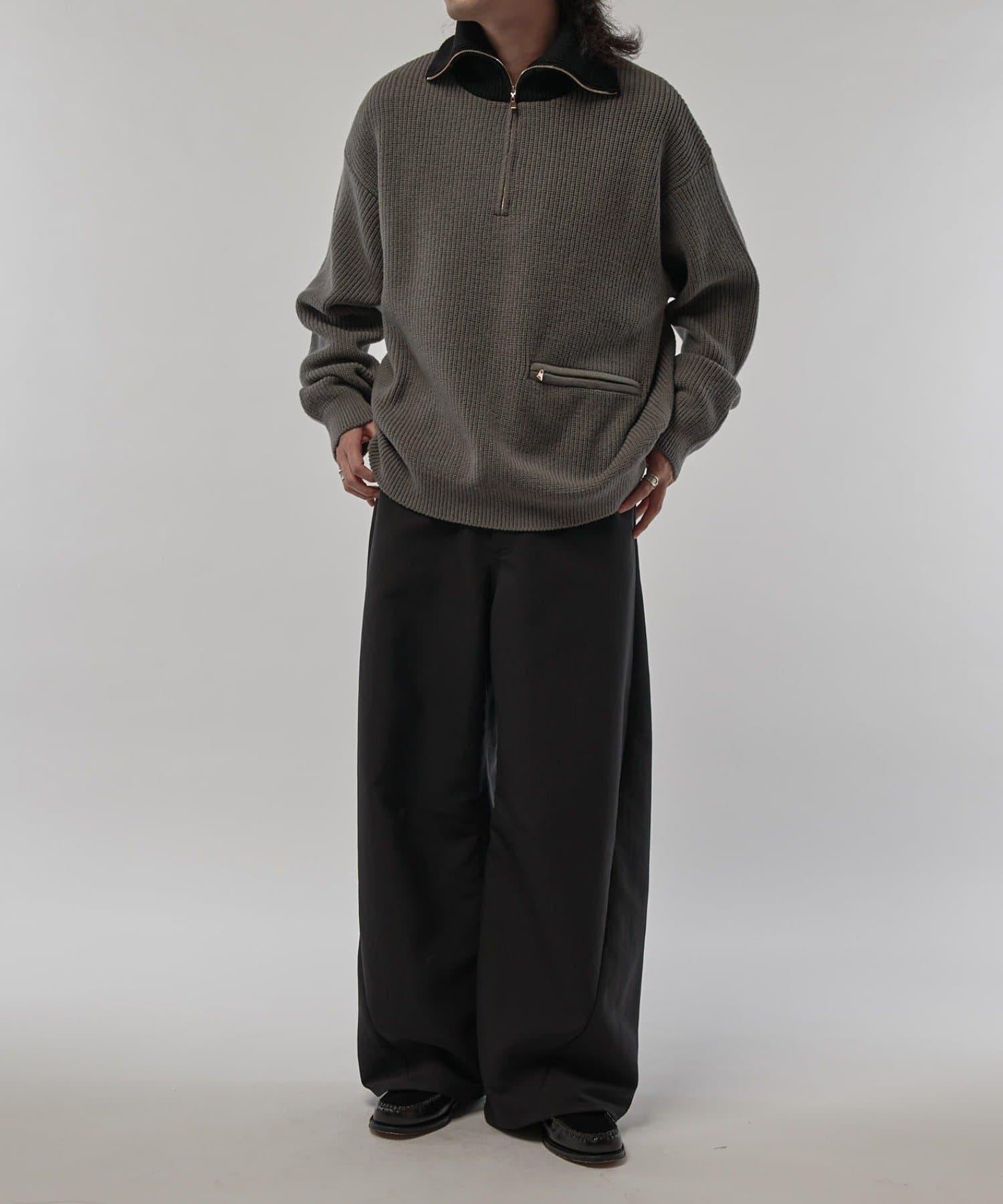 這款半拉鍊針織衫優雅大氣,建議搭配寬牛仔褲或降落傘長褲,打造美麗的休閒風格。