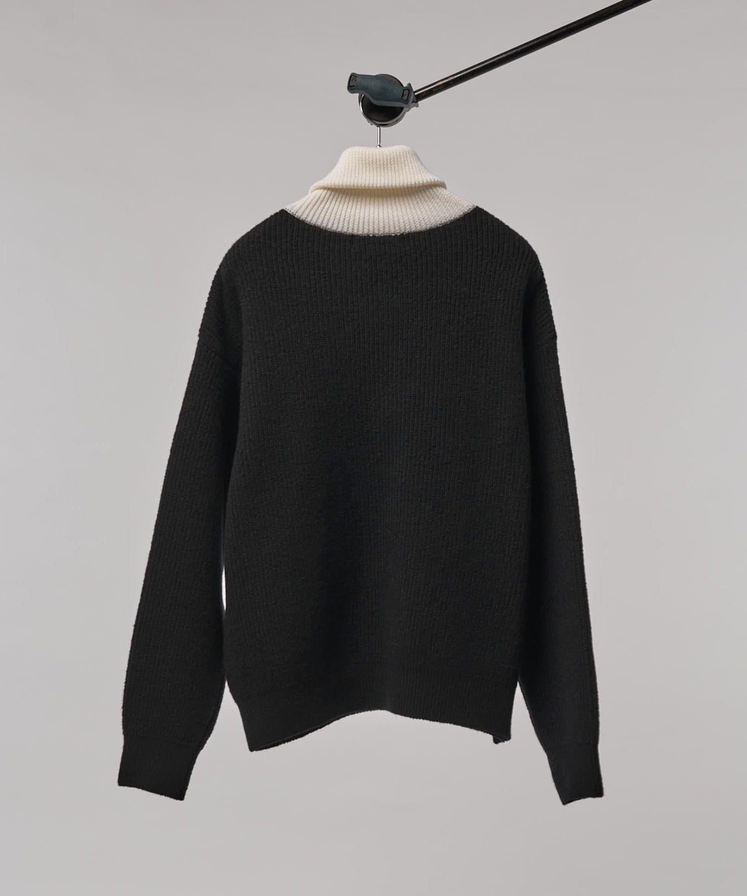 衣領上有雙色裝飾,拉上前襟拉鍊後可作為高領針織衫穿著。