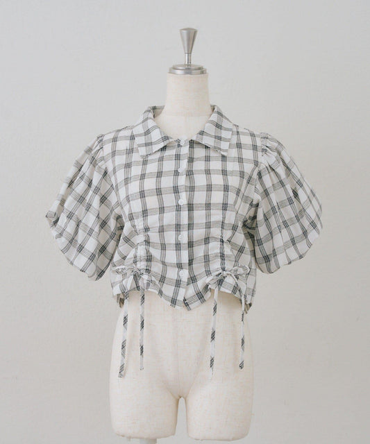這款襯衫的特色在於肩部的開關設計。衣領採用條紋開關設計,營造出優雅成熟的氛圍。
