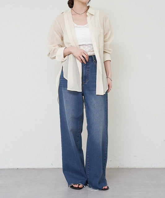 由於這是一款以開關設計為亮點的設計襯衫,建議與寬褲或弧形褲搭配,打造模式化的休閒風格。