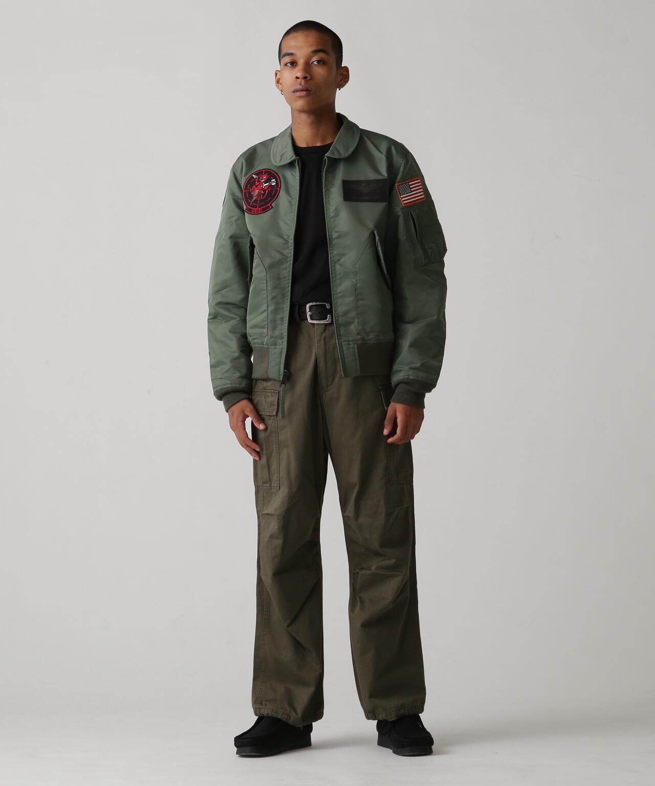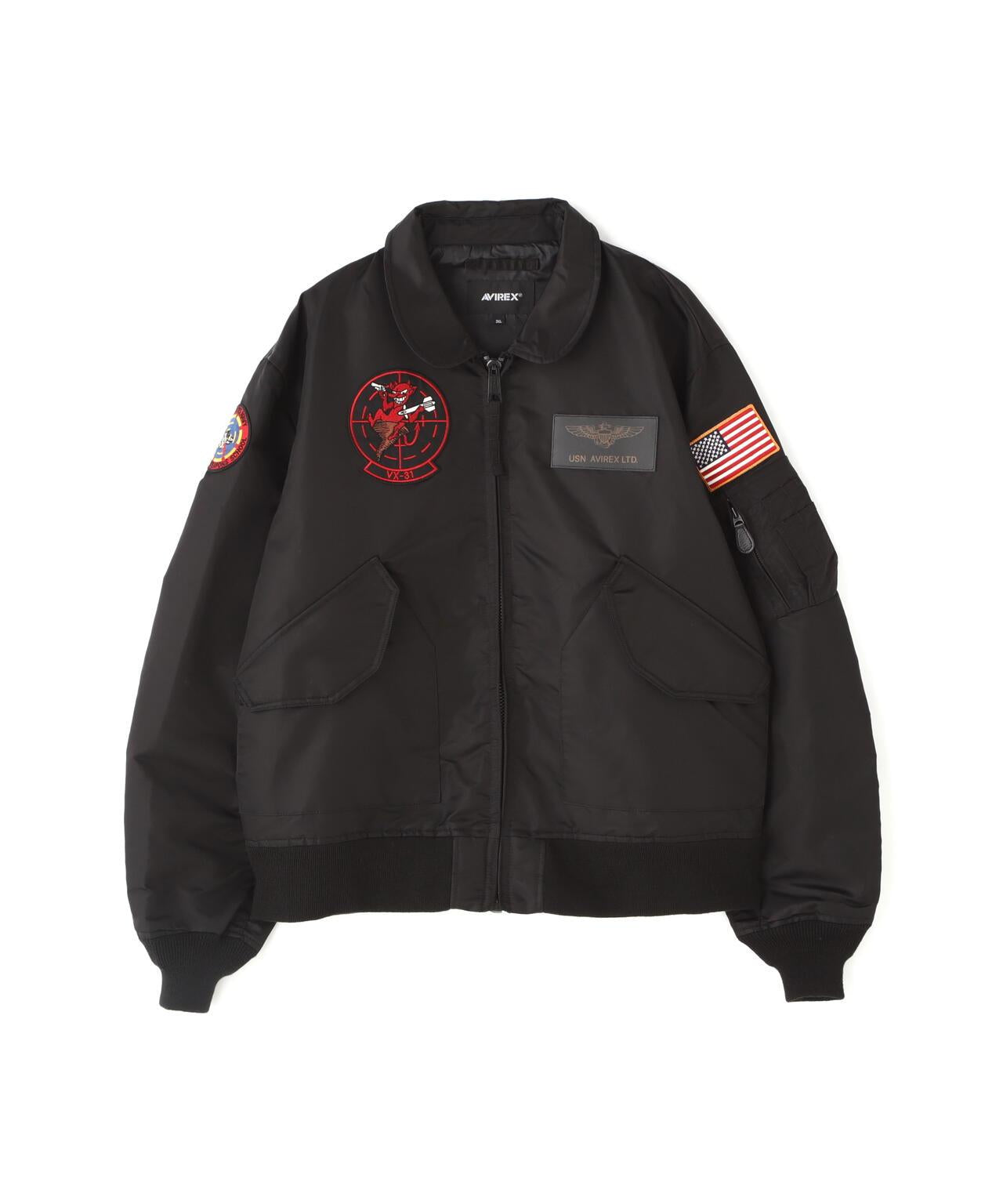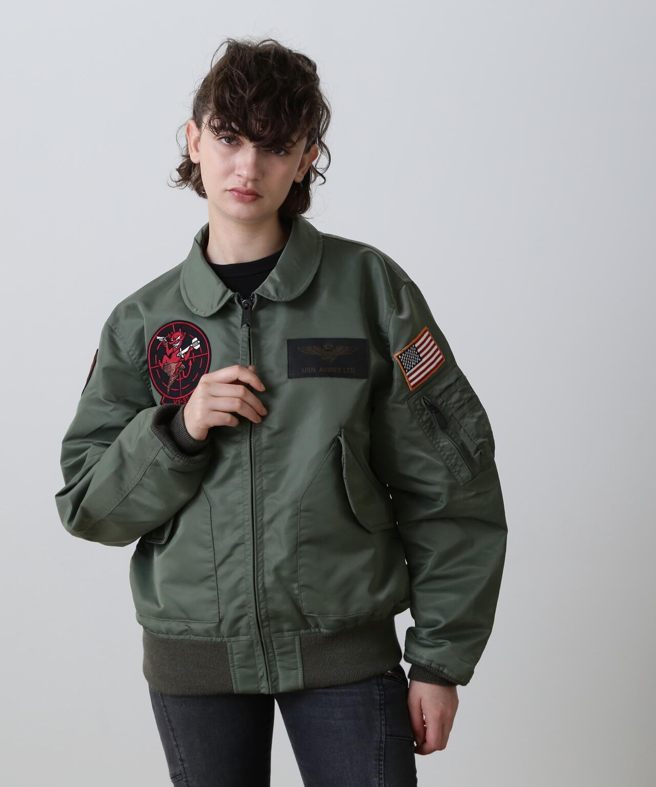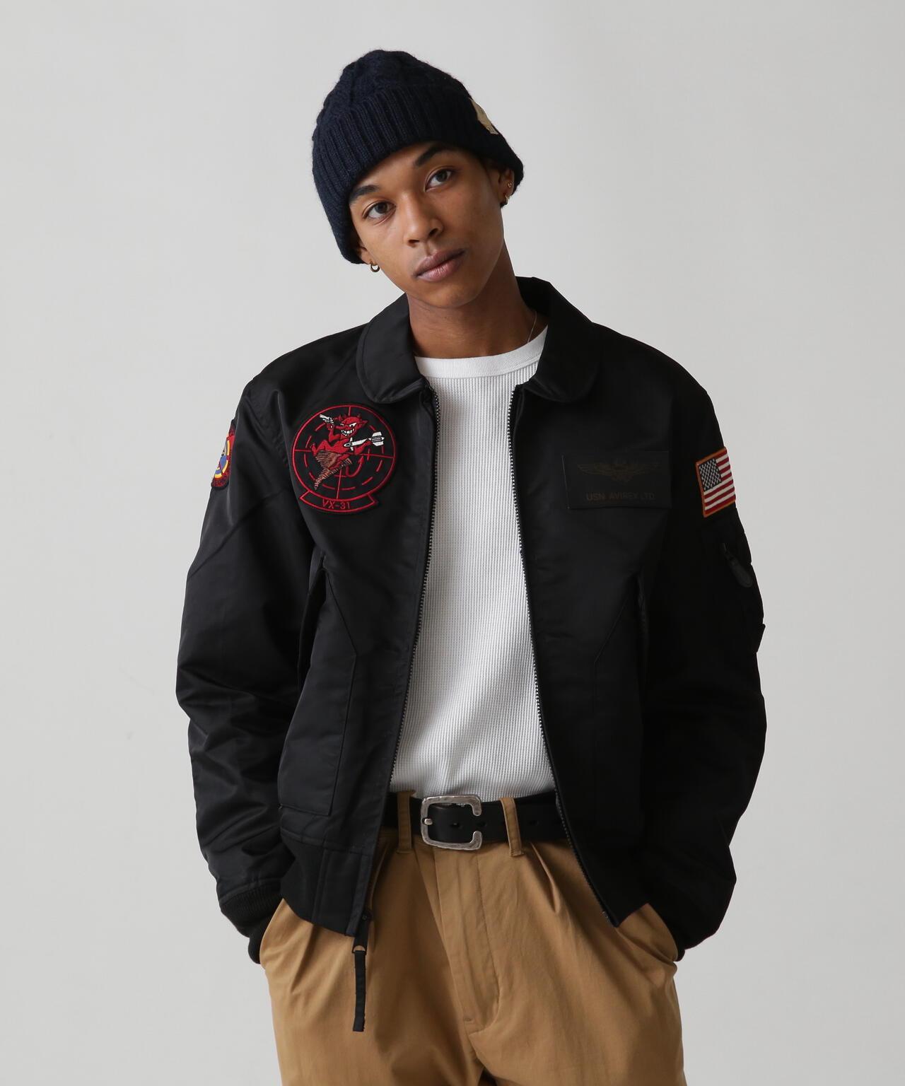 右袖上的補丁設計標誌著穿著者已從 "TOP GUN "畢業,左胸前的補丁設計是美國海軍的翼標和 AVIREX 徽標。左胸前的機翼標誌和 AVIREX 徽標的原始補丁設計,基本尺寸。