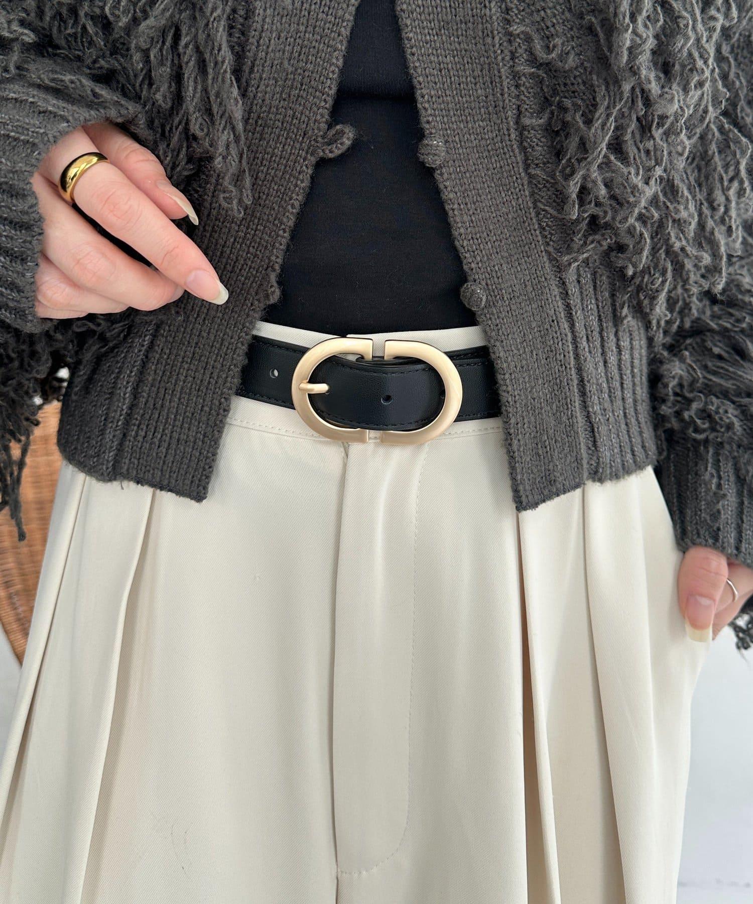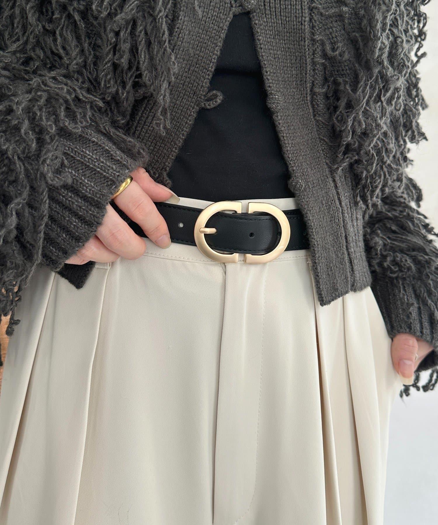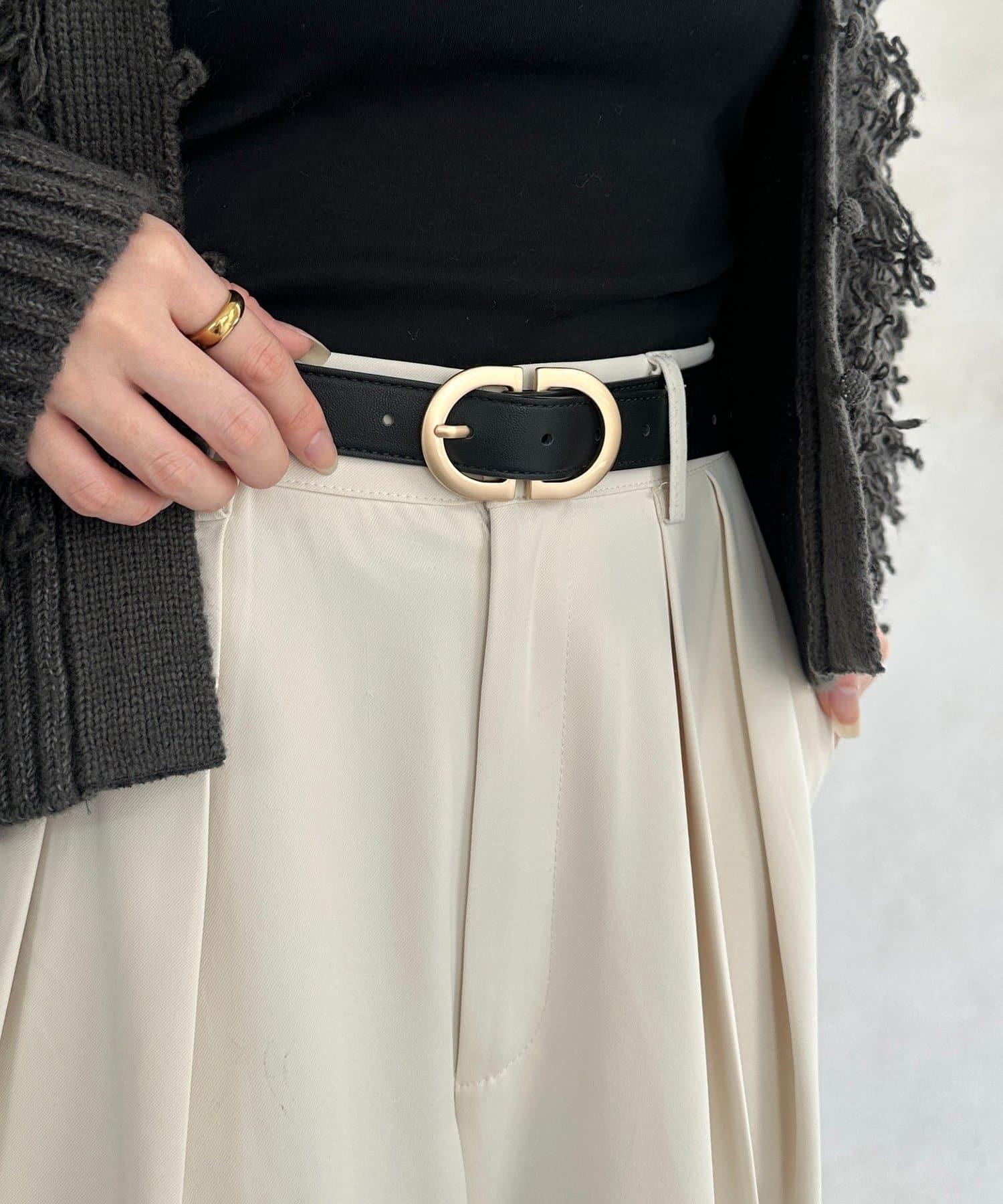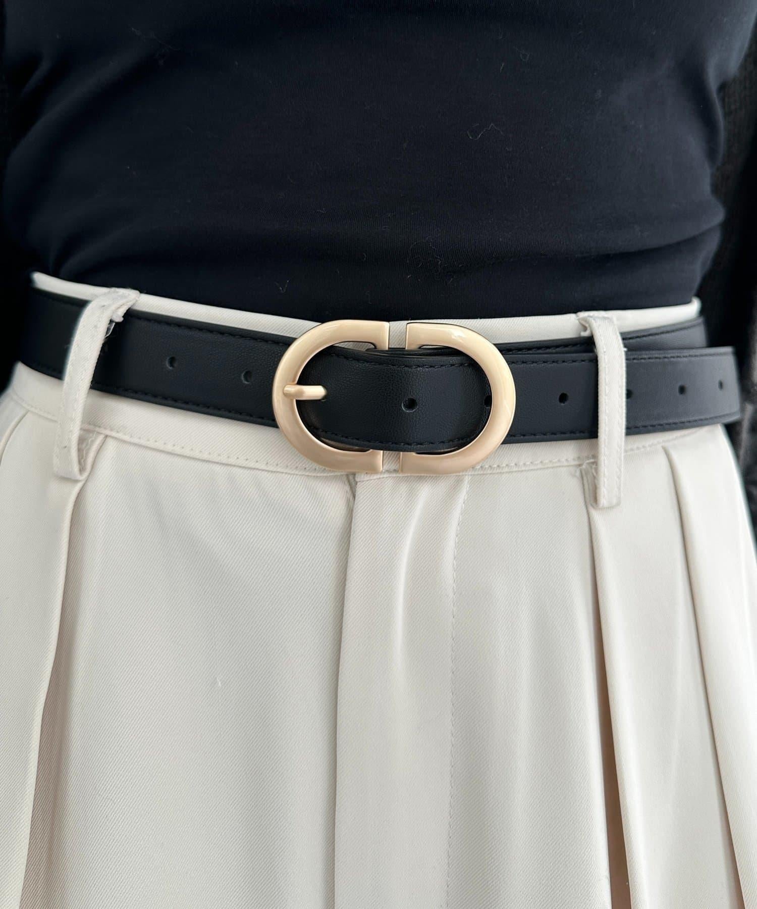 一款外觀時尚的腰帶,奢華的 D 形帶扣引人注目。