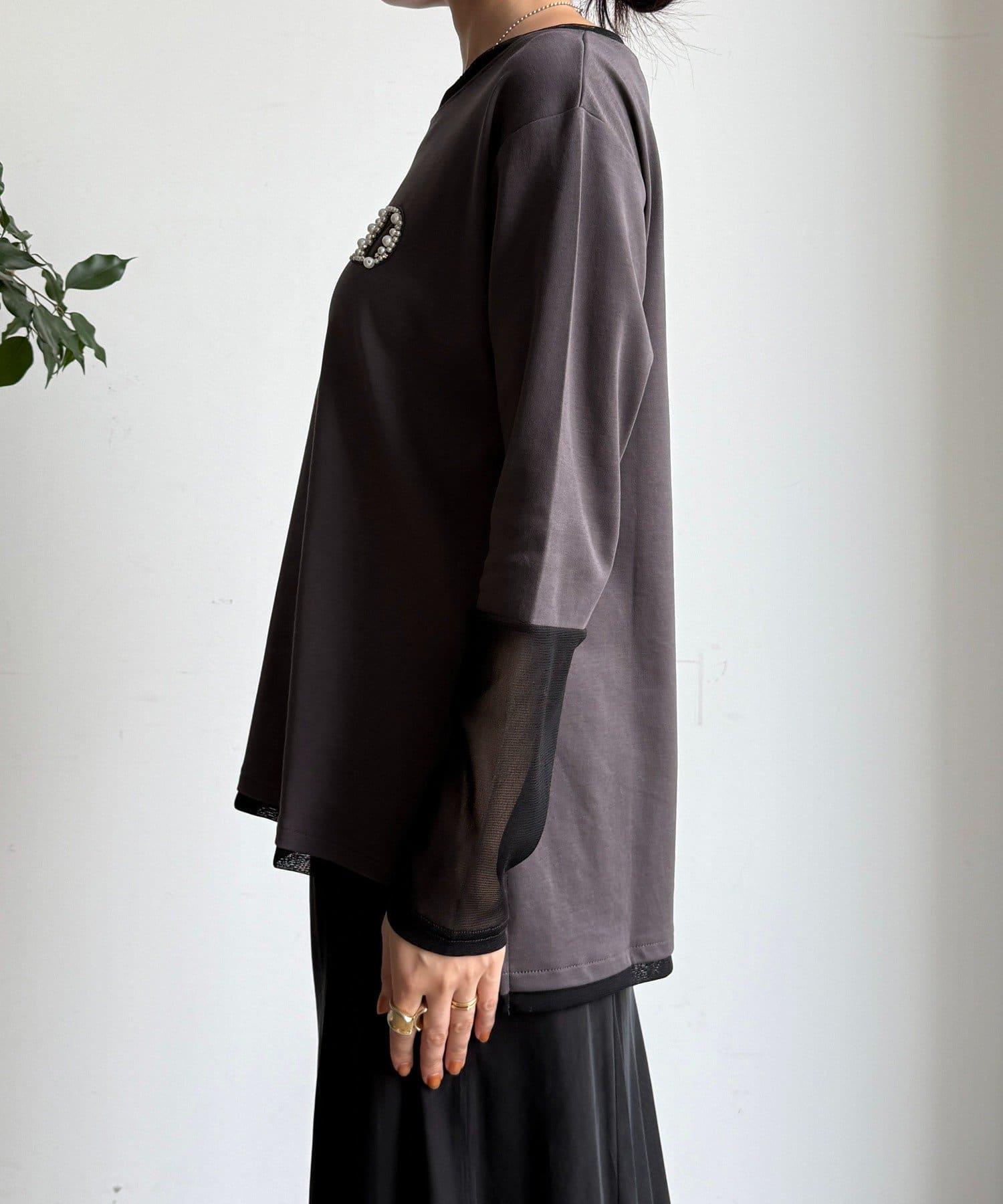 D珠飾圓領T恤