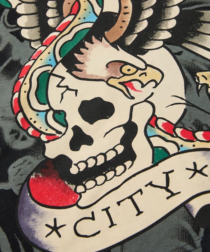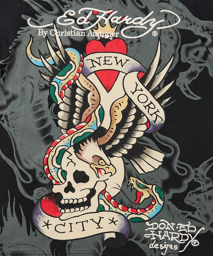Ed Hardy 獨特的紋身藝術與精雕細琢的復古品味相結合,打造出一件特別的服裝。