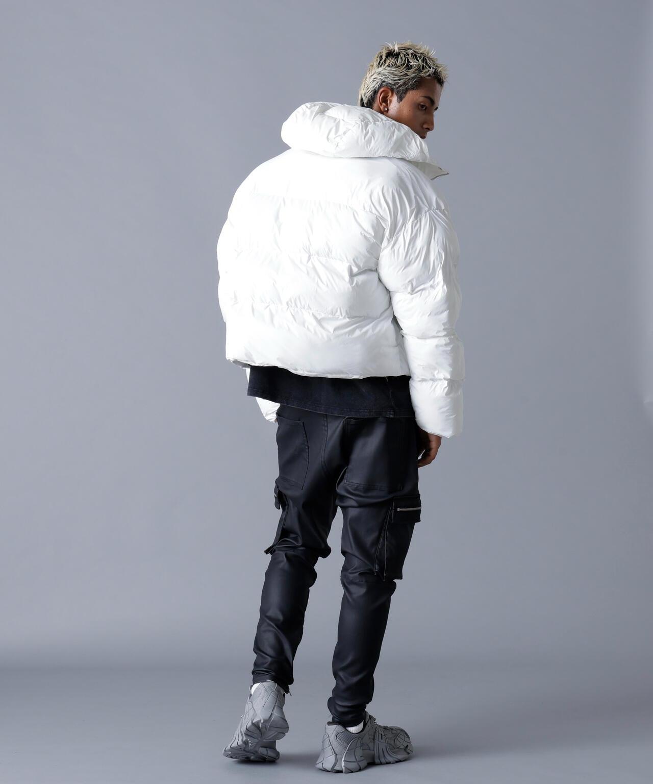 DankeSchon "高密度尼龍連帽外套 "具有現代的光澤和精緻的體積。這款服裝集輕便舒適和高保暖性於一身,適用於從日常生活到冬季戶外活動的各種活動。獨特的尼龍光澤為運動感增添了奢華的情調。要點輕便而保暖的加絨規格高密度尼龍材料使其具有細膩的光澤和柔軟度,寬大的落肩設計給人一種輕鬆的感覺。前襟採用雙層結構,拉鍊和按扣可防止風進入。極簡設計,男女皆宜。 STYLE TIP - Street feel.