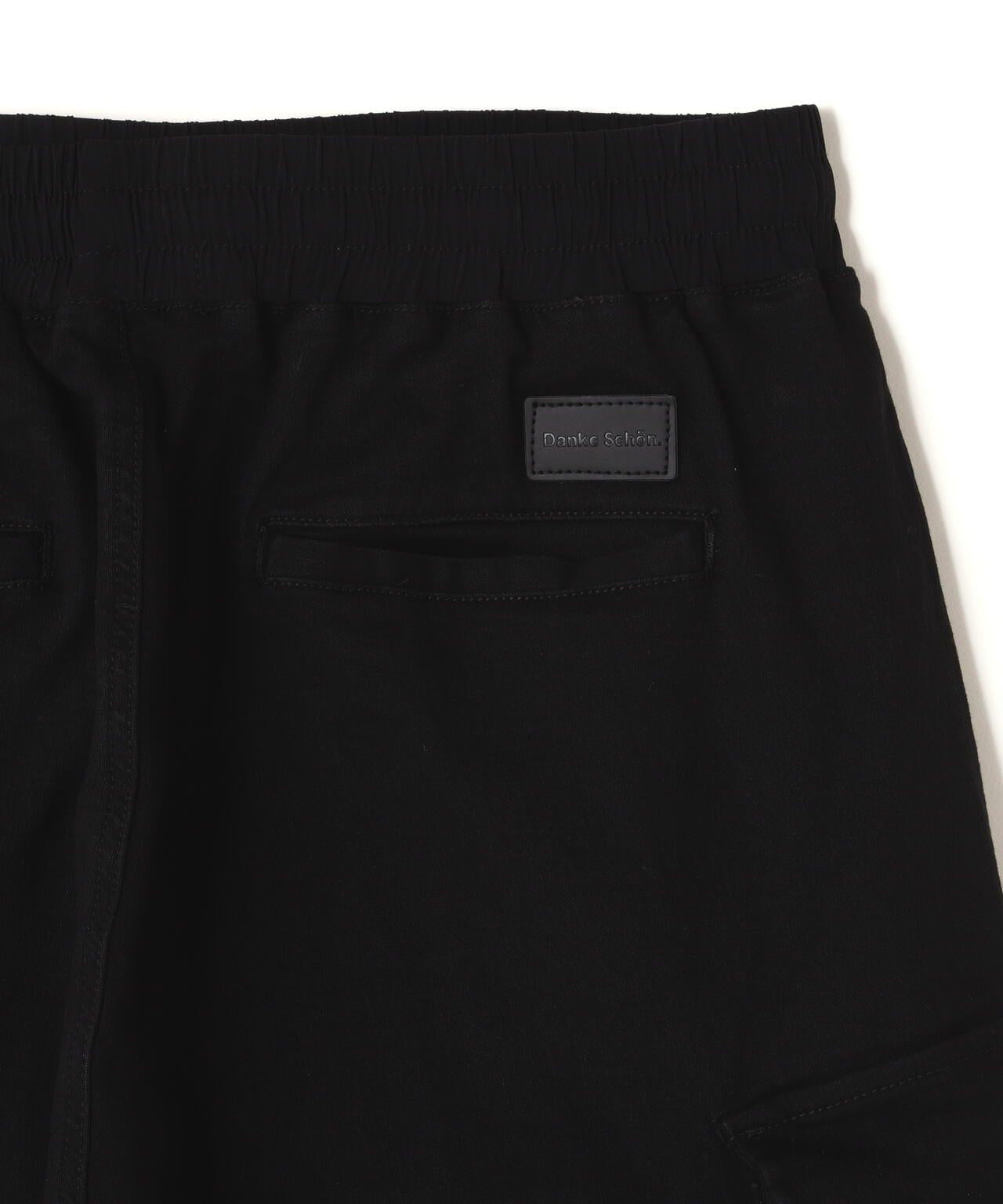 DankeSchon 混合了軍事和運動元素。貨袋外側的拉鍊口袋引人注目。羅紋下襬給人乾淨利落的印象。腰部長繩可垂墜,盡顯帥氣。後口袋上部印有皮革徽標。直筒剪裁,超彈力面料可向四個方向伸展,帶來卓越的舒適感。腰部也採用了與主體不同的材質,顏色不同,但外觀清爽。腰部的灰塵色抽繩可用於調節或作為造型點綴。整體設計簡約,因此可以搭配從休閒到更休閒的各種風格。