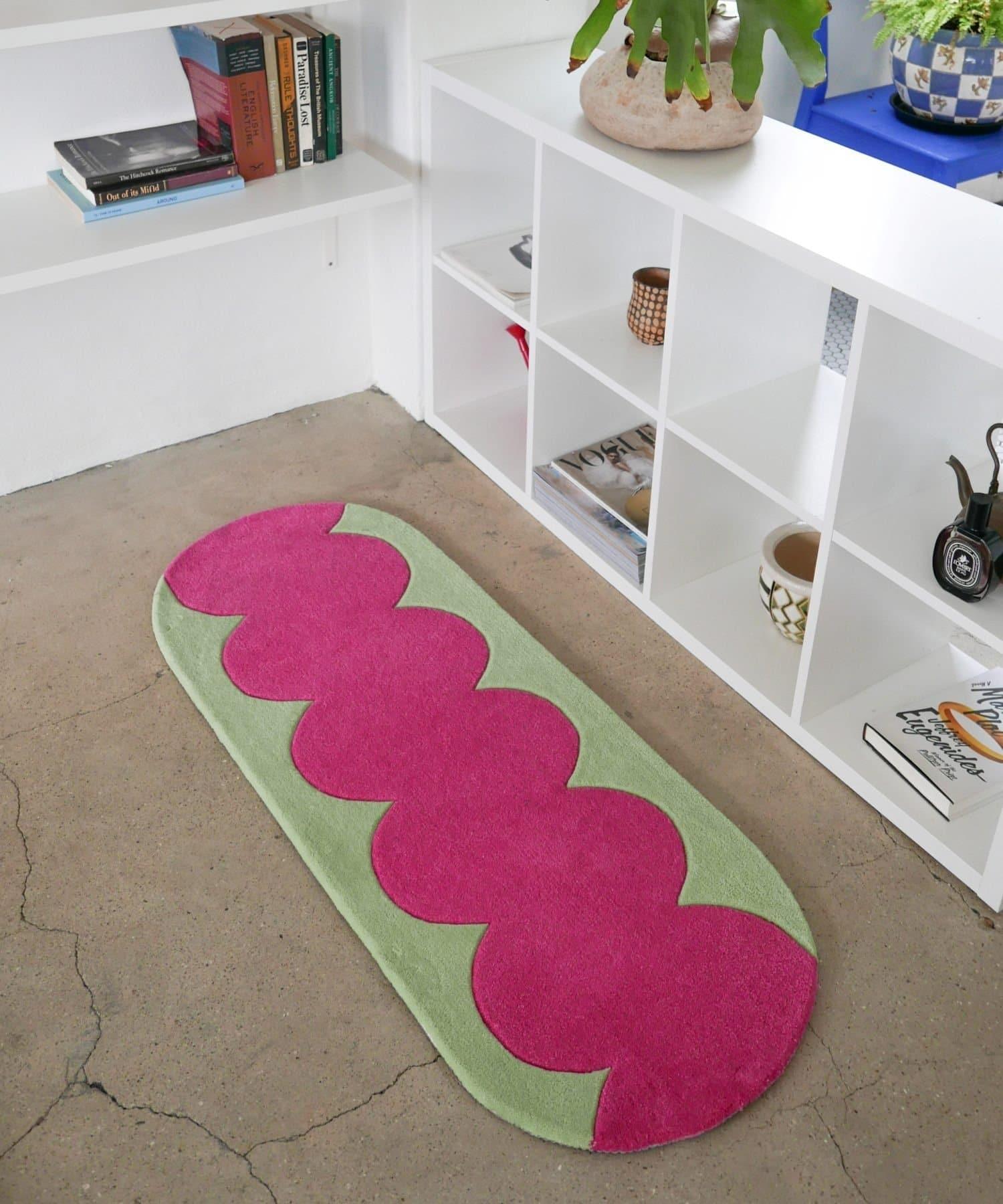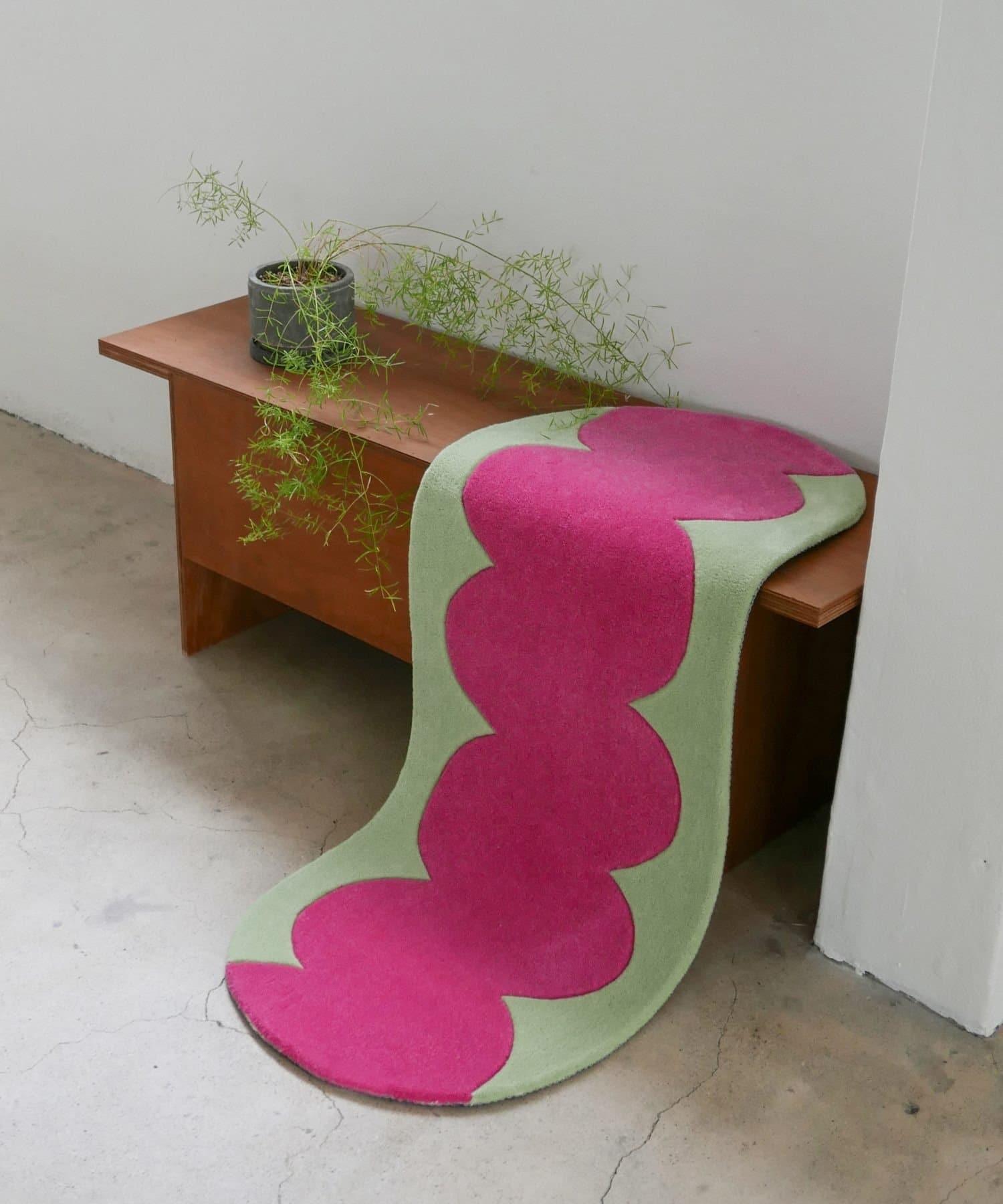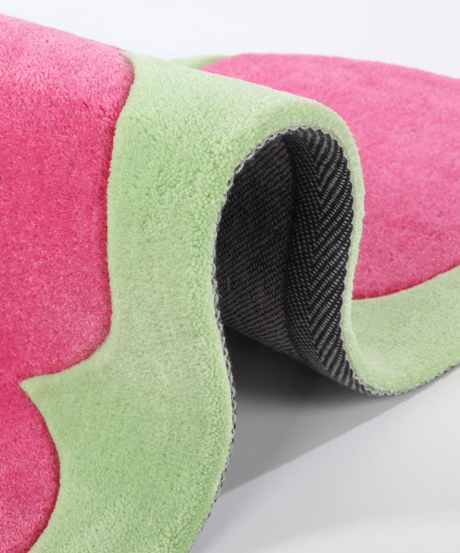 這款俏皮的地毯採用鮮豔的粉色和柔和的綠色,色彩搭配讓人心動不已。