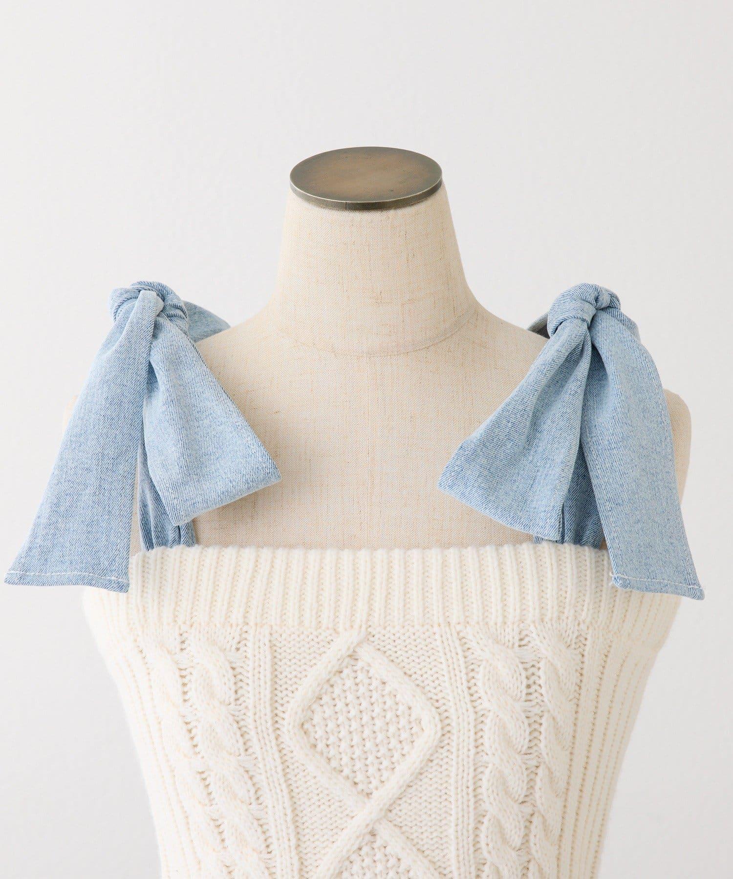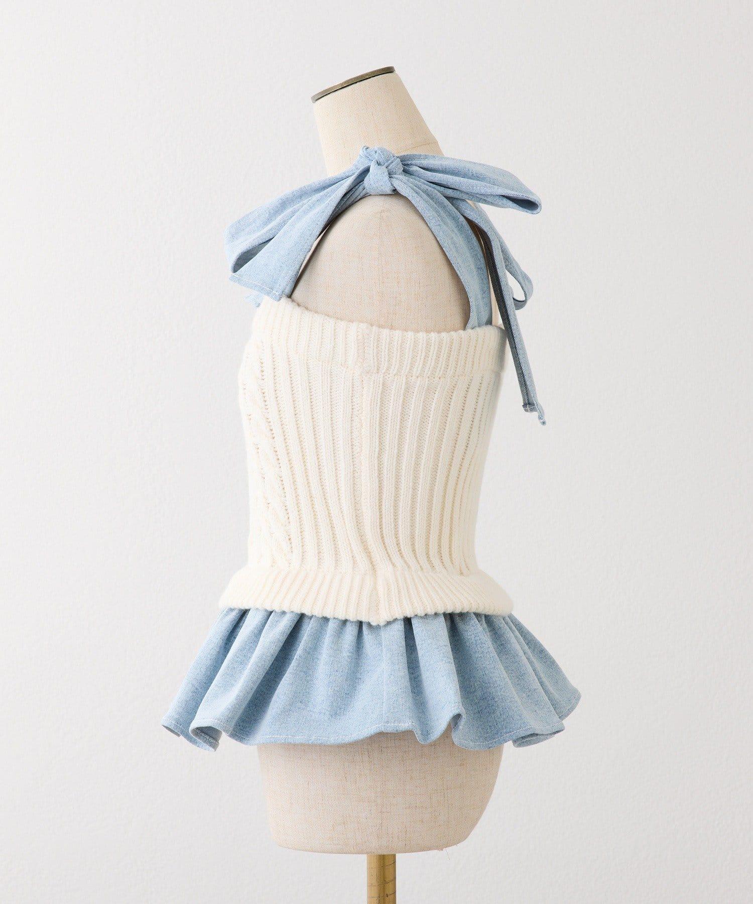 Denim Collection 肩部蝴蝶結設計 短款背心