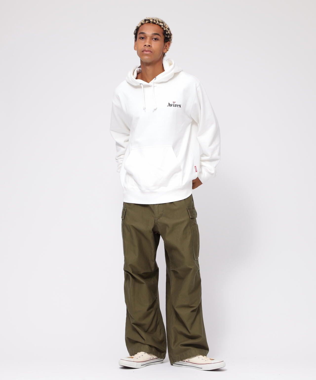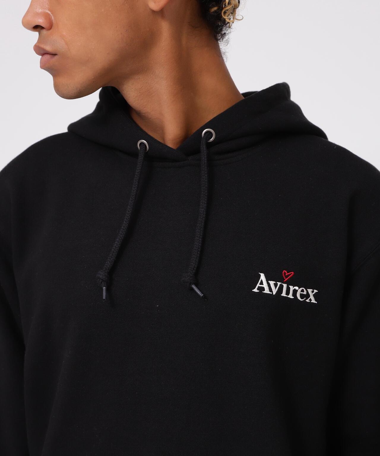 AVIREX官方旗艦店】商品名稱:《WEB&DEPOT限量版》"EMBROIDERY LOGO & WISHES" PULLOVER HOODIE<商品詳情> - WEB&DEPOT限定套頭連帽衫 - 胸前心形刺繡品牌LOGO。連帽衫背面襯有絨毛,手感舒適,便於疊穿。繡有信息,色彩變化豐富,有白色和黑色兩種流行標準色,剪裁均衡 [AVI
