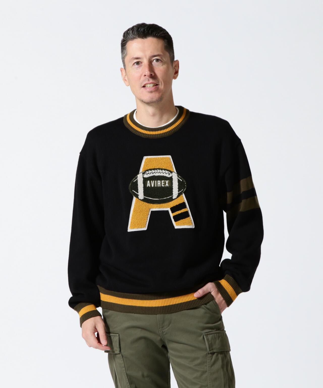 學院線針織衫,前幅飾有 SAGARA 刺繡貼片,並以羅紋線條點綴。適度寬鬆的廓形營造出美式休閒的味道。即使上身穿夾克等也是前襟設計,也可以單穿,還可以搭配襯衫和內搭模擬領,所以很好。1975 年,它作為美國空軍的承包商成立,並通過提供飛行夾克而知名度大增。Avirex 起源於軍事,其功能性設計創造出一種獨特的美感。