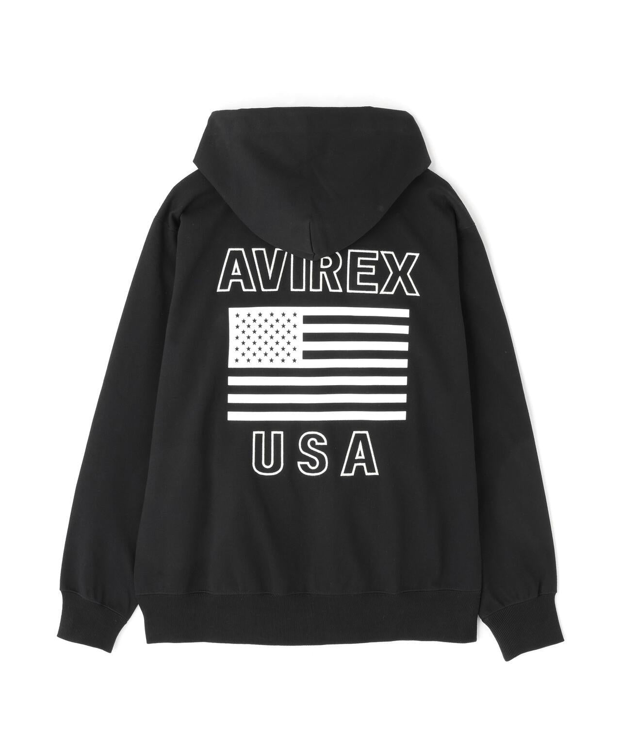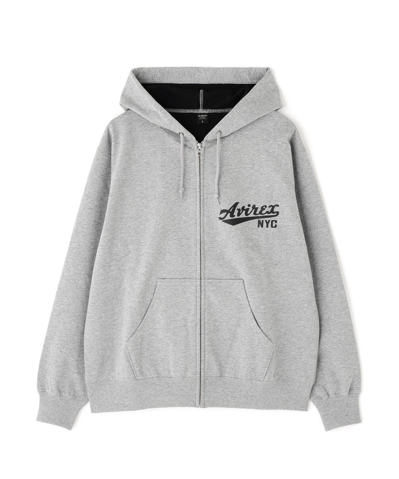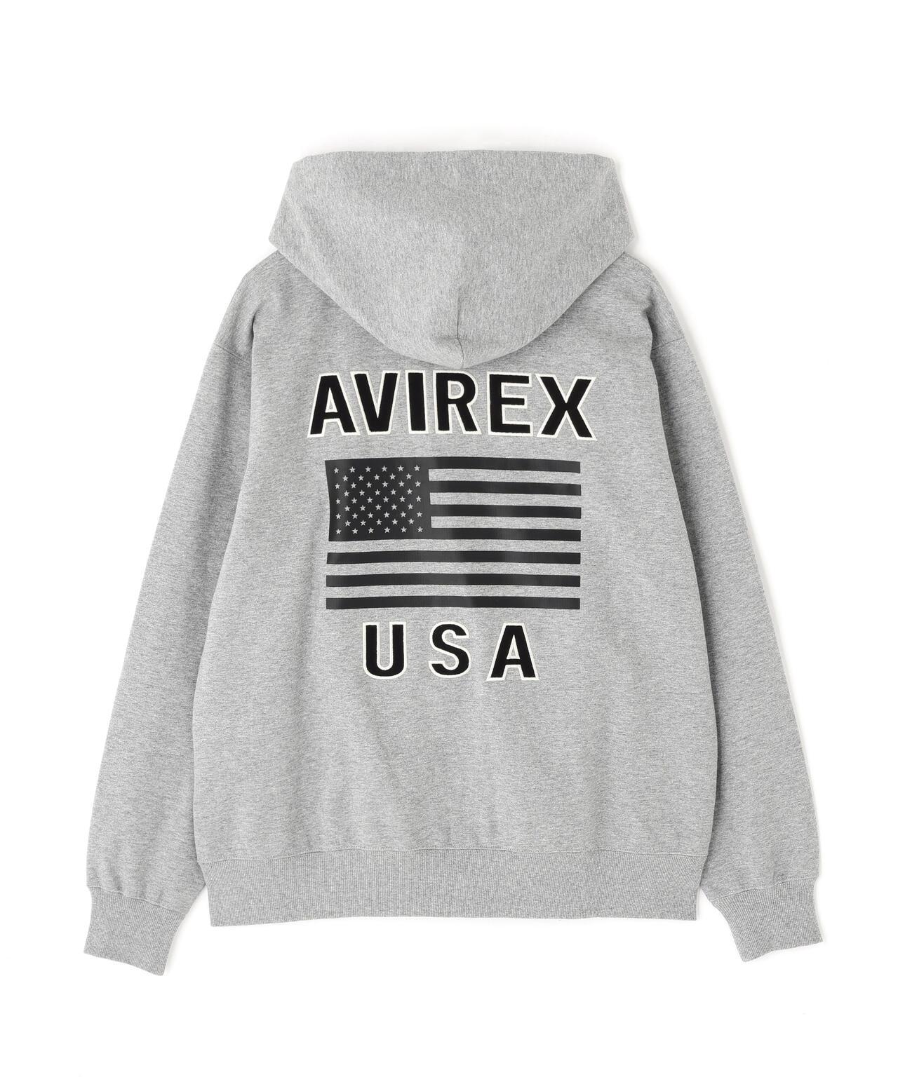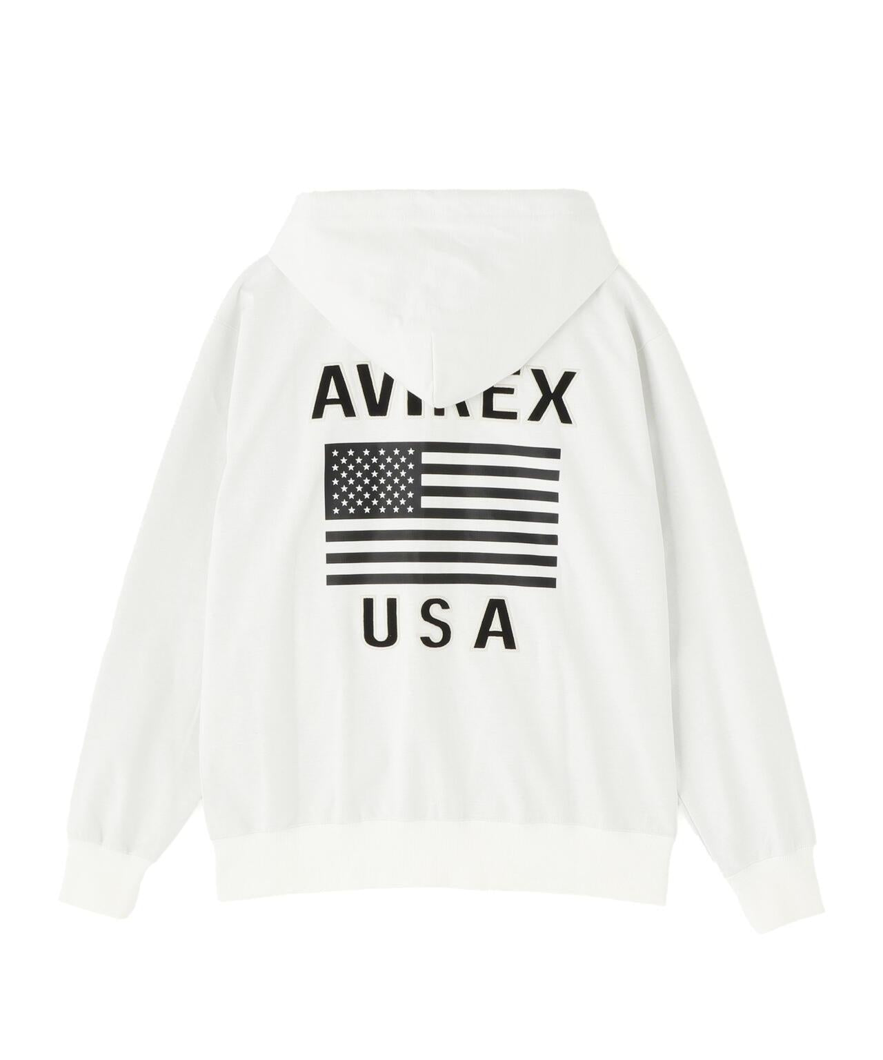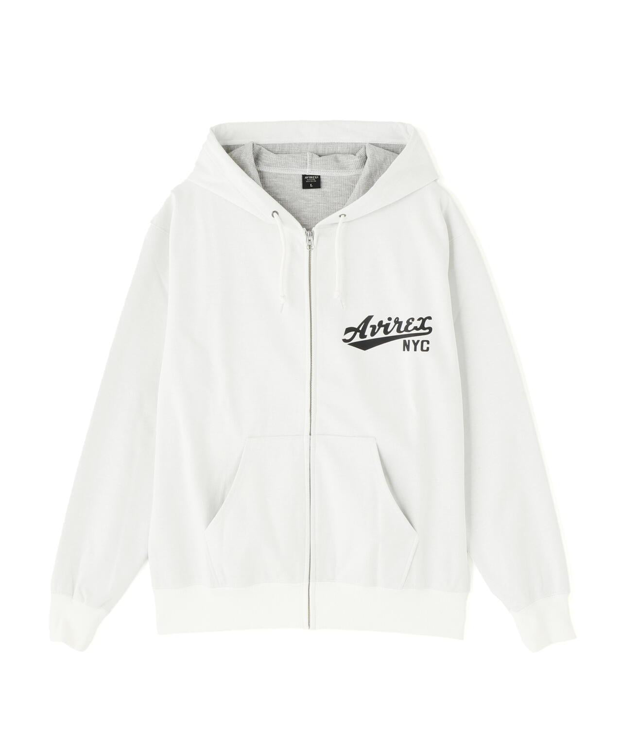 拉鍊連帽衫是美式休閒的標配,是一款融合了 AVIREX 獨特軍旅味道的特殊單品,左胸前印有原品牌標誌,背後印有 AVIREX 標誌和星條旗,外層材料為運動衫面料,內襯為具有高保溫性能的華夫格材料粘合(貼合)面料。外層由運動衫面料製成,內襯由具有高保溫性能的華夫格材料粘合(層壓)製成。該公司成立於 1975 年,當時是美國空軍的承包商,後來通過提供飛行夾克而大大提高了知名度。Avirex 源自軍事領域,其功能性設計散發出獨特的美感,為其提供了有力的支持。